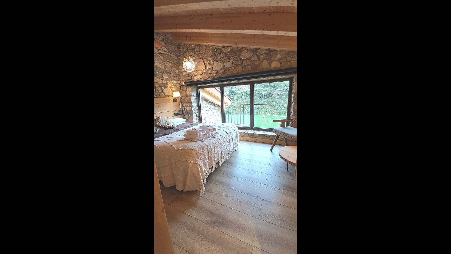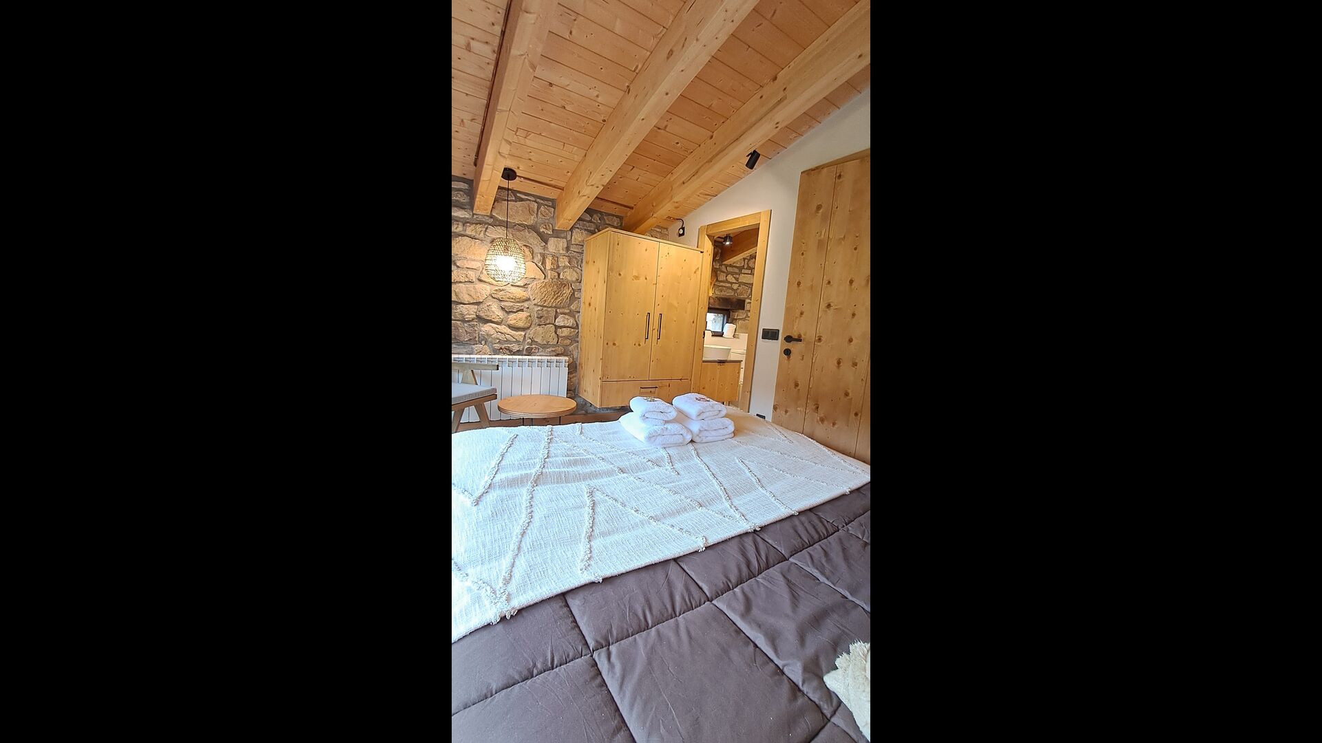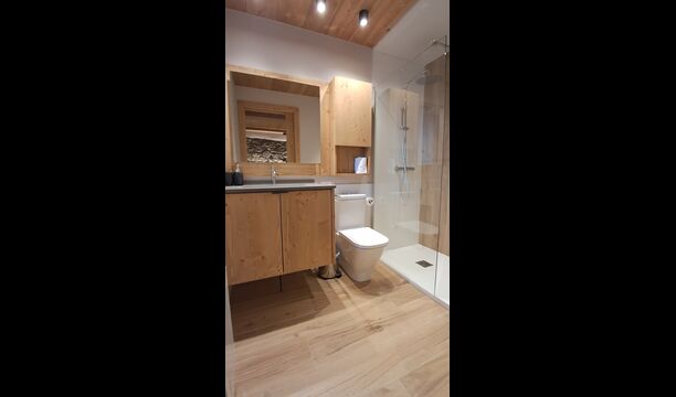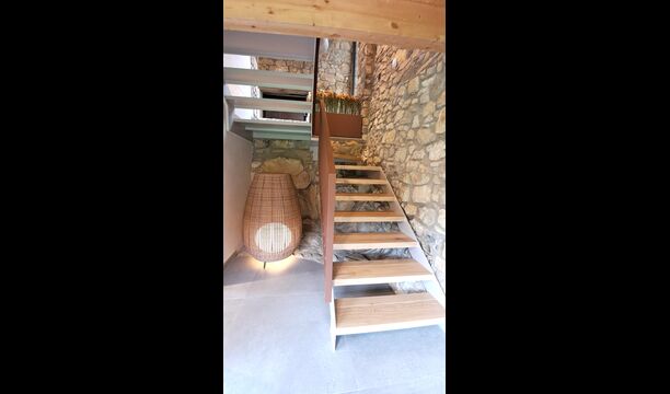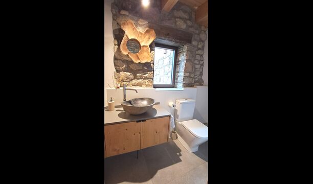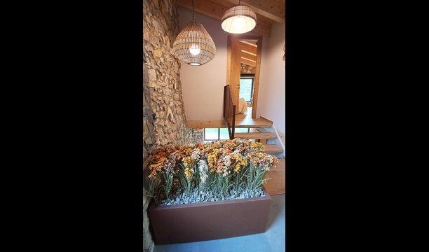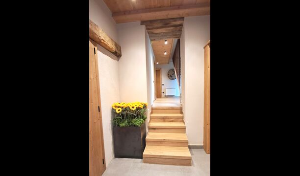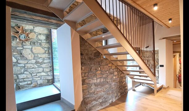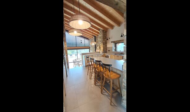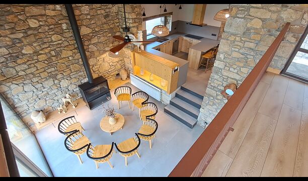 Pouvant accueillir jusqu'à 22 personnes, la propriété dispose de 9 chambres spacieuses, chacune avec sa propre salle de bain, dont une suite familiale, pour un total de 10 chambres accueillantes. Des tons de bois chaleureux, des matériaux naturels soigneusement sélectionnés et des détails raffinés créent une atmosphère à la fois élégante et conviviale. À l'intérieur, un salon élégant avec cheminée, un espace de vie confortable qui allie charme rustique et confort contemporain.