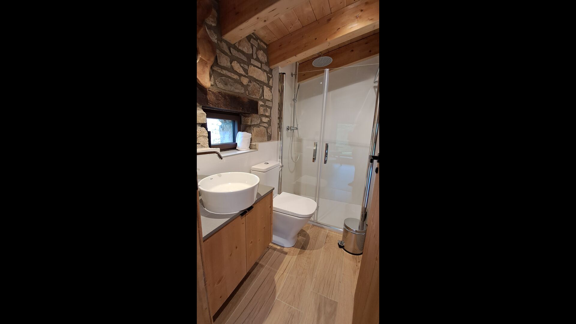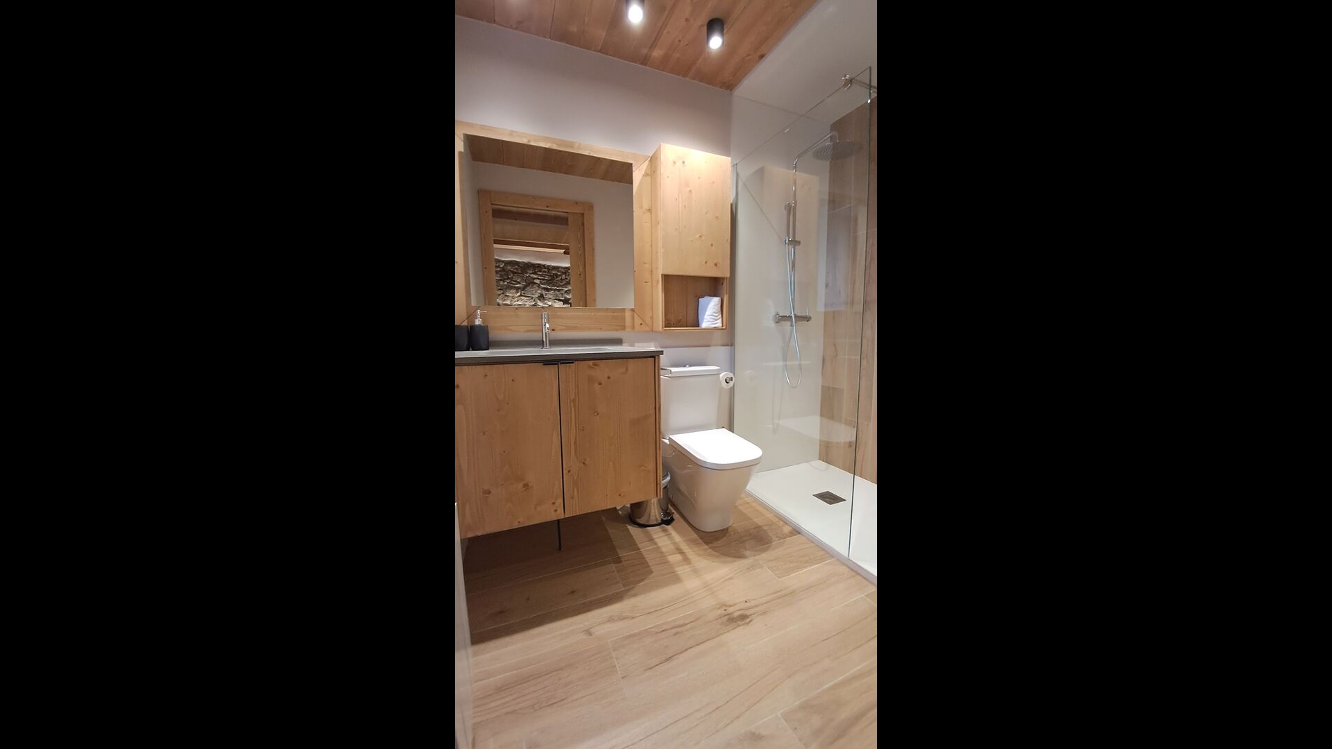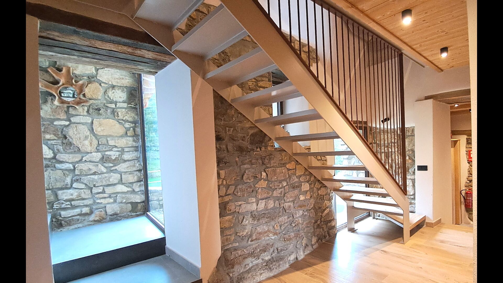 Pouvant accueillir jusqu'à 22 personnes, la propriété dispose de 9 chambres spacieuses, chacune avec sa propre salle de bain, dont une suite familiale, pour un total de 10 chambres accueillantes. Des tons de bois chaleureux, des matériaux naturels soigneusement sélectionnés et des détails raffinés créent une atmosphère à la fois élégante et conviviale. À l'intérieur, un salon élégant avec cheminée, un espace de vie confortable qui allie charme rustique et confort contemporain.