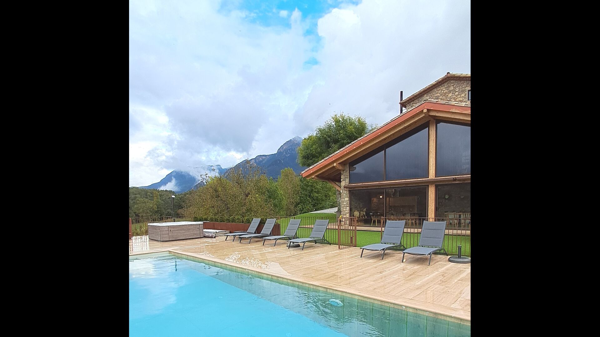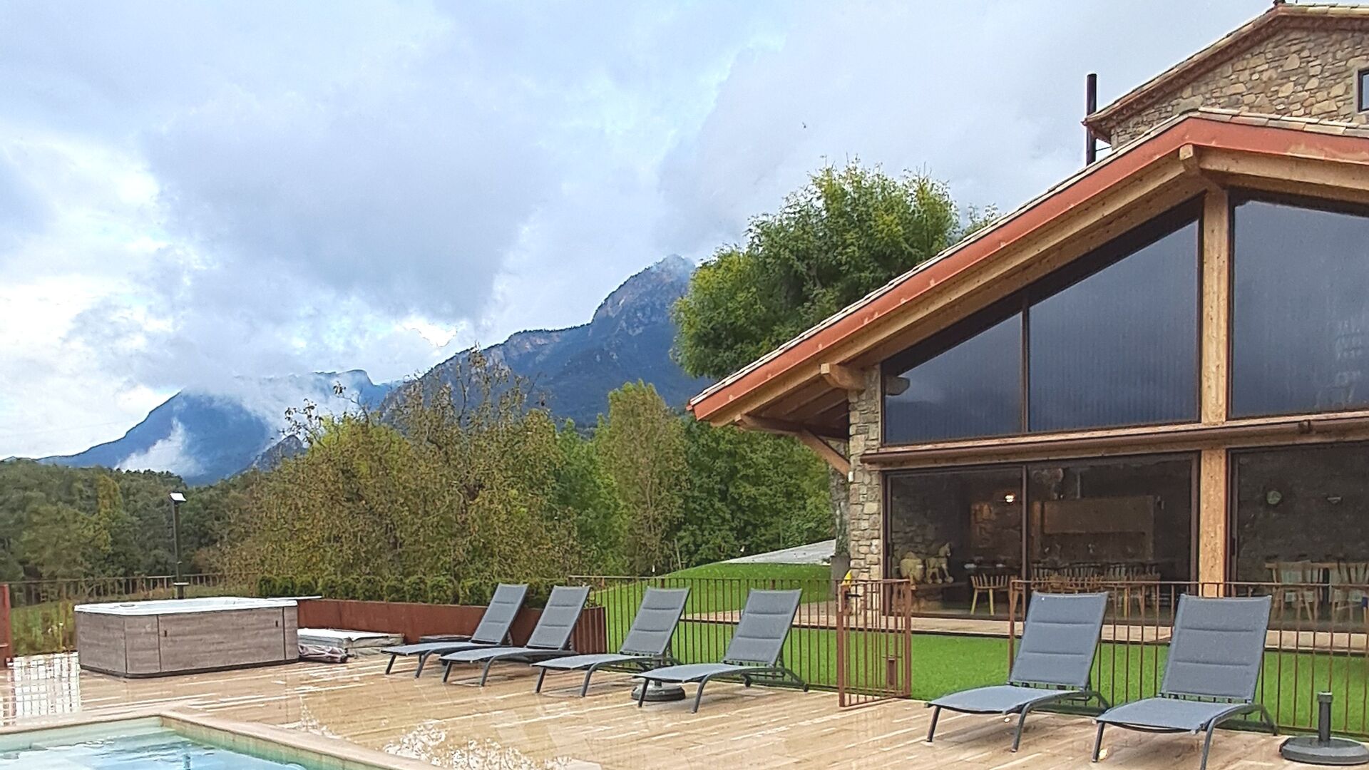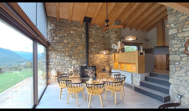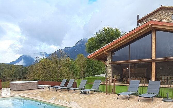 En hiver, l'expérience devient magique grâce au jacuzzi extérieur, où jusqu'à huit personnes peuvent se détendre en admirant les sommets enneigés des Pyrénées. Pour les amateurs d'activité et d'aventure, la propriété comprend un terrain de volley-ball, une table de ping-pong et un accès direct à de superbes sentiers et points de vue sur le Pla de Clarí.