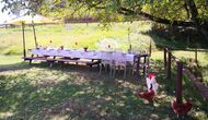 En été, deux moutons et plusieurs poules se promènent librement sur le terrain (ils sont enfermés le soir et la nuit). Les deux moutons calmes et amicaux, Petra et Cecilia, sont pour la plupart des enfants très amusants et excitants. Ils paissent généralement sur les terres et aident à garder le jardin propre et bien entretenu. Cela crée également une bonne atmosphère pour avoir ces animaux autour.