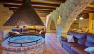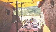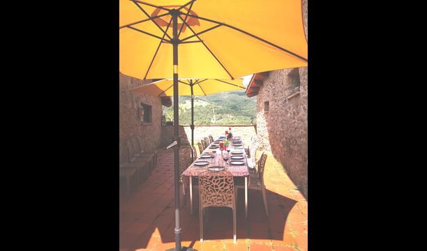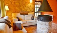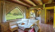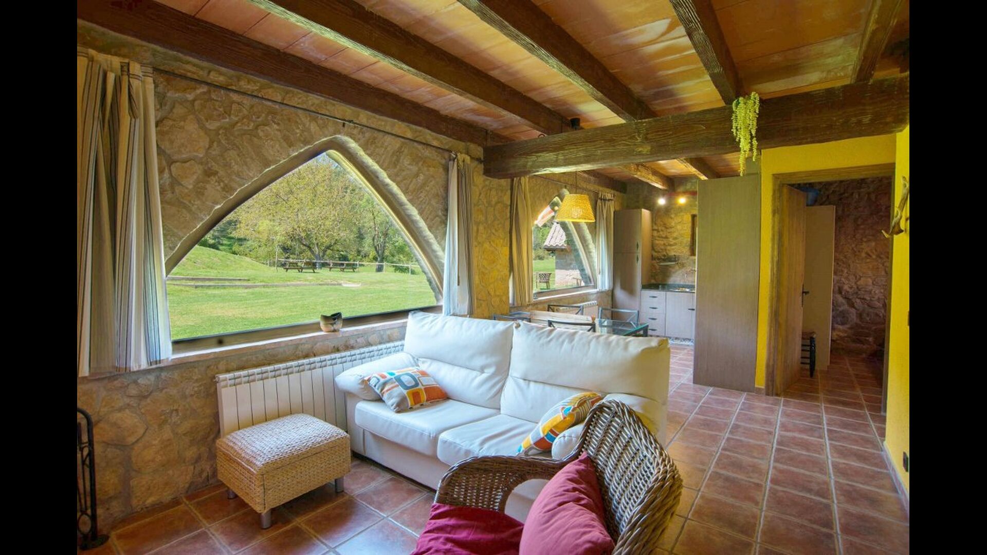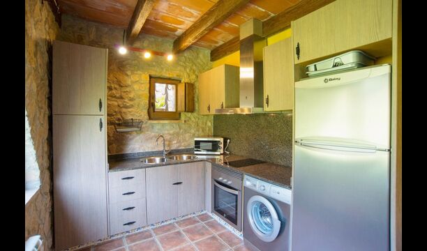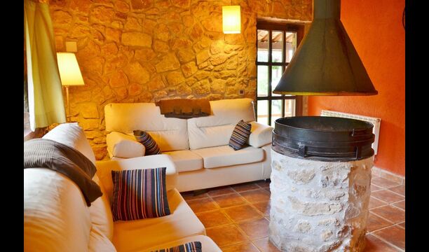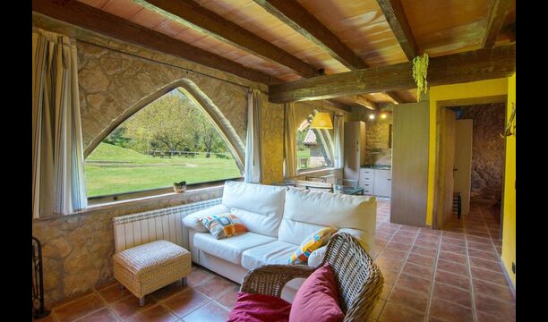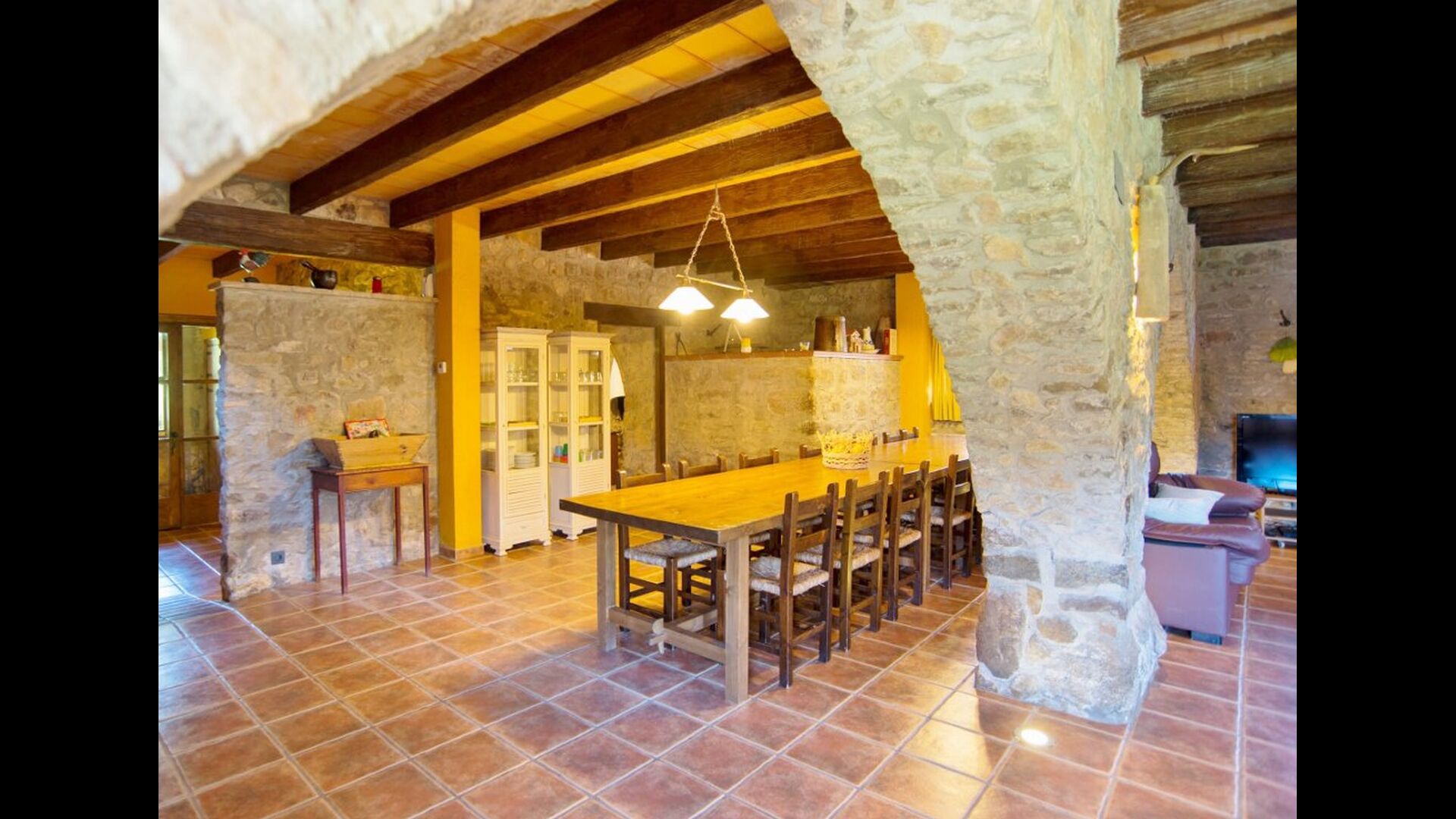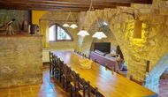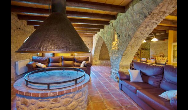 Le rez-de-chaussée est un immense espace commun, où il y aura de la place pour tout le groupe de vacances, même pour ceux qui vivent dans des appartements plus petits. Voici une longue table à manger, canapés, TV et DVD et cheminée. La cuisine est unique avec un plafond incurvé et de beaux murs en pierre.