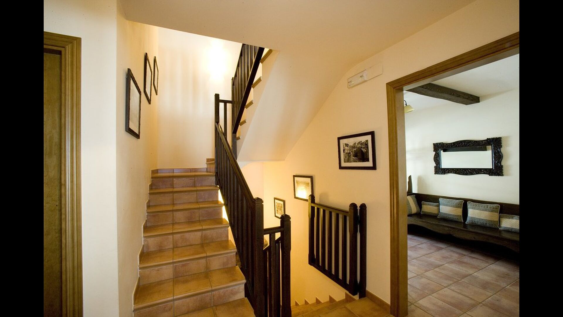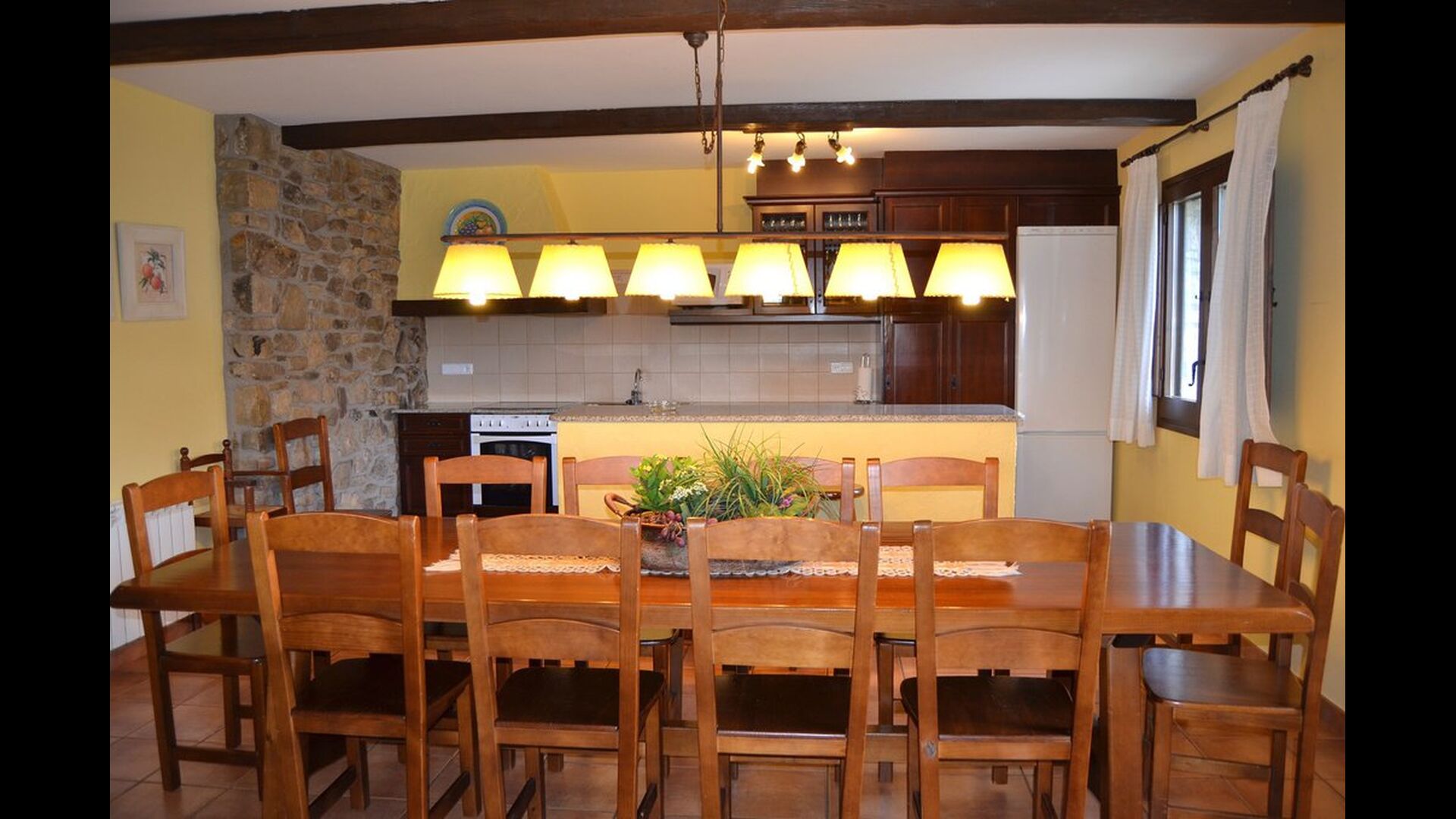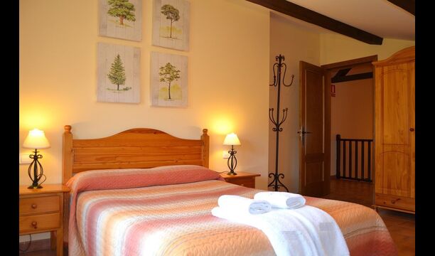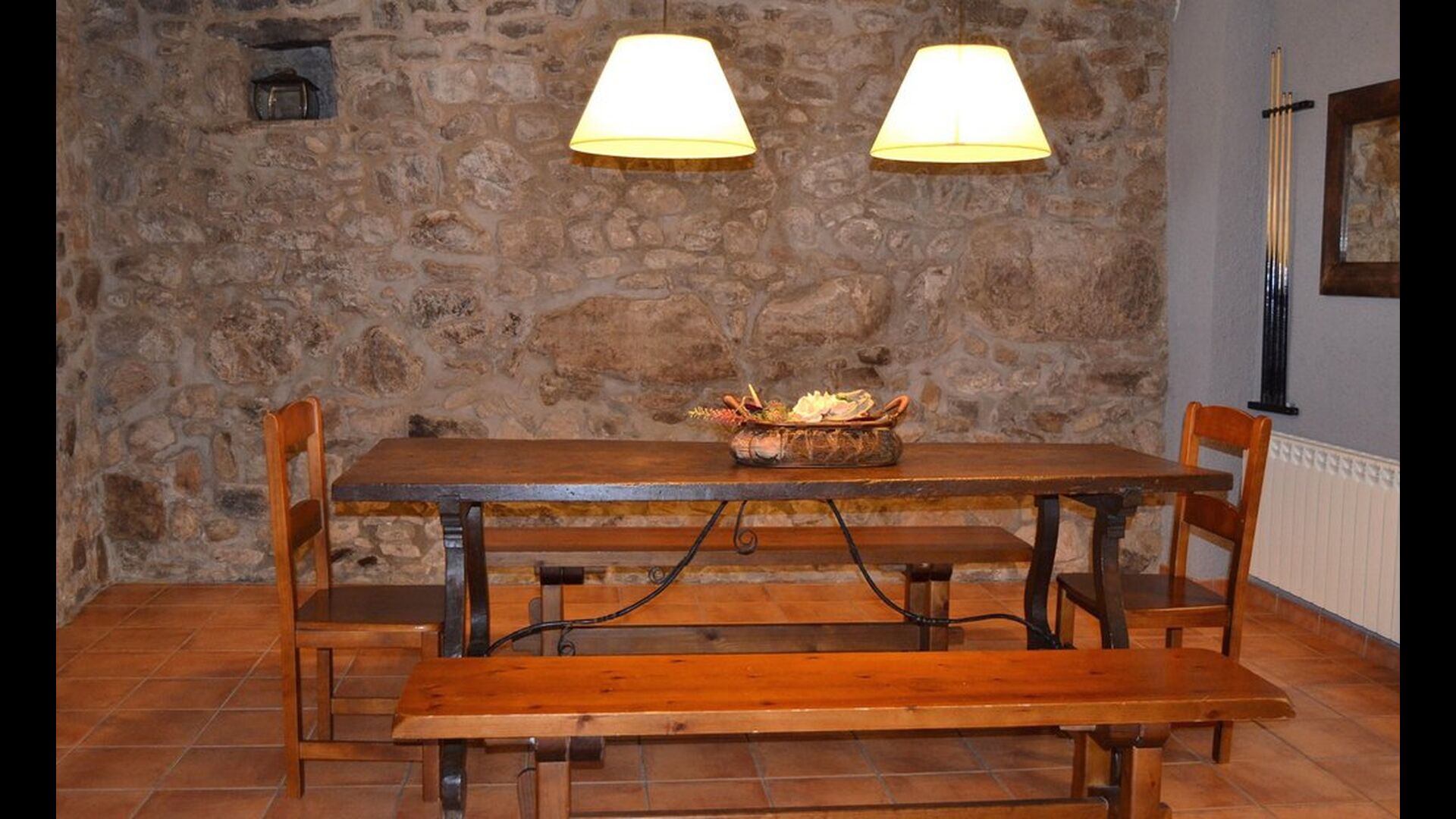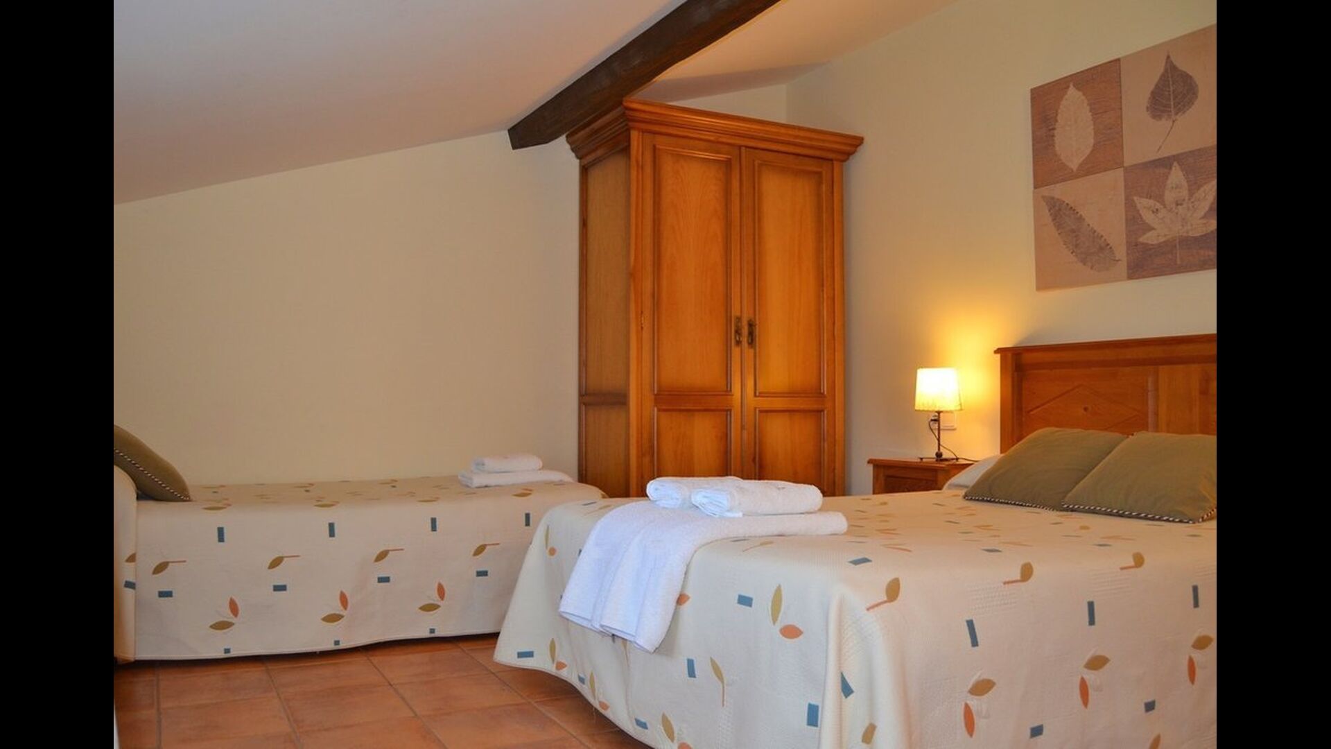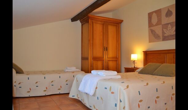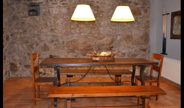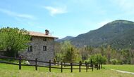 Located 2.5 kilometres from the village, surrounded by a magnificent landscape of forests and meadows, in an area that invites you to take part in nature activities or just relax in the beauty of the countryside. The three hundred square-metre farmhouse is completely built of stone and is divided into three floors. The furniture is rustic in style, while being comfortable, hardwearing and practical. Antique pieces combine with modern rustic style.