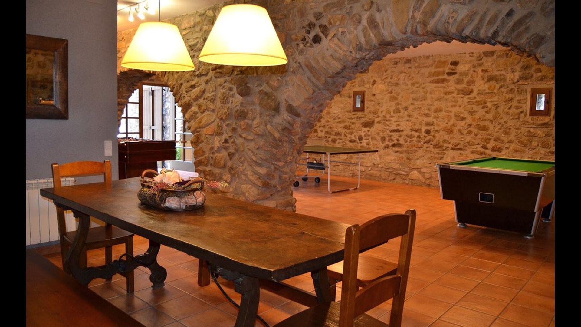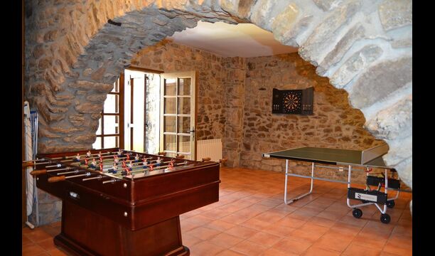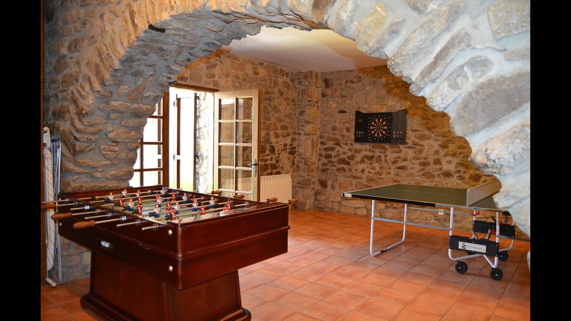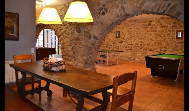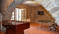 The lower floor has been beautifully renovated preserving the original woodwork and two arches, which add to the cosy atmosphere. This area is now and activity room for play and leisure. Here, you can relax with a board game, or you can challenge family or friends in billiards, table tennis or table football.