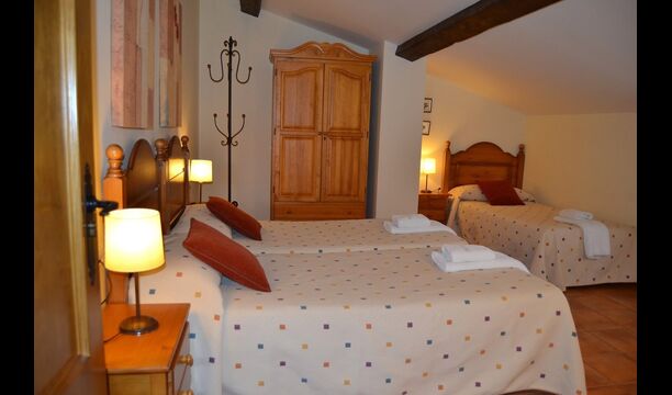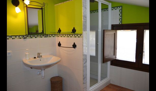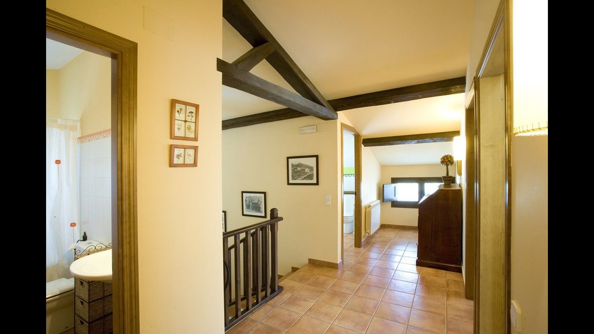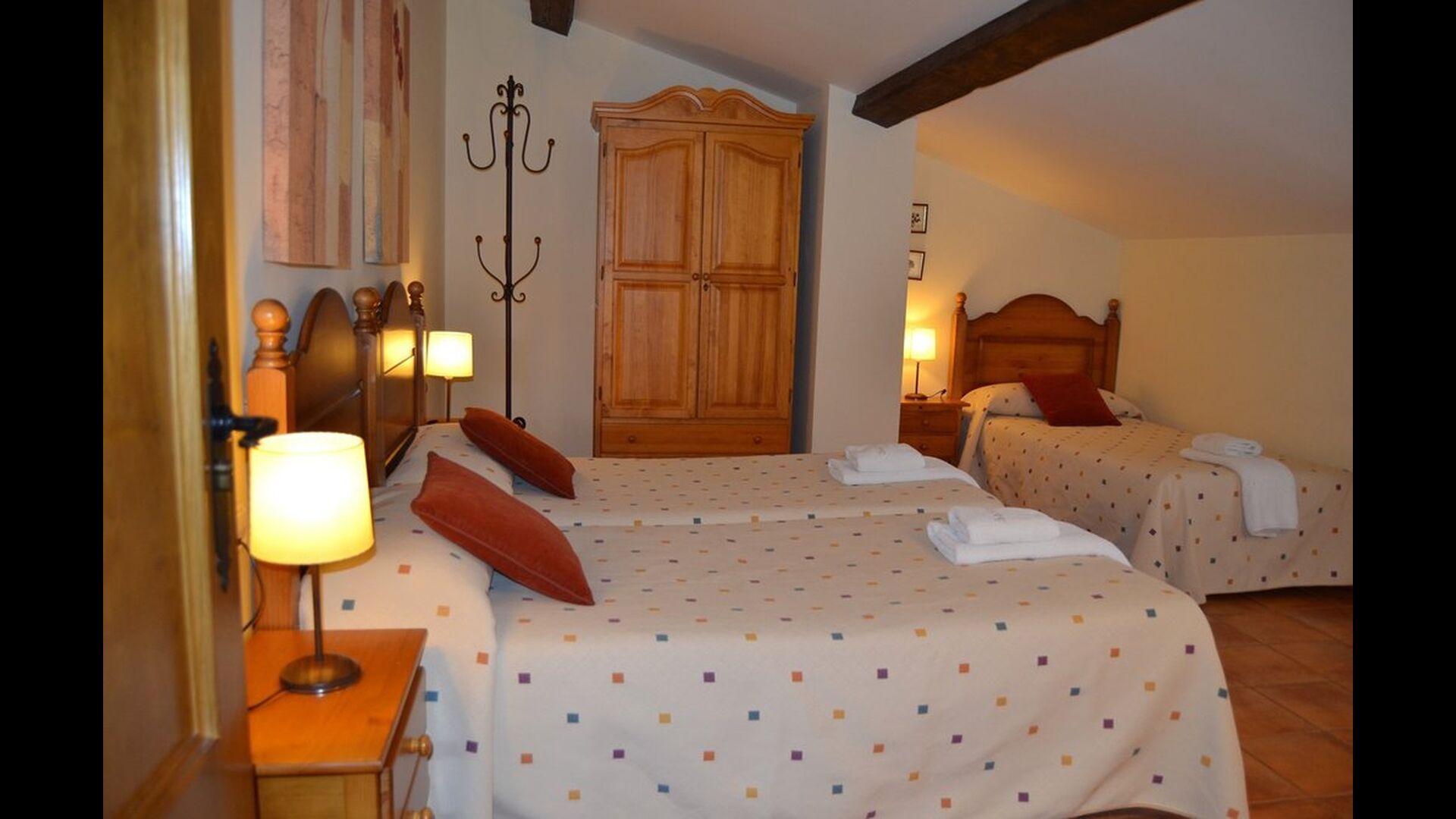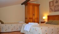 The upper floor is the rest area. It has a double room with 2 single beds and three triple rooms, two with 1 double bed and 1 single bed and one with 3 single beds. All are furnished with modern rustic-style furniture and comfortable beds. There are two bathrooms, one with shower and one with a bath tub.