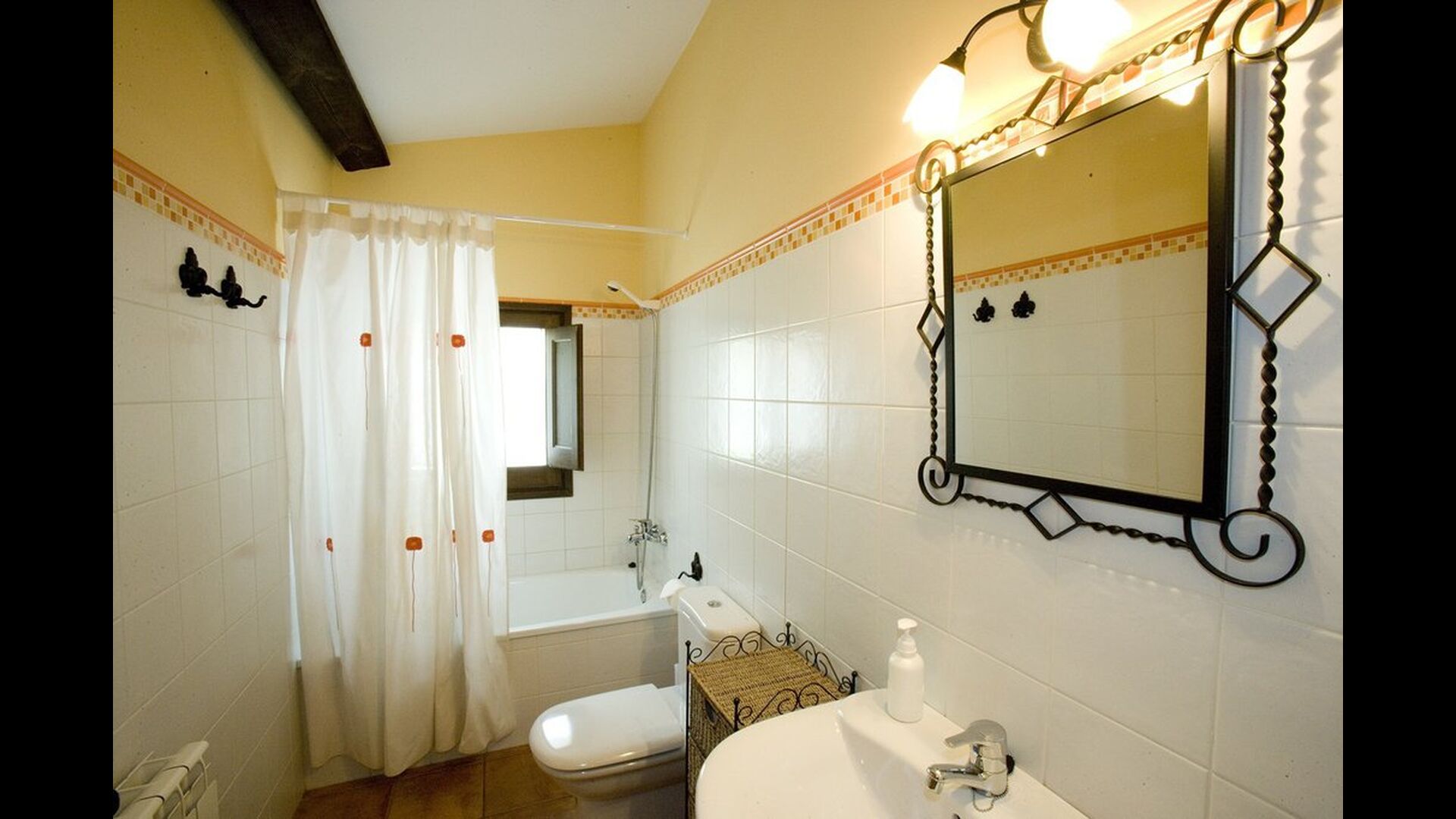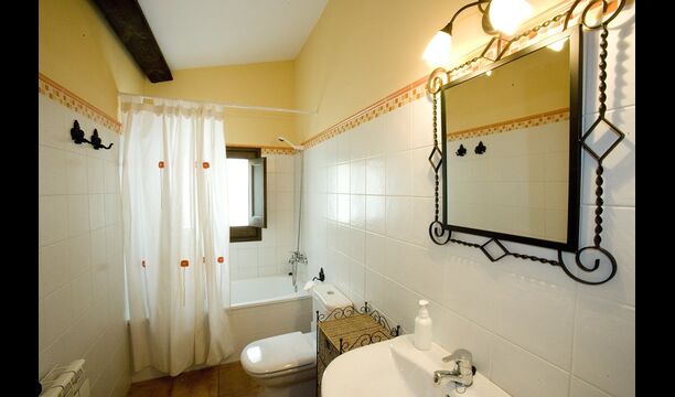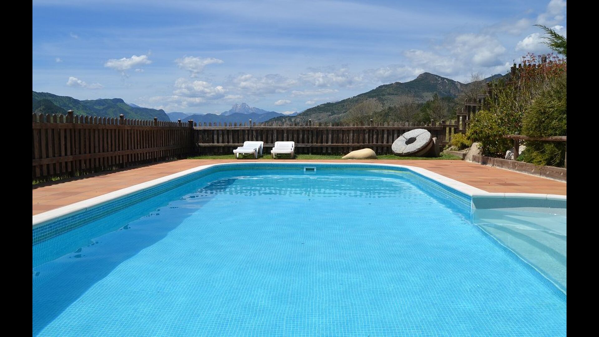 Outside, the cosy court yard between the house and the second building, at the moment unused, has been utilized to make an outdoor terrace with barbecue, which is usually the preferred location in the warm Catalan evenings. Also, there is access to the pool-area with the swimming pool of 8 x 4 meters and with sunloungers where you can relax in the sun and enjoy the mountain view. The house is perfect for families with small children, as the pool area is fenced and the swimming pool has roman steps, so the smallest can enter themselves, little by little.