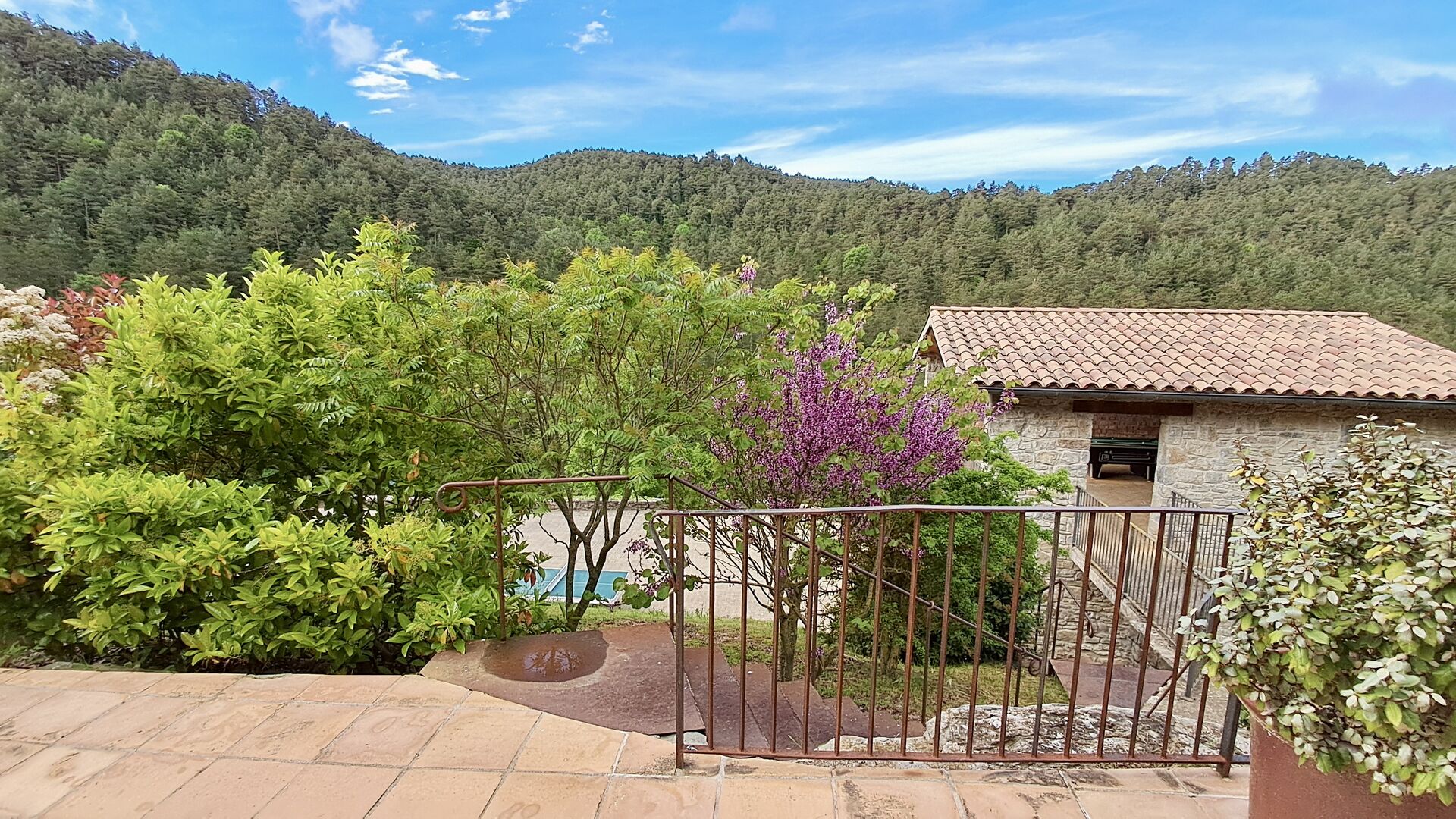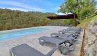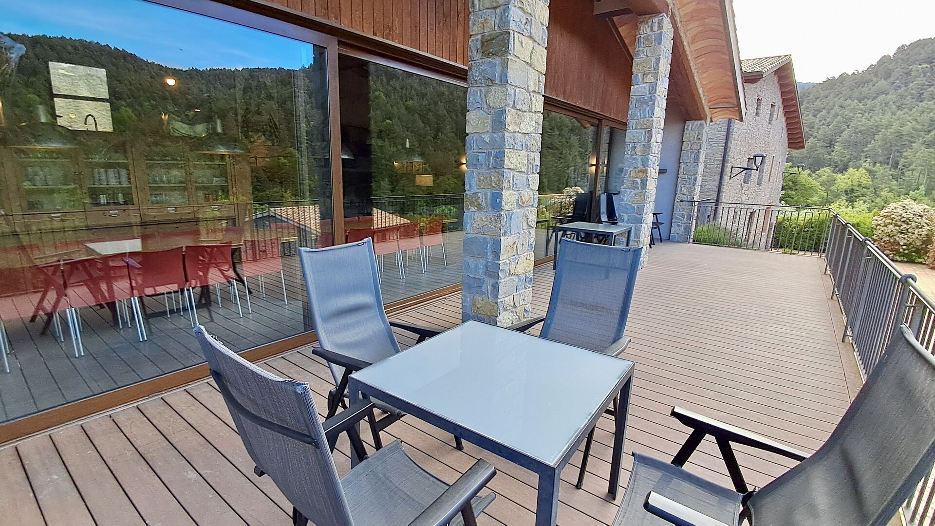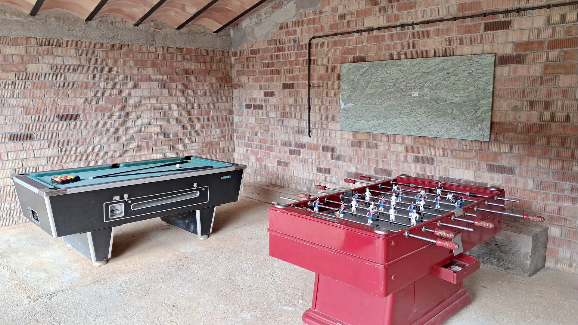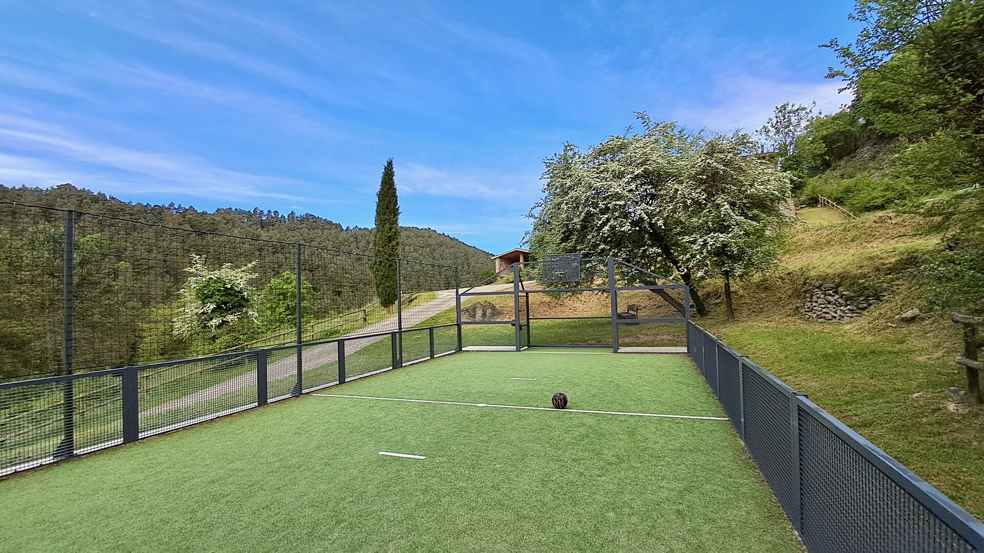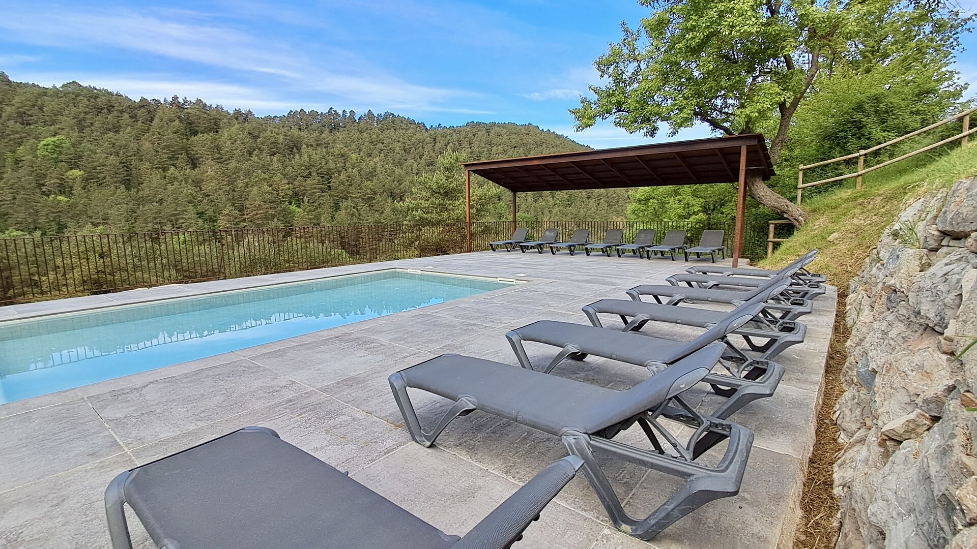 Les espaces extérieurs de La Beumela sont conçus pour être appréciés en toutes saisons. Les hôtes peuvent se détendre sur la terrasse panoramique ensoleillée, prendre leurs repas dans le coin barbecue avec tables extérieures ou se rafraîchir dans la piscine extérieure privée. Pour se divertir, une zone de jeux couverte avec baby-foot et billard est disponible, ainsi qu’une aire de jeux pour enfants avec balançoires, bac à sable et maisonnette. Un petit terrain multisports et un espace de pétanque sont également à disposition.