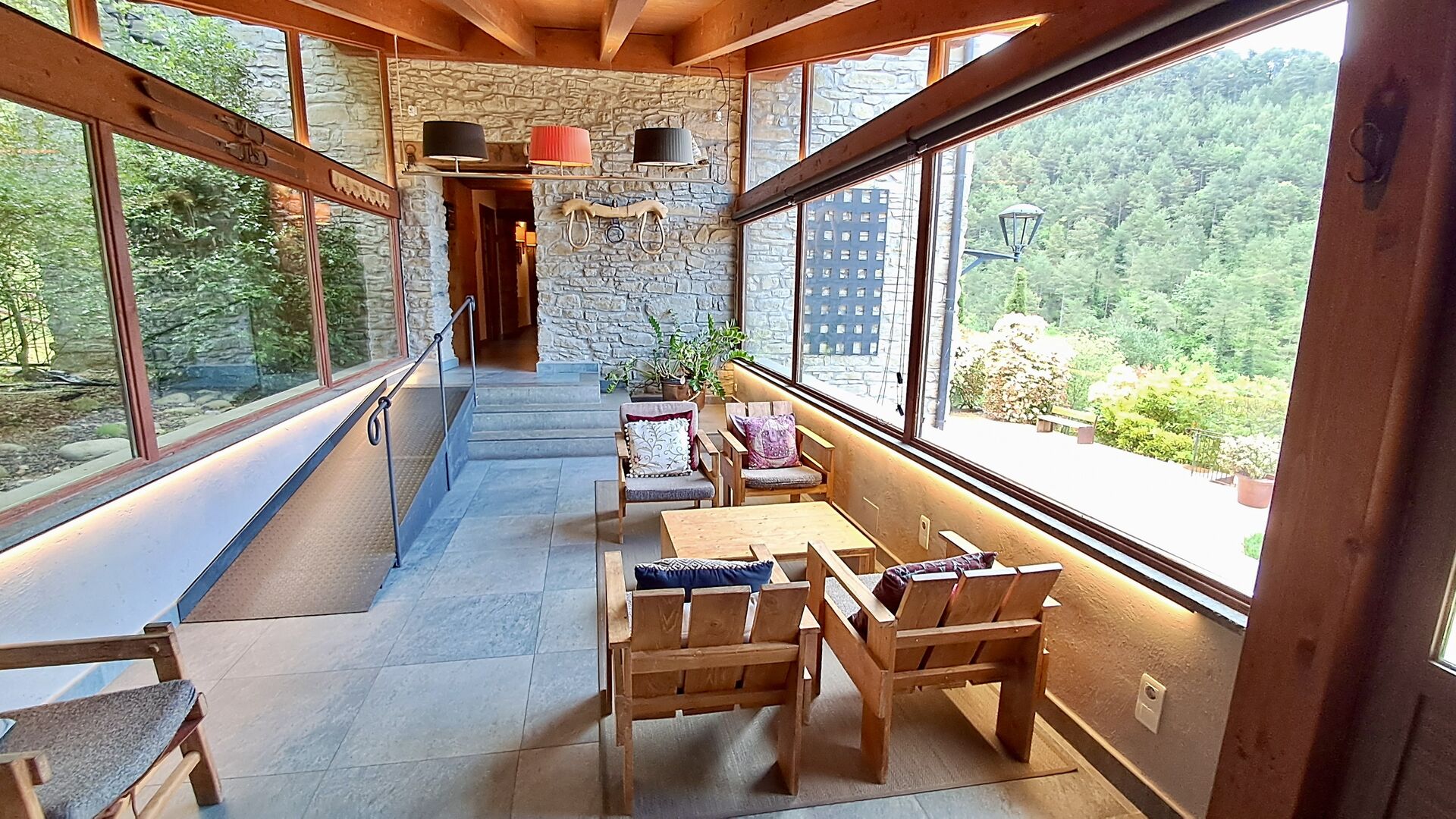Un atout remarquable est la piscine intérieure chauffée avec espace spa, offrant une vue imprenable sur la nature environnante et un espace de détente unique en toute saison.