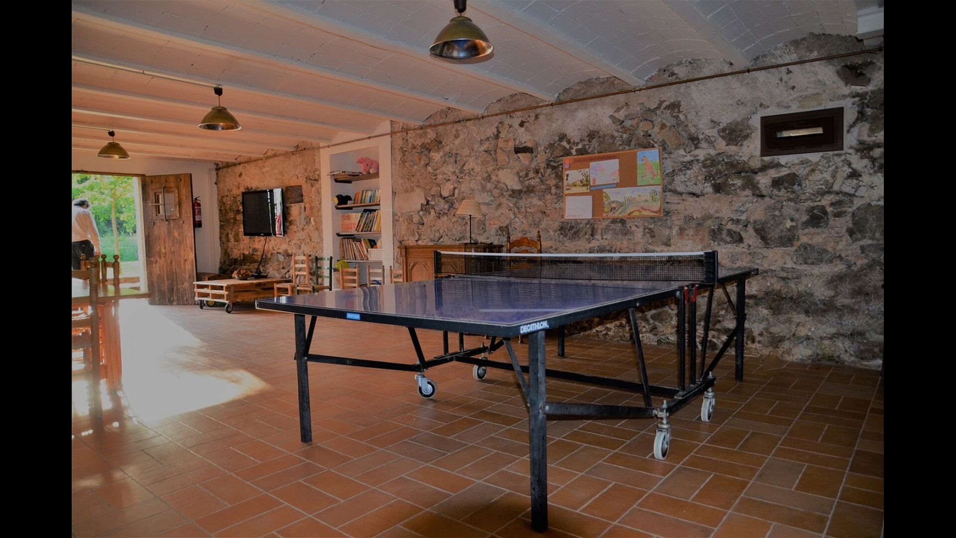 Each of the apartments also have their own private terrace, where you for instance can enjoy the evening meals in the light of the enchanting Catalan sunset. Other mentionable facilities in the holiday home could be the large multipurpose room, which has Table tennis, toys, flat screen TV, other games, etc., so there is always something to do in Can Garilla.