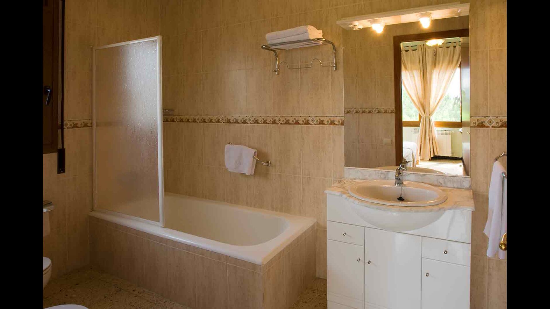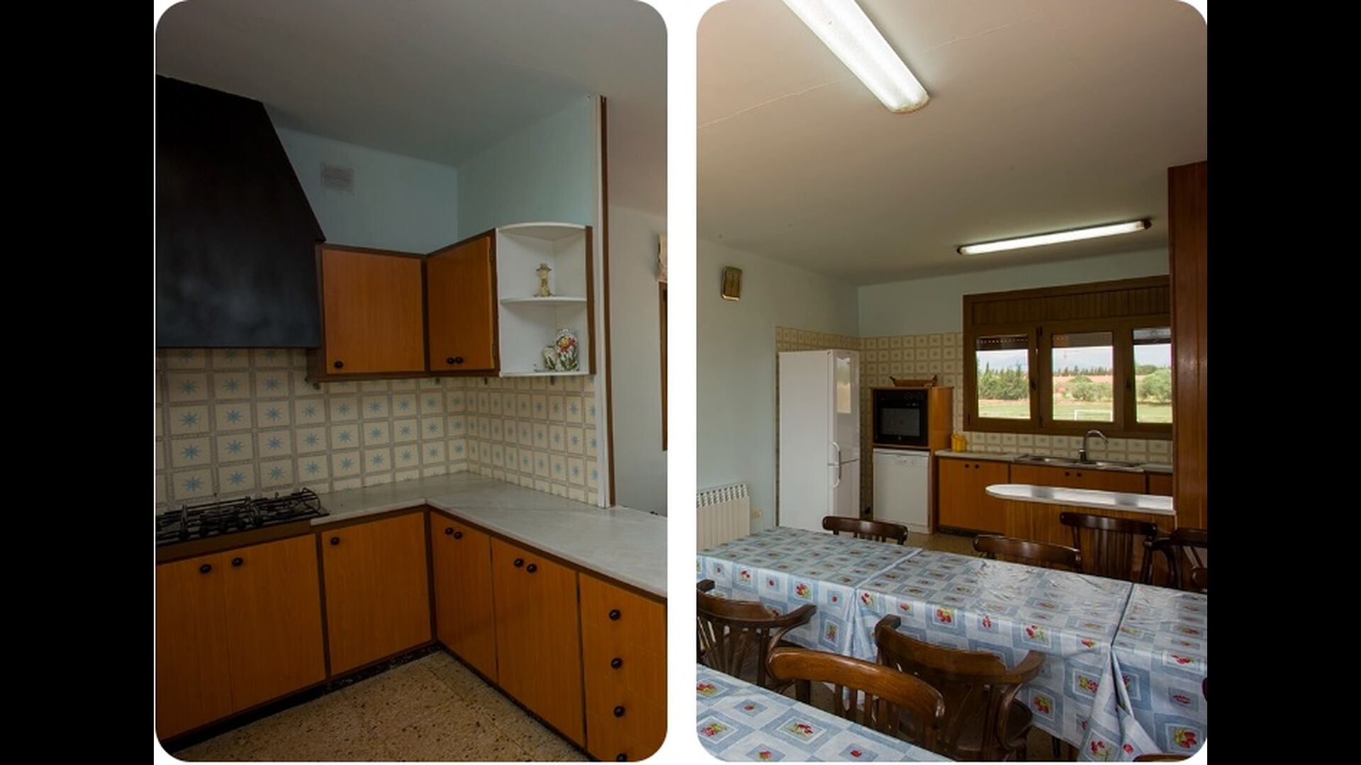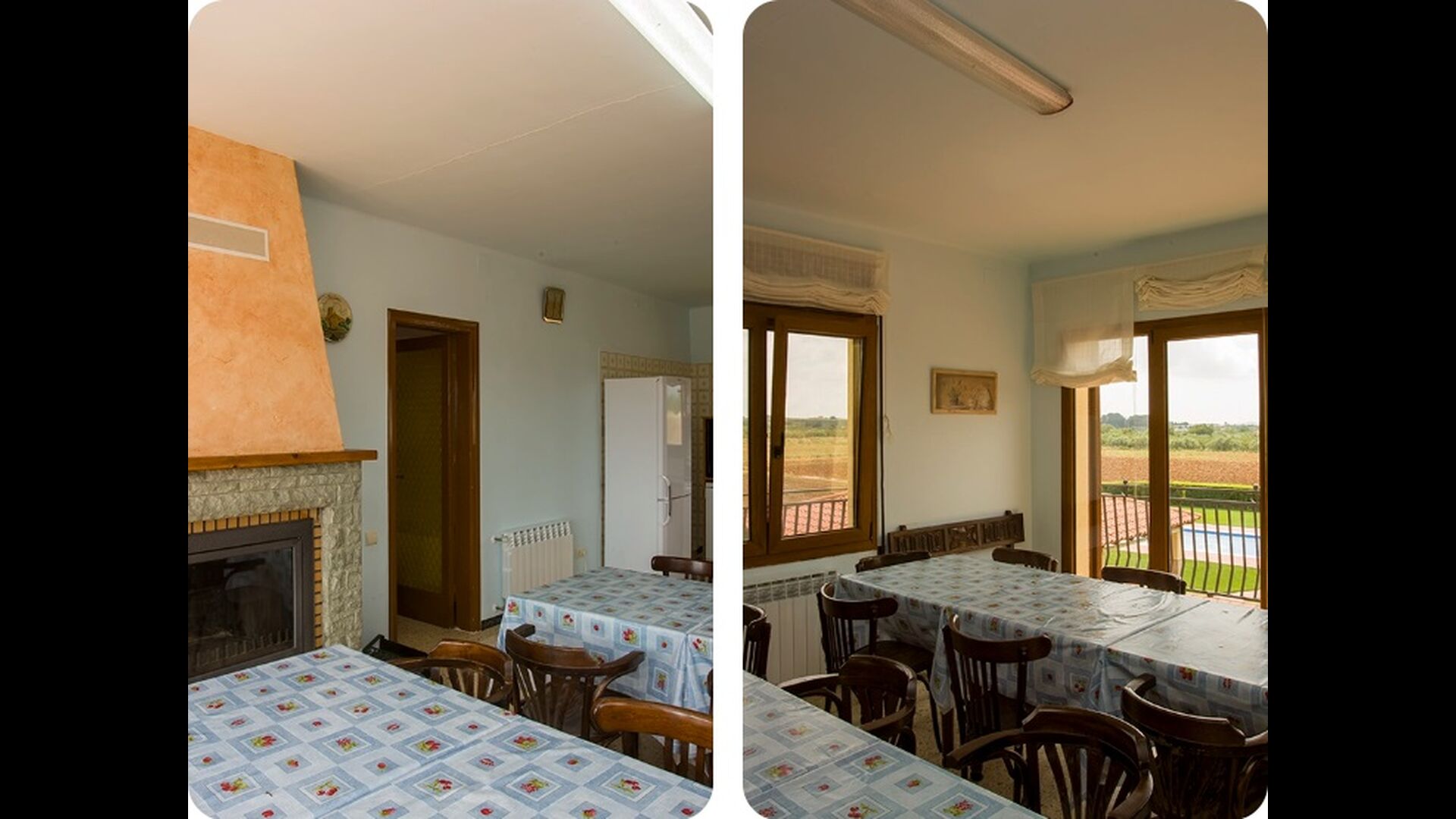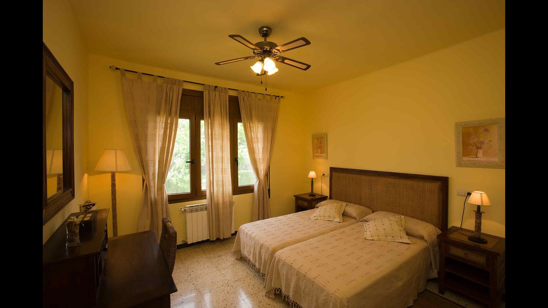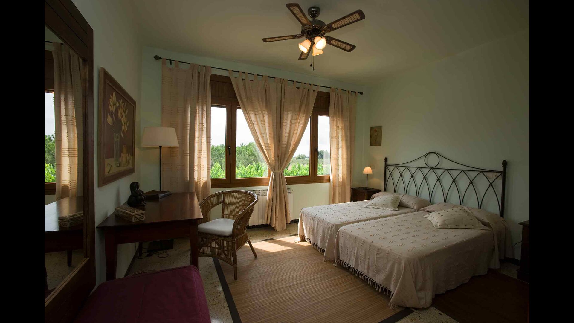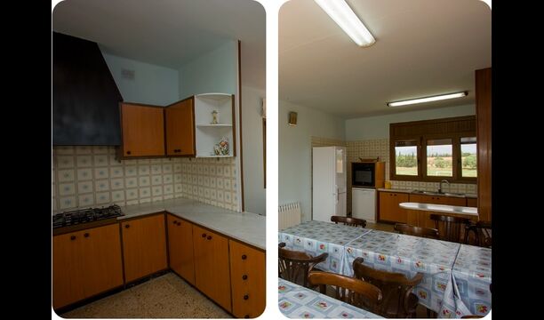 1. Rez-de-chaussée, Cal Masover : on accède au rez-de-chaussée par un petit escalier. Vous y trouverez 4 chambres doubles (3 lits doubles et 1 lit simple), deux salles de bain complètes, une salle à manger et une cuisine entièrement équipée.