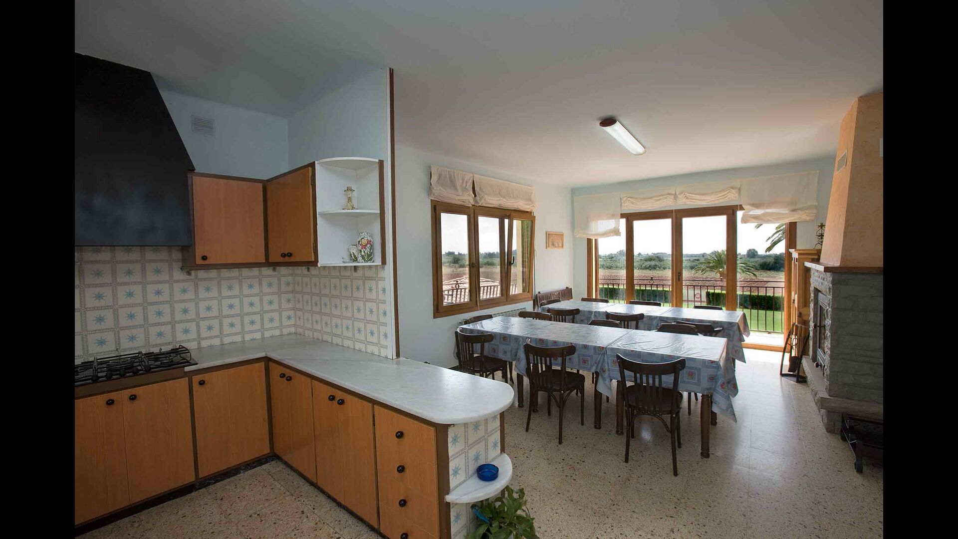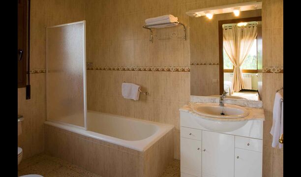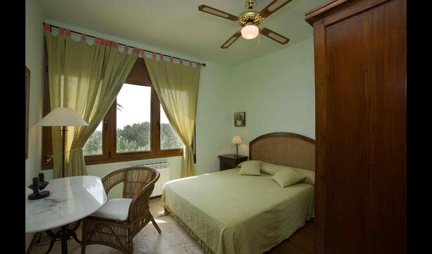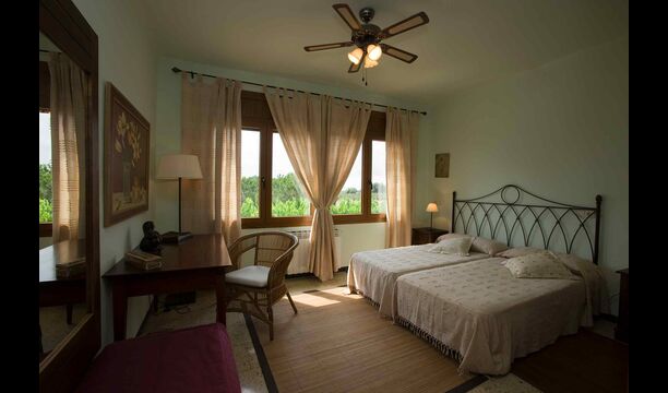 2. Premier étage, La Casa Gran : en montant l'escalier, vous entrerez dans la maison. Vous y trouverez une grande cuisine-salle à manger ouverte avec une belle cheminée. La salle à manger donne accès à la grande terrasse offrant une vue magnifique sur la propriété et la mer Méditerranée au loin. Un peu plus loin, un couloir mène à deux chambres doubles partageant une grande salle de bain. Le couloir dessert 4 chambres doubles (dont 2 avec Chambres (2 lits doubles et 2 chambres avec 2 lits simples chacune) avec salle de bain attenante. L'une des chambres dispose d'une baignoire et les autres de douches.