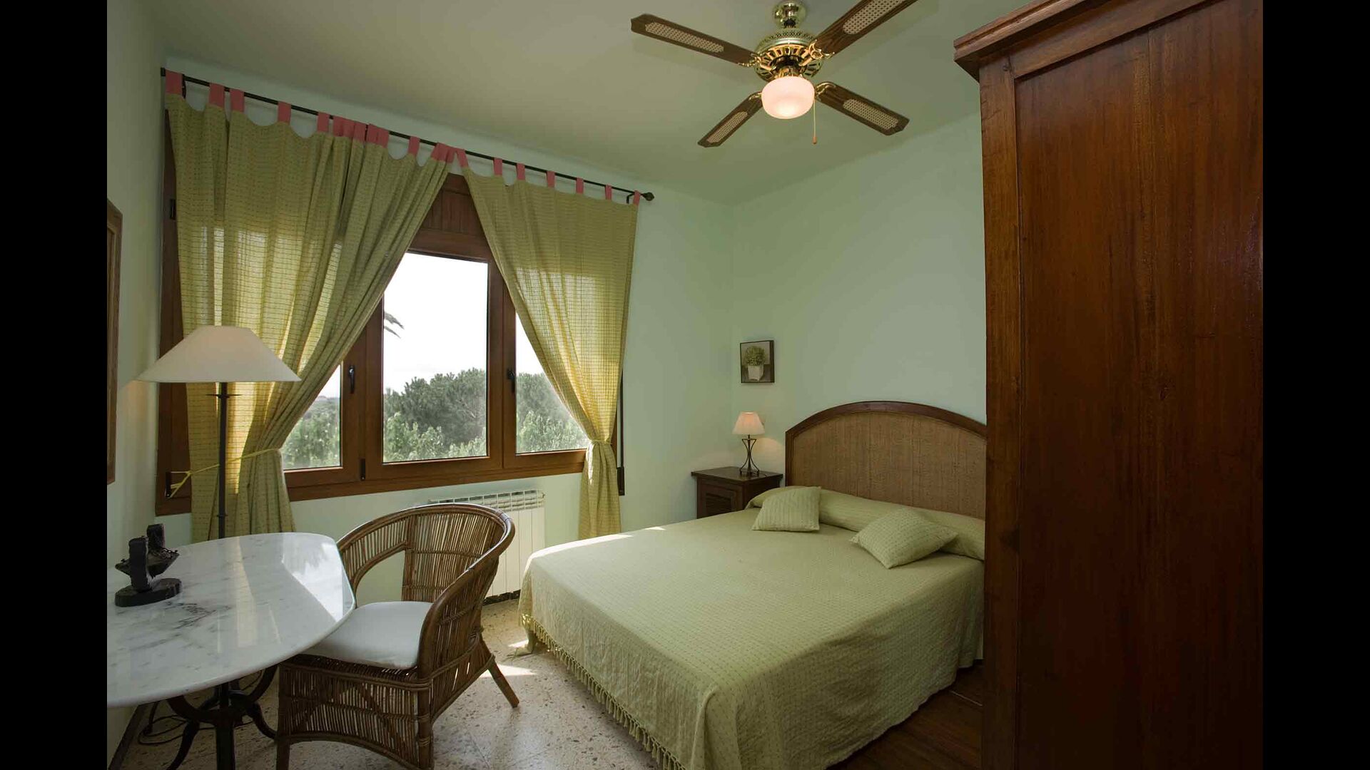 Entre la piscine et le parking, un espace ombragé et cosy sous les pins, « El Resguard », est idéal pour lire ou jouer aux échecs sur une table en pierre ornée d'un échiquier gravé.