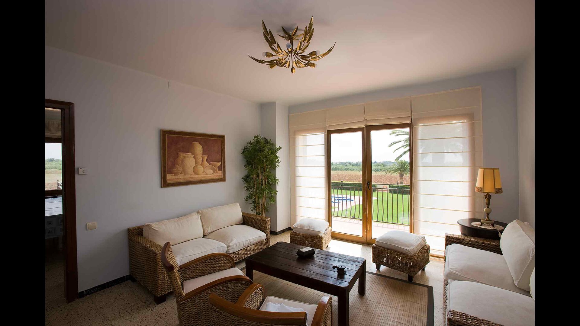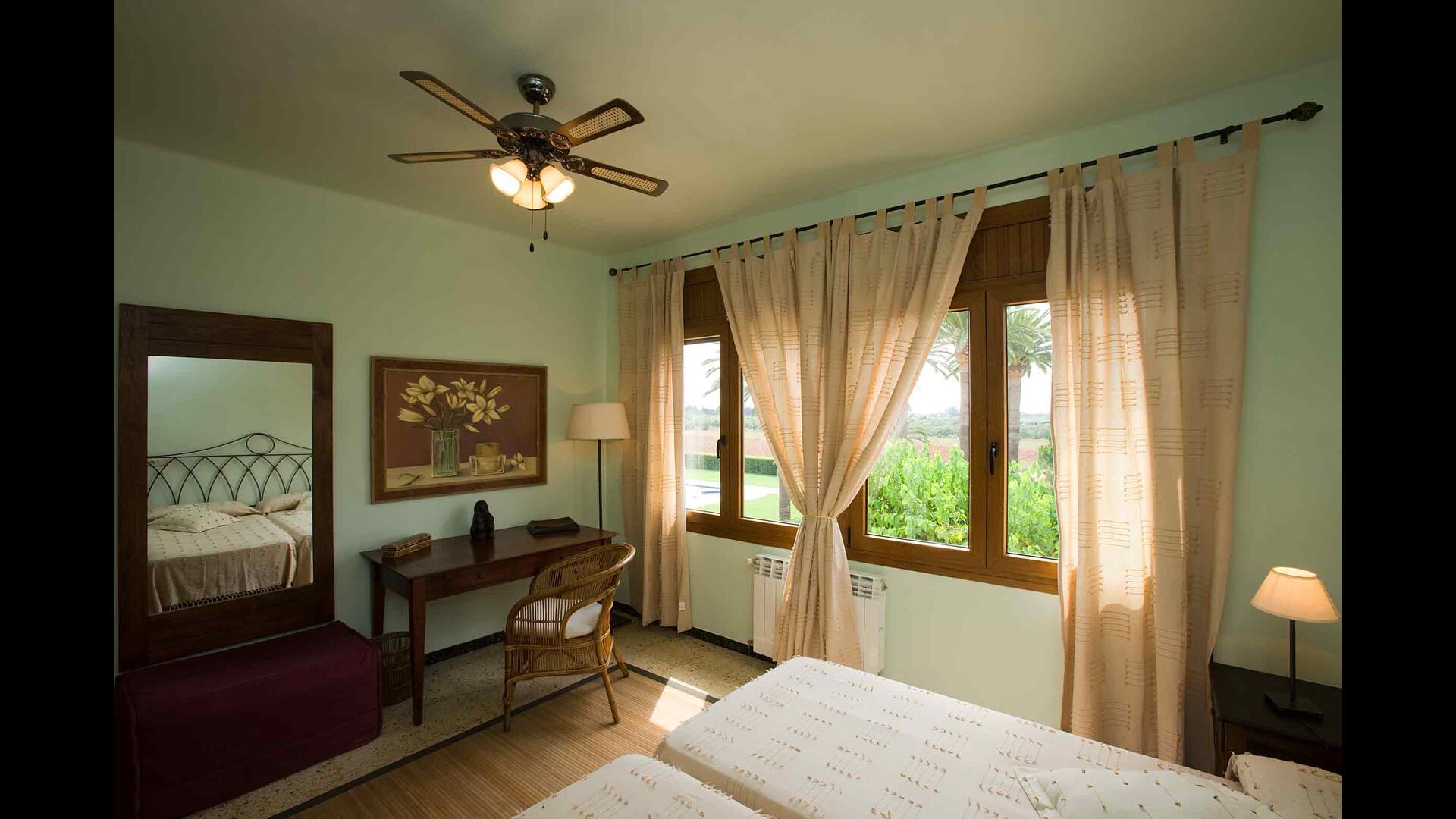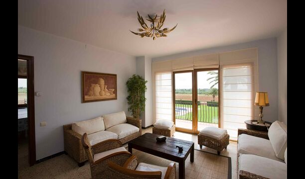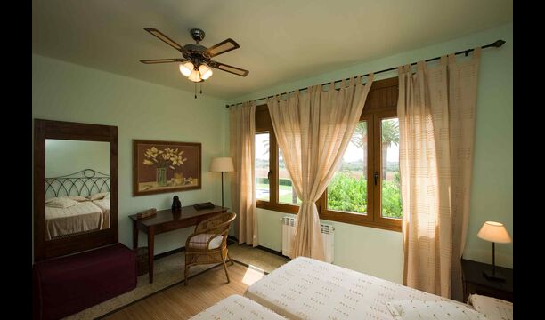 Un système automatique ouvre la porte de la propriété. En empruntant le chemin de gravier bordé d'arbres fruitiers et de plantations de légumes, vous arriverez à une oasis de palmiers. Sur votre gauche, vous passerez devant le court de tennis et « El Xalet » (le Chalet), où vivent les sympathiques propriétaires Marc et sa famille. Quelques mètres plus loin, vous entrerez dans la maison de vacances Casa Costel.