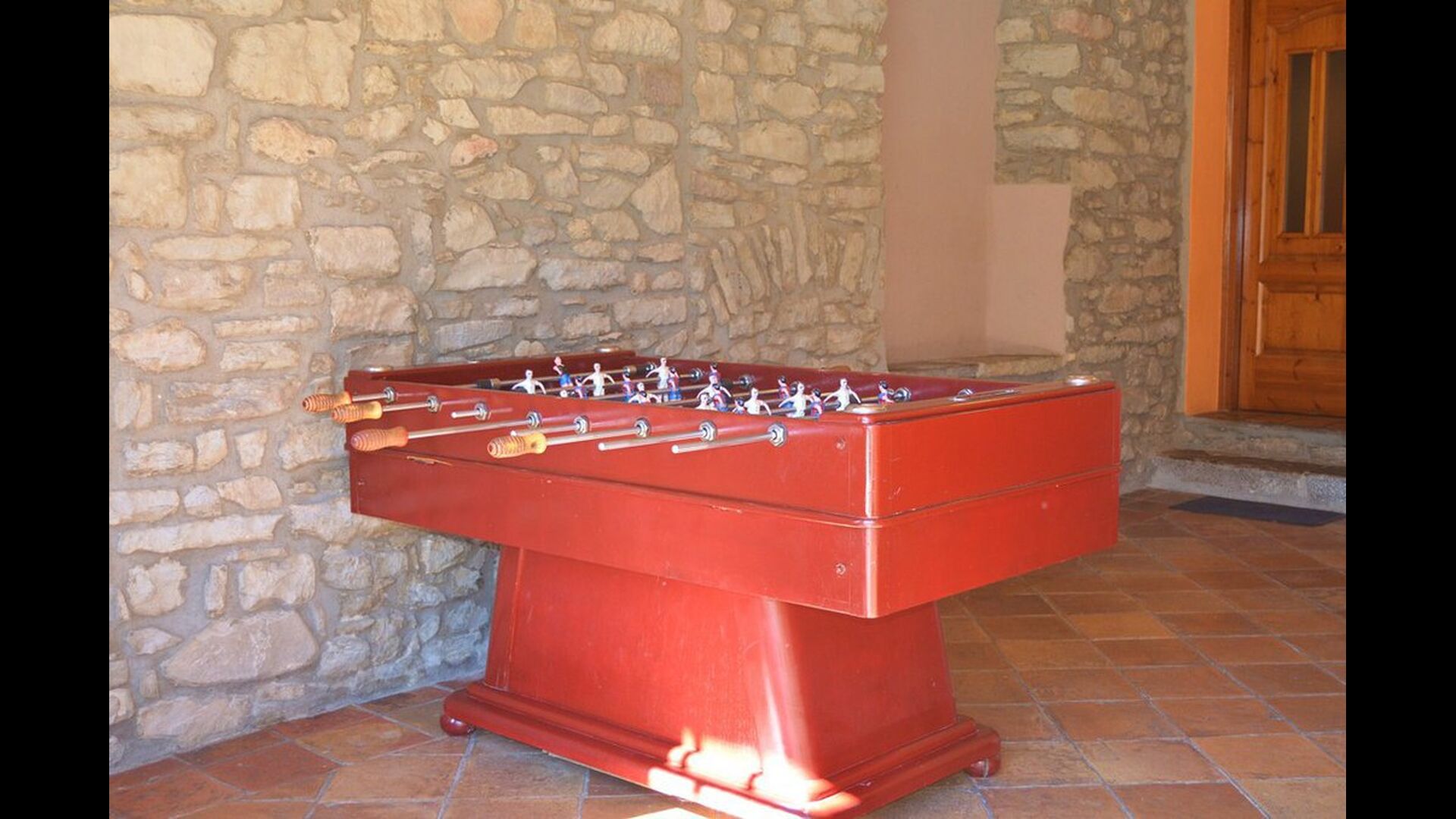 Sur ce même étage, il y a un beau porche couvert et fonctionnel où se trouve un grand barbecue, où vous pouvez cuisiner vous-même. Il dispose également d'un réfrigérateur supplémentaire et d'une grande table à manger, où vous pourrez déguster des plats faits maison et jouer au baby-foot.