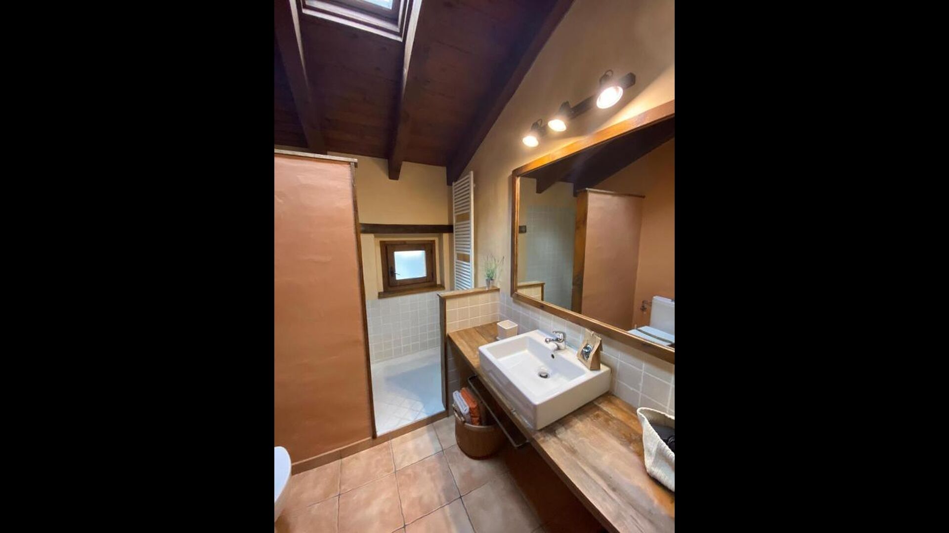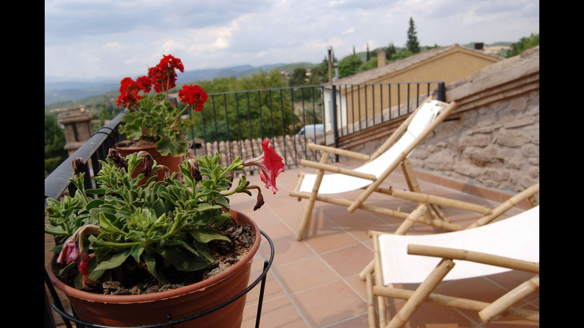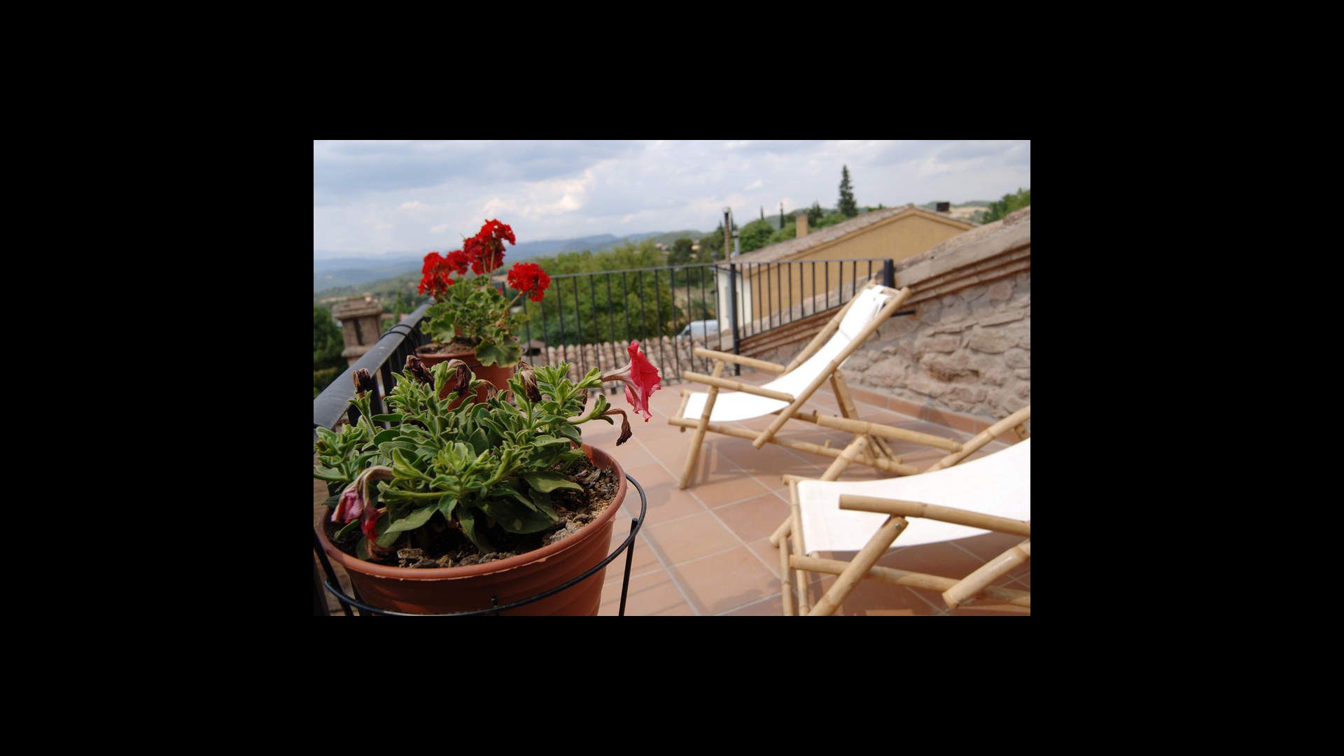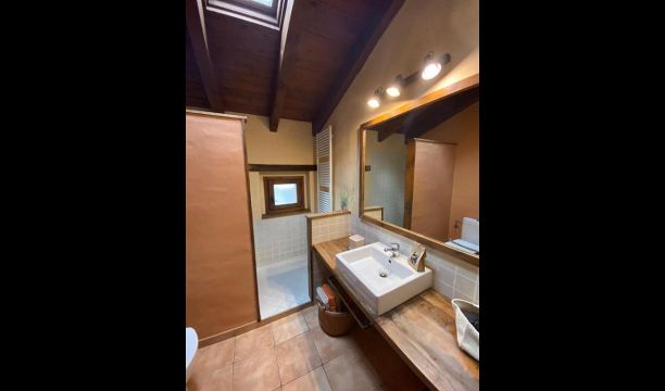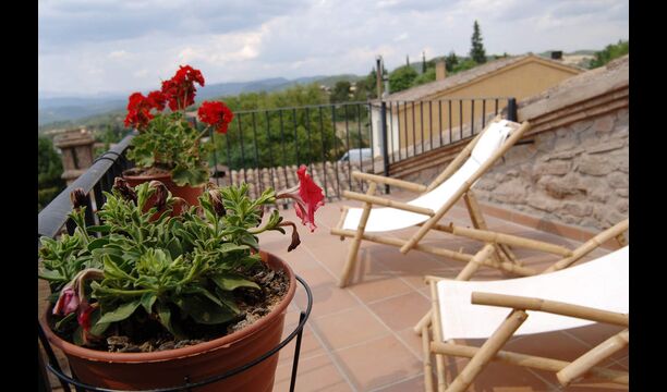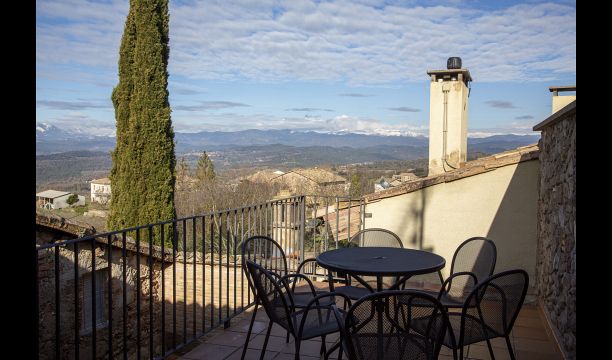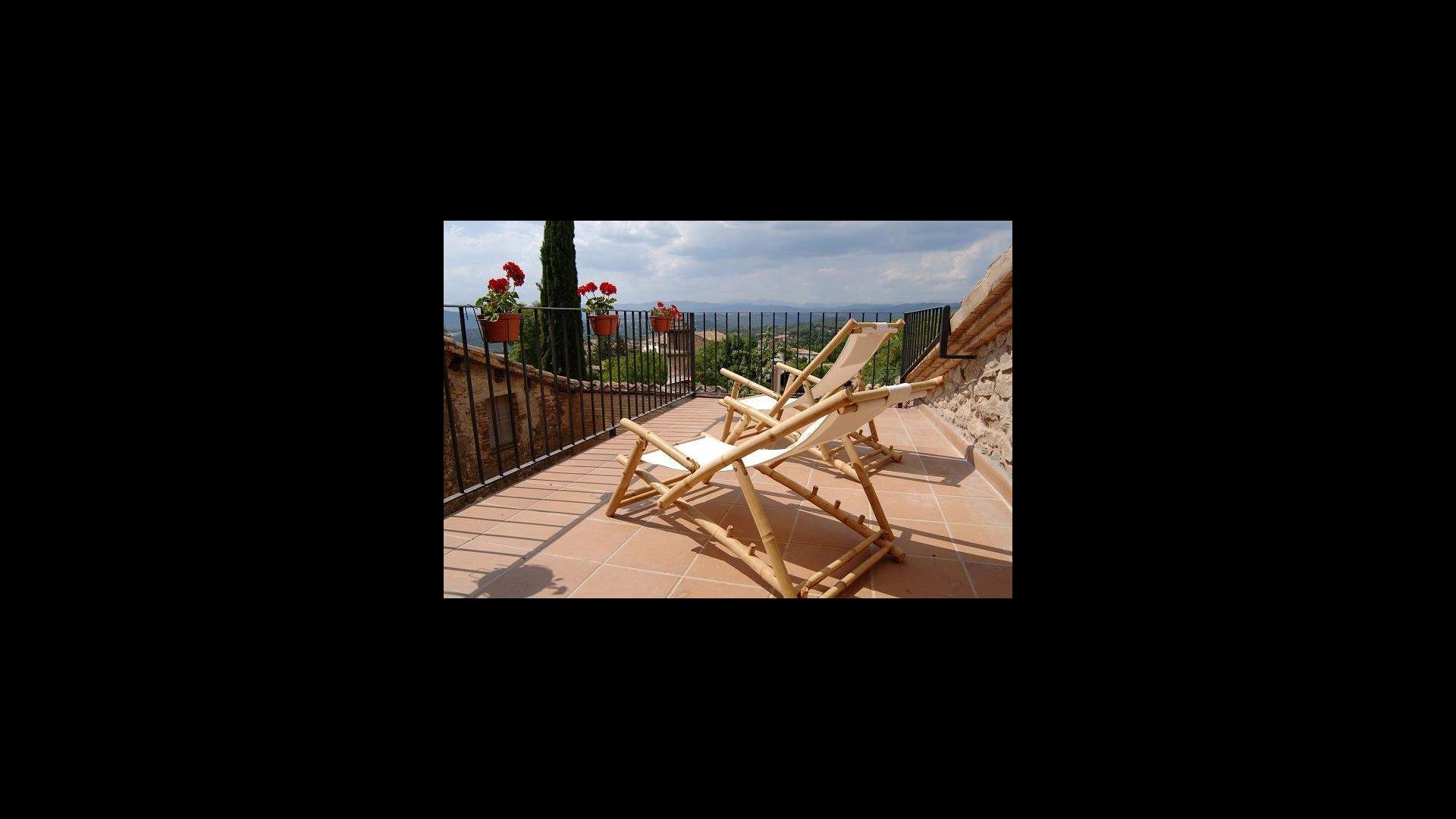 Au 2ème étage, il y a deux chambres doubles et une chambre pour quatre personnes (lits simples). Depuis une chambre double, on accède à une charmante terrasse sur le toit avec une excellente vue sur la campagne catalane. . De plus, il y a une deuxième salle de bain avec douche.