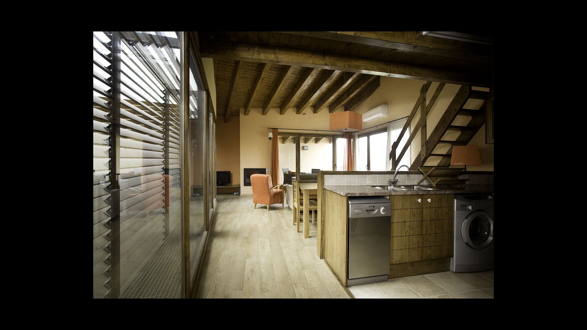 Les espaces communs sont parfaitement intégrés, avec le salon aveccoin canapé et coin repas, donne une connexion naturelle entre la cuisine et la terrasse. La cuisine est entièrement équipée avec four, plaques vitrocéramiques, lave-vaisselle, Nespresso et vaisselle.