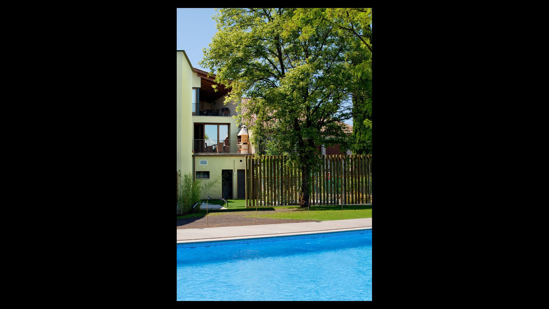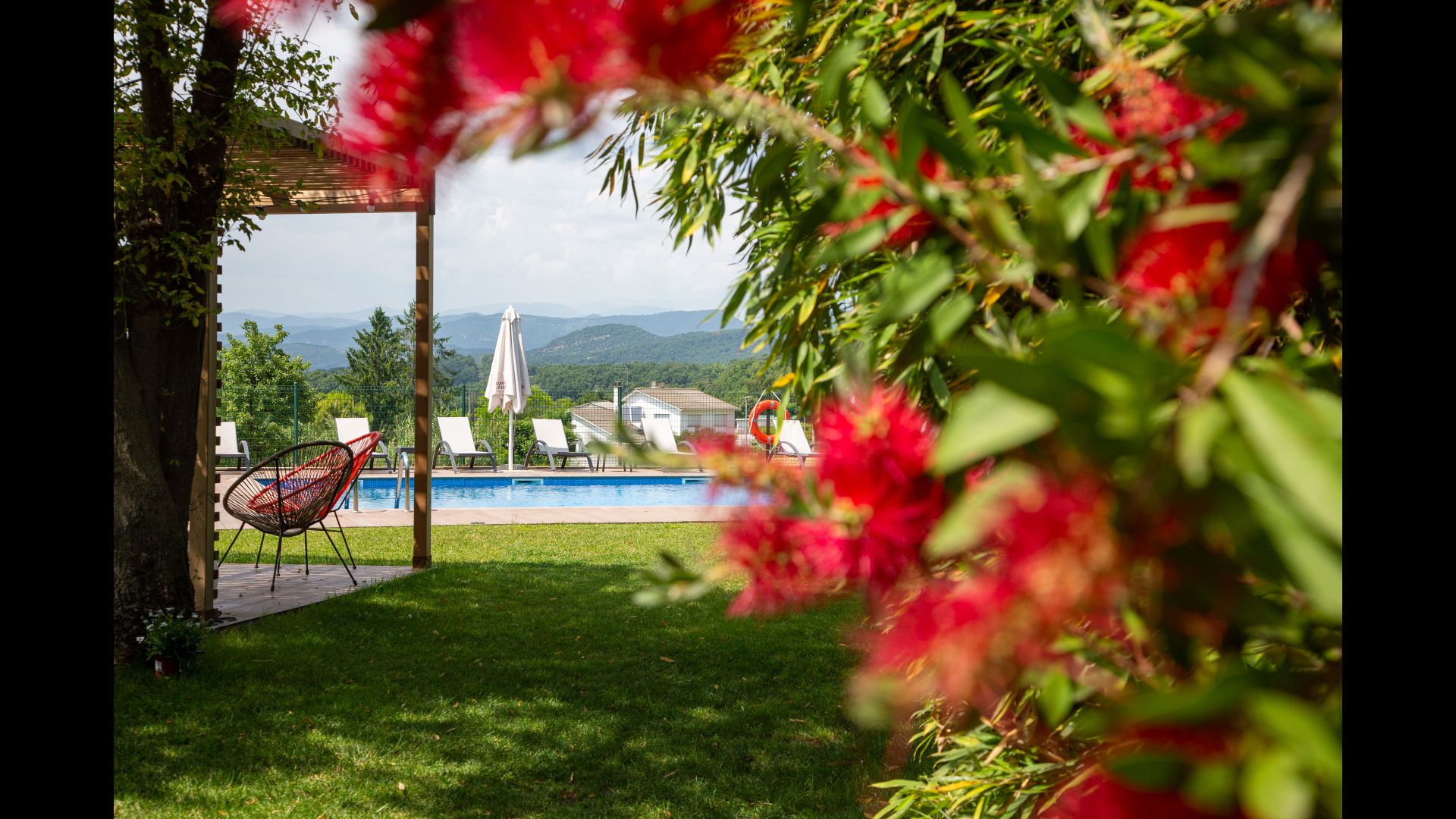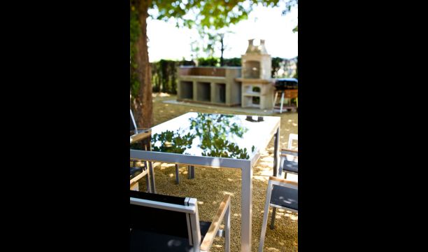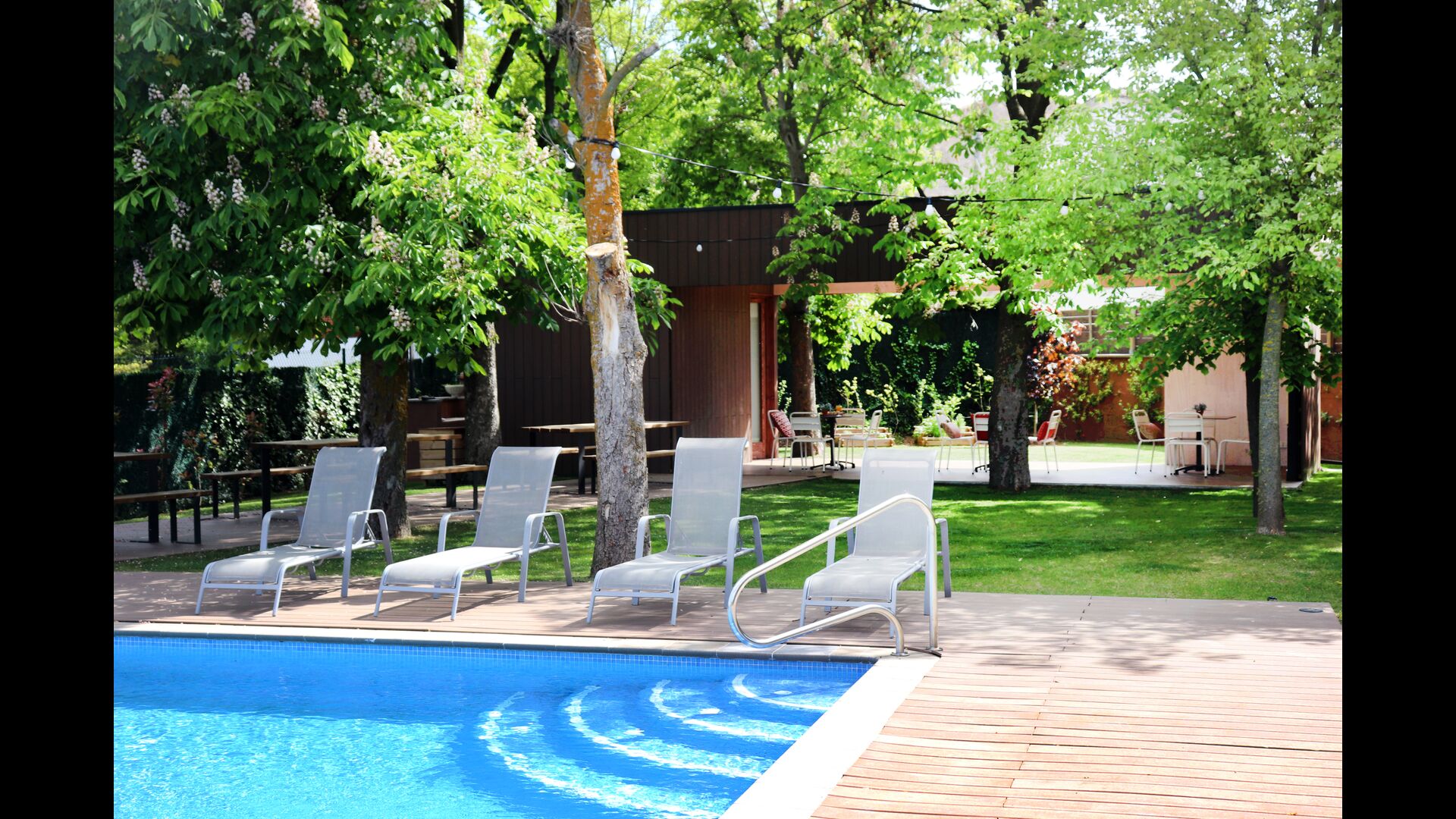De plus, l'arrière de la maison a été transformé en un fantastique espace piscine avec la grande piscine (17 x 5 mètres), le café. tables, toilettes et vestiaires, et coins ombragés et endroits ensoleillés. La vue est imprenable, directement sur les Pyrénées.