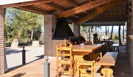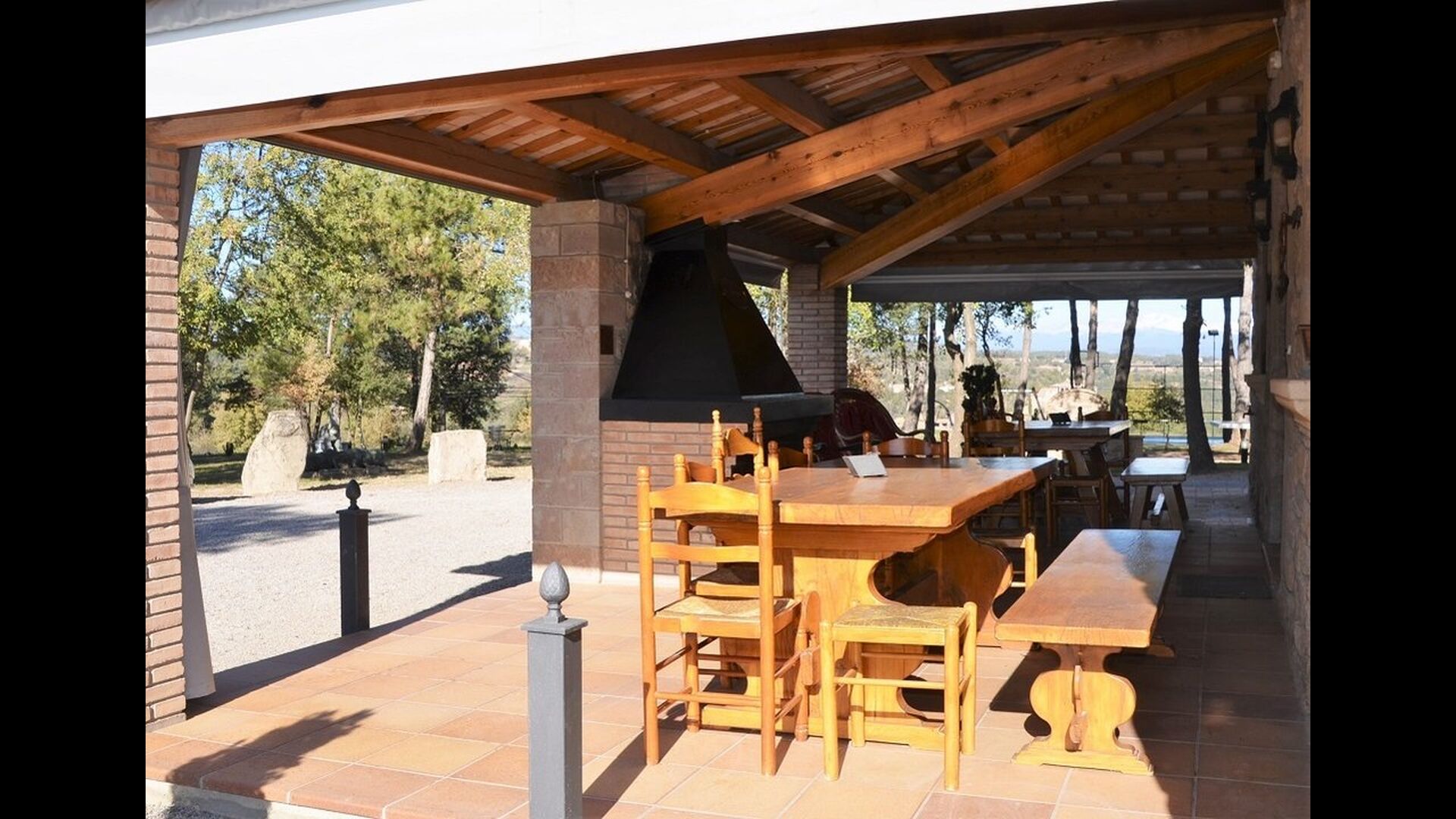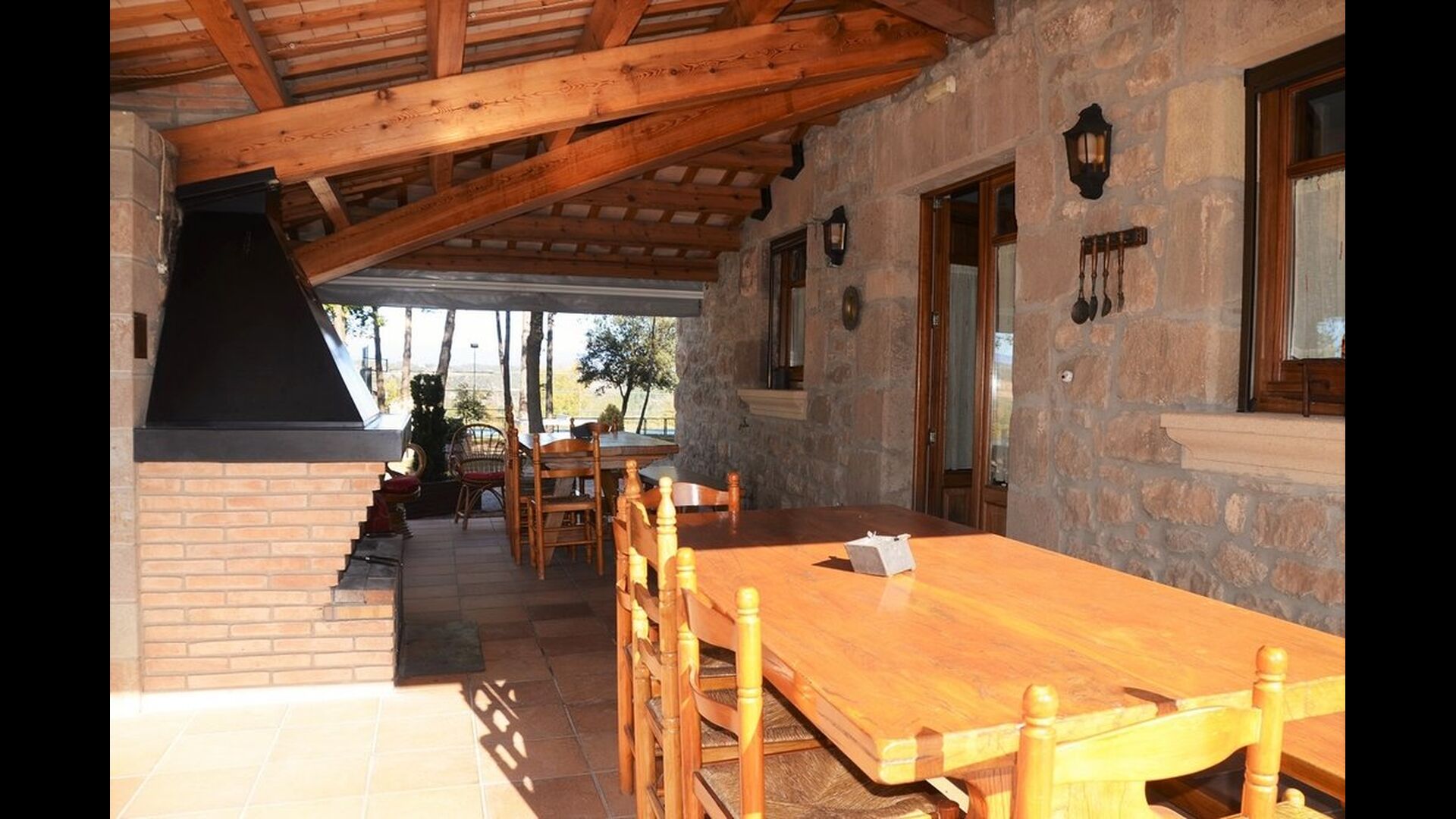 • grande terrasse couverte avec barbecue et table à manger