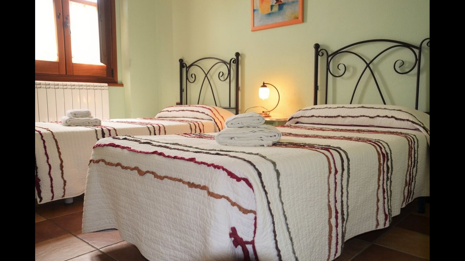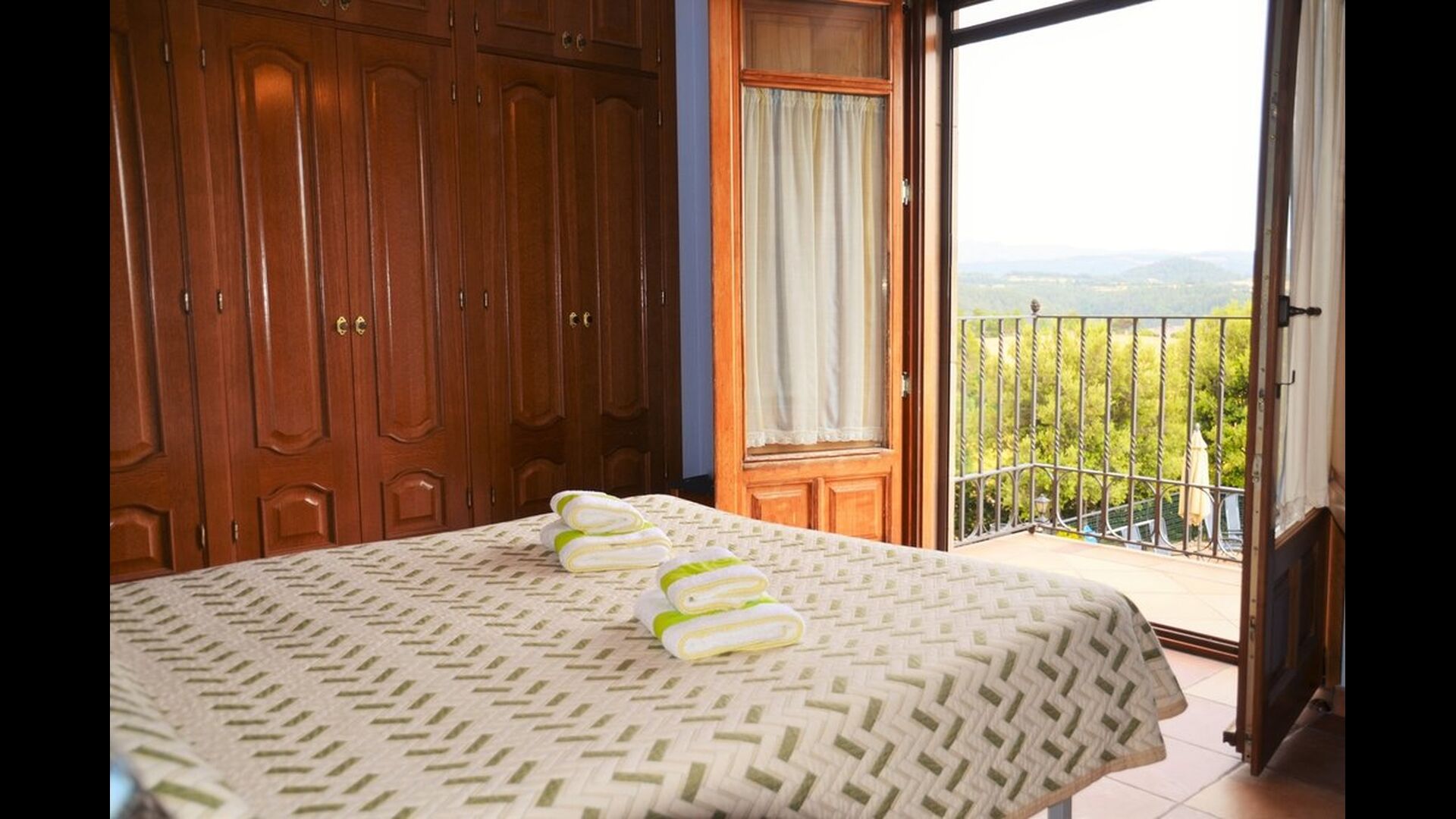 Presque toutes les chambres sont au premier étage. Il y a 10 chambres doubles au total, dont certaines avec balcon et vue magnifique. Huit des dix chambres ont des lits doubles, tandis que deux d'entre elles ont deux lits simples, que vous pouvez organiser à votre guise.
