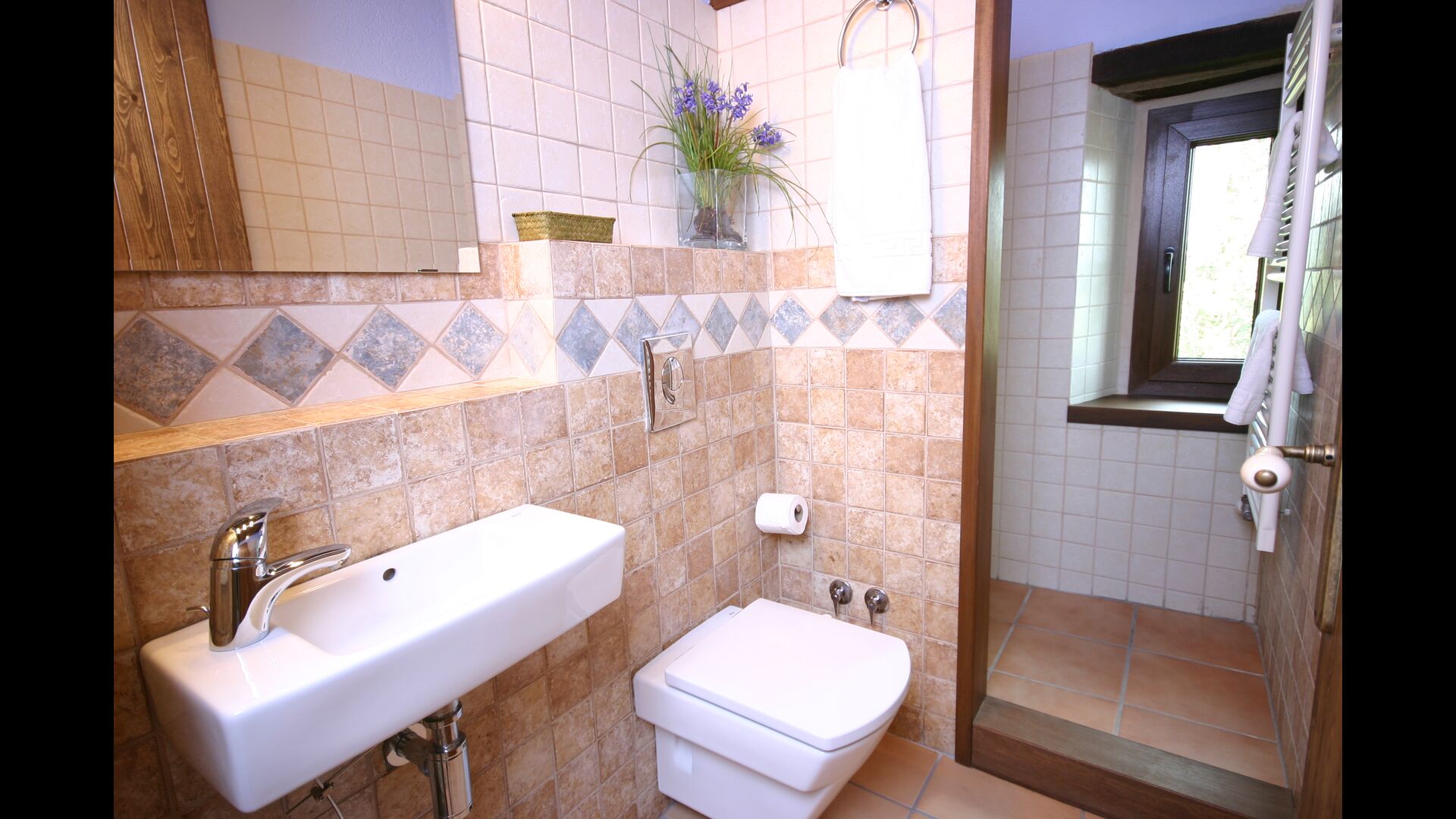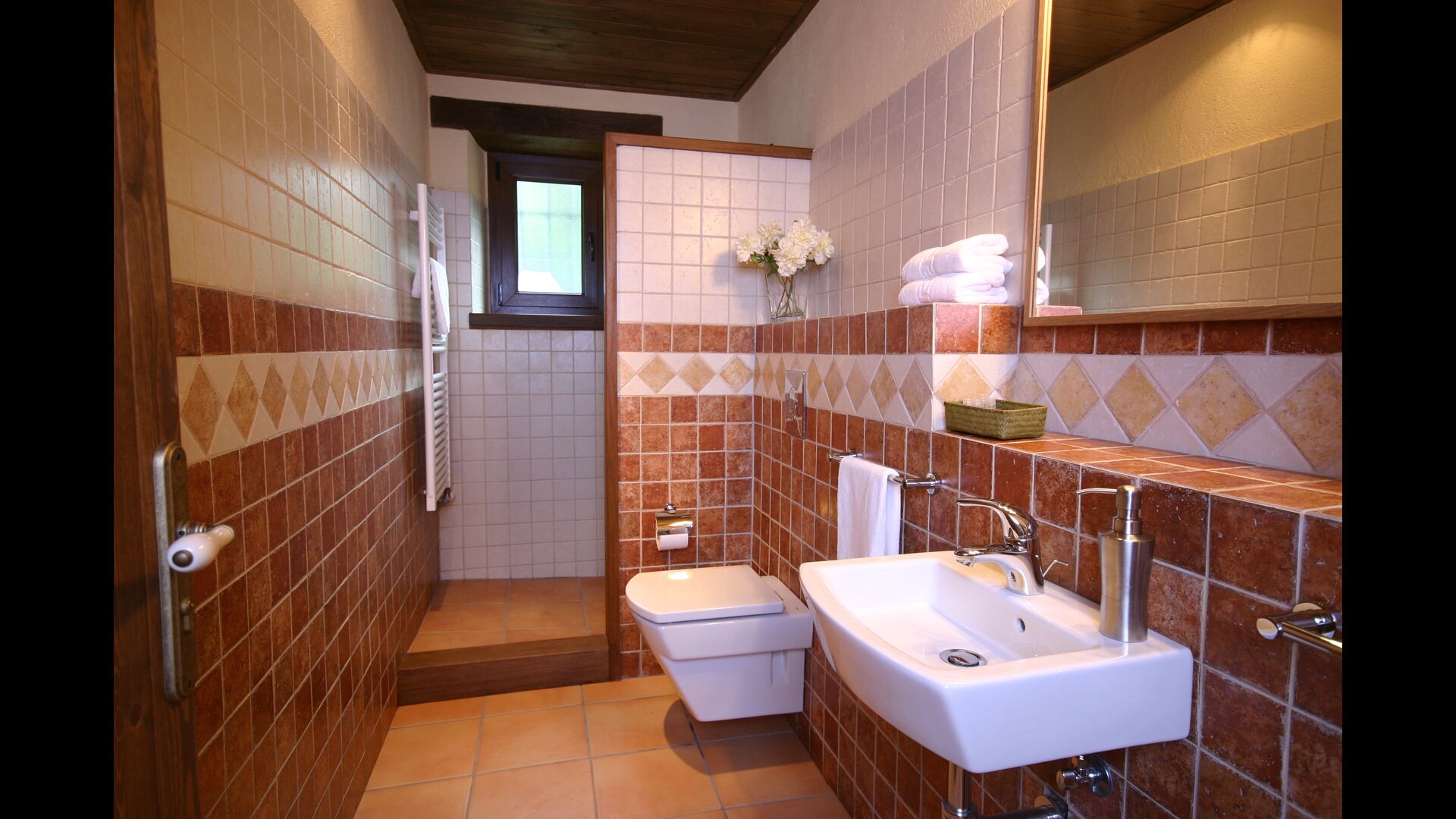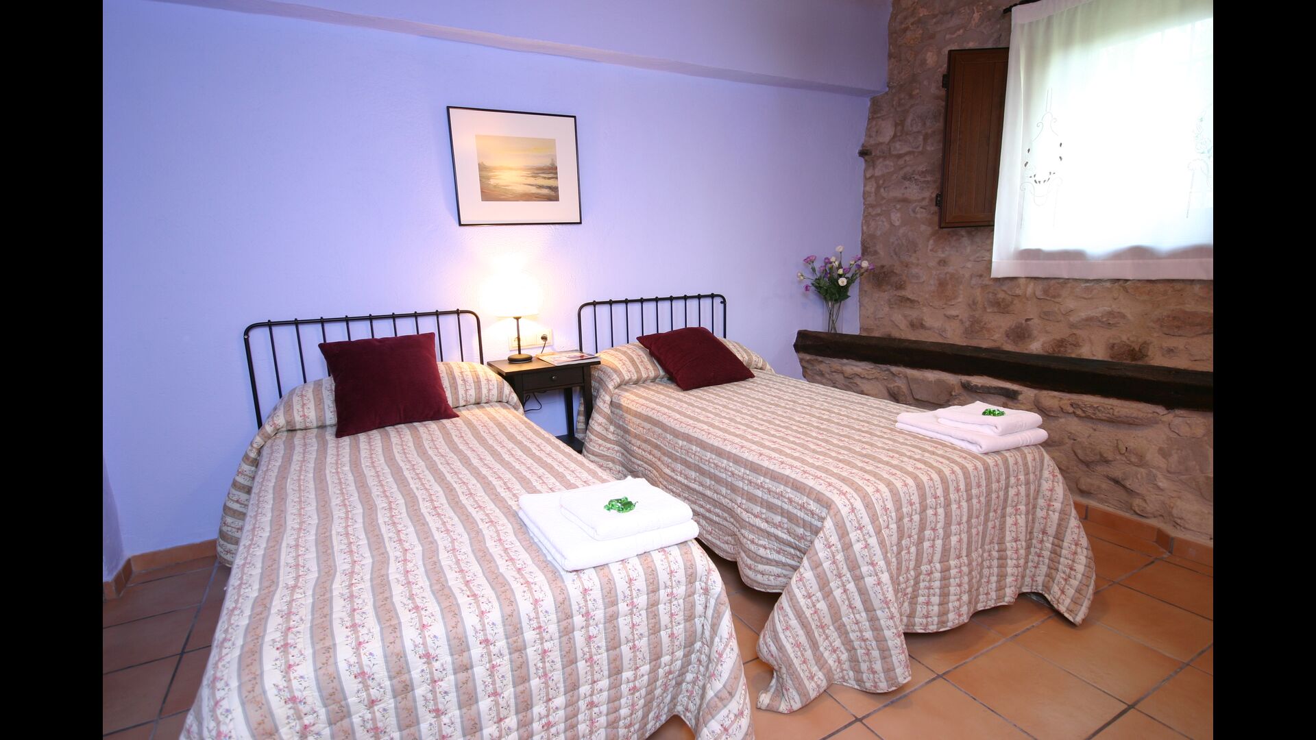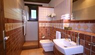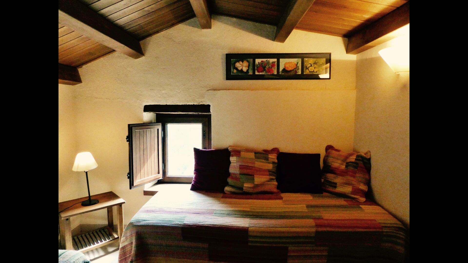 À Can Bosquita - Gran, il y a un total de 6 chambres, dont 2 chambres triples et 4 chambres doubles, ainsi que 4 salles de bains. La maison a un niveau d'entrée avec le parking. Comme la maison est située sur une pente, la maison a plusieurs niveaux, ce qui est très charmant. Quelques marches plus haut se trouvent les trois premières chambres, toutes très spacieuses. Elles sont équipées de lits simples, qui peuvent être aménagés en lits doubles si vous le souhaitez. L'une des chambres a sa propre sortie sur le jardin. Ces trois chambres se partagent deux salles de bains, toutes entièrement équipées et également avec douches. Plus haut, 3 chambres supplémentaires dont une plus petite que les autres en "style loft".
