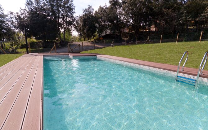 La propriété est calme car c'est la dernière maison avant la forêt, il y a donc de grandes opportunités pour de belles promenades et pistes cyclables. Dans l'autre sens, le village local est accessible à pied. Ici, il y a quelques restaurants, une boulangerie, un supermarché et quelques magasins. Il existe également des transports en commun vers Barcelone et Gérone.