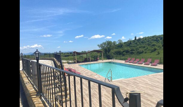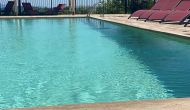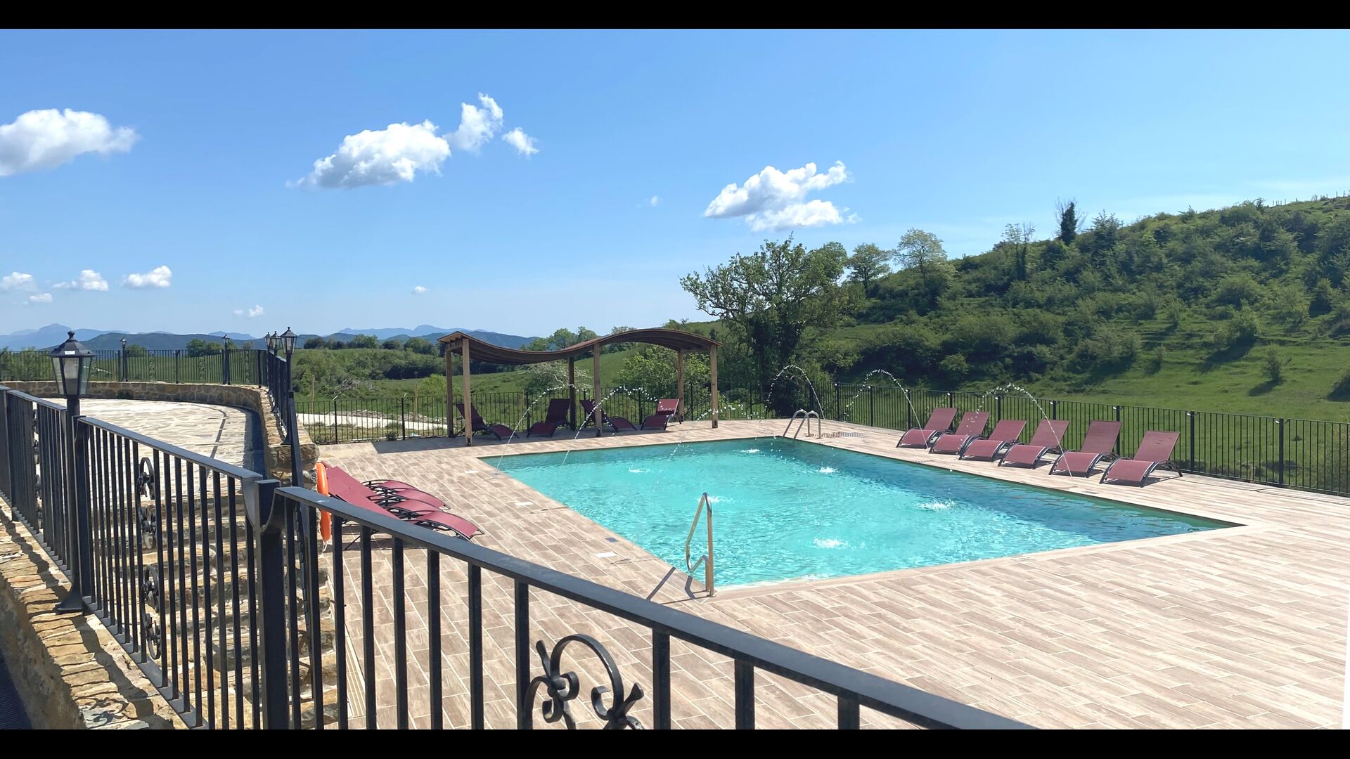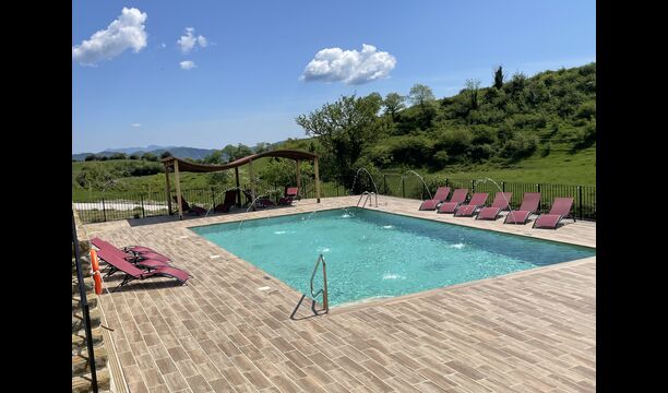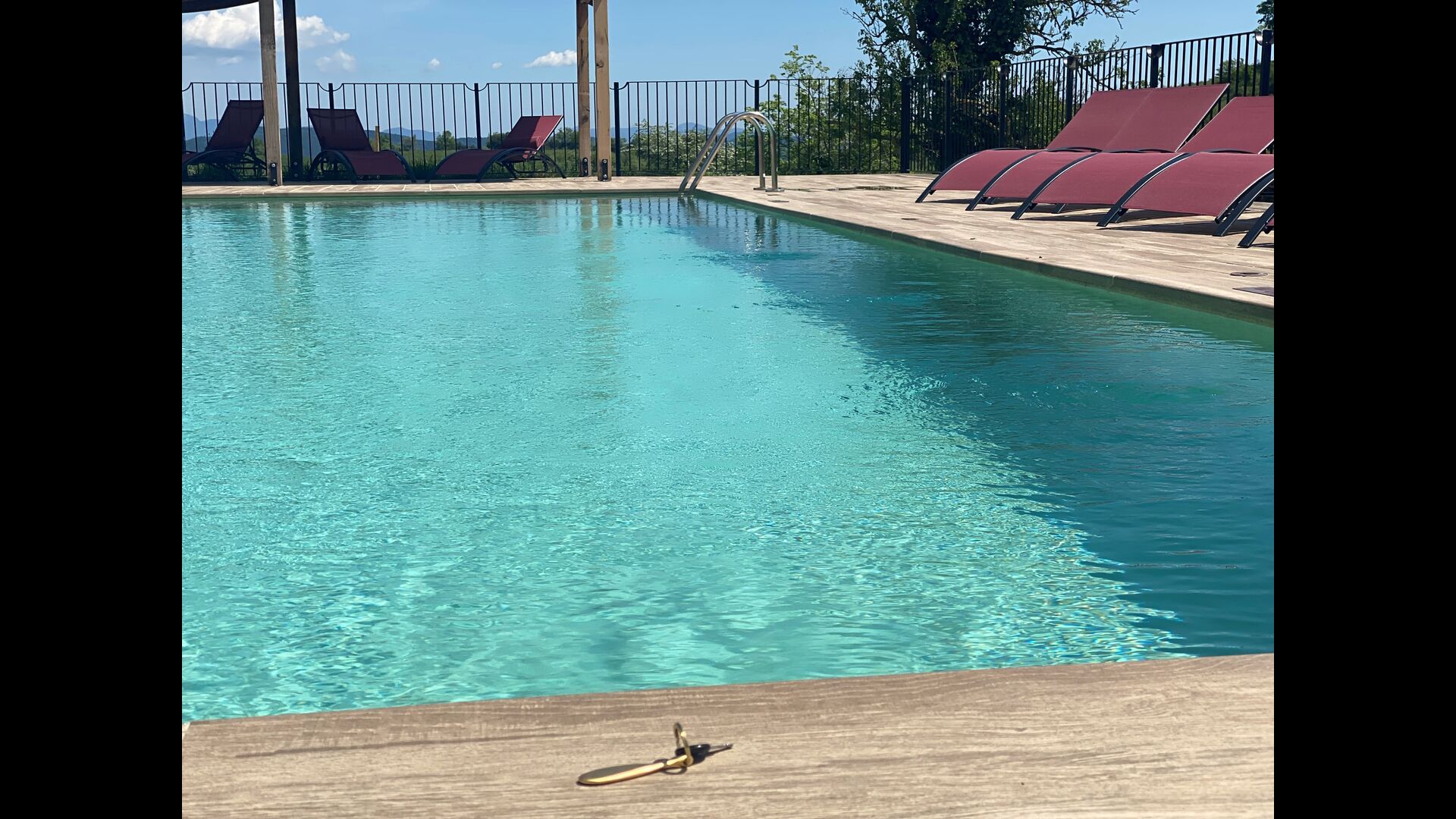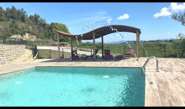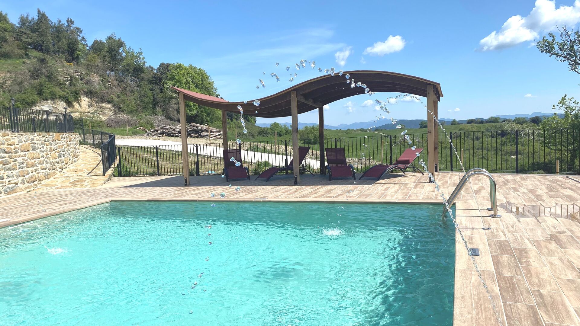 Le grand espace piscine est le point naturel de détente. Il y a beaucoup de transats, et s'il fait trop chaud, vous pouvez simplement vous baigner dans la grande piscine de 12 x 7 mètres, ou vous pouvez profiter de l'ombre sous la pergola au bout de la piscine.