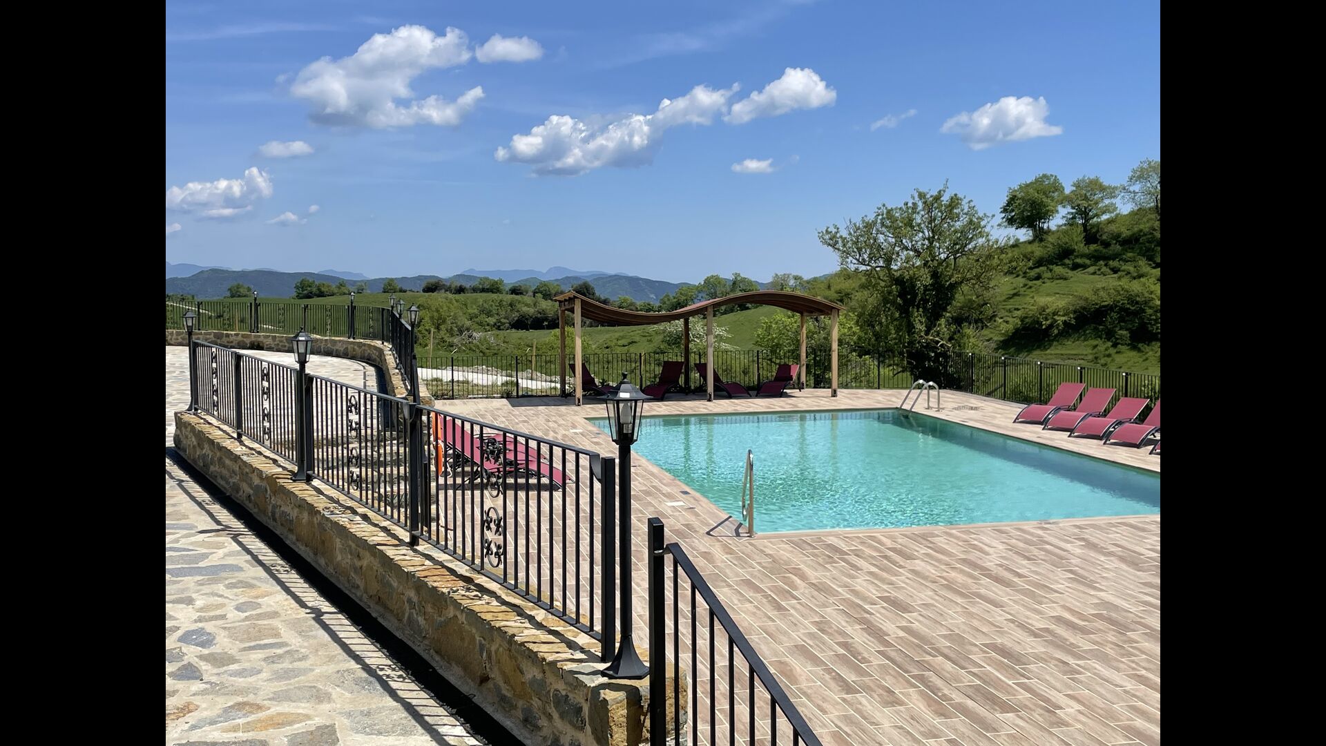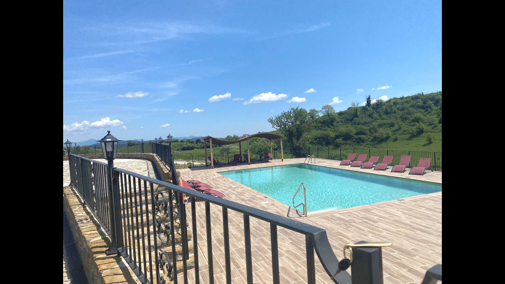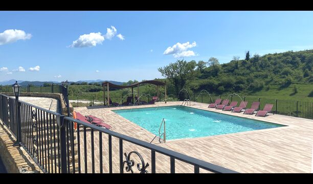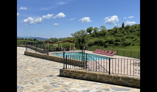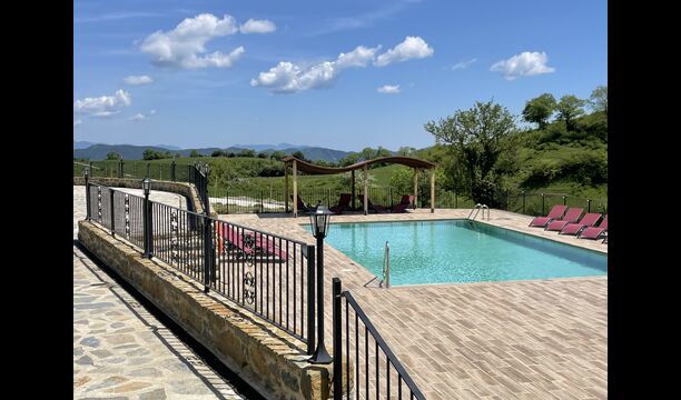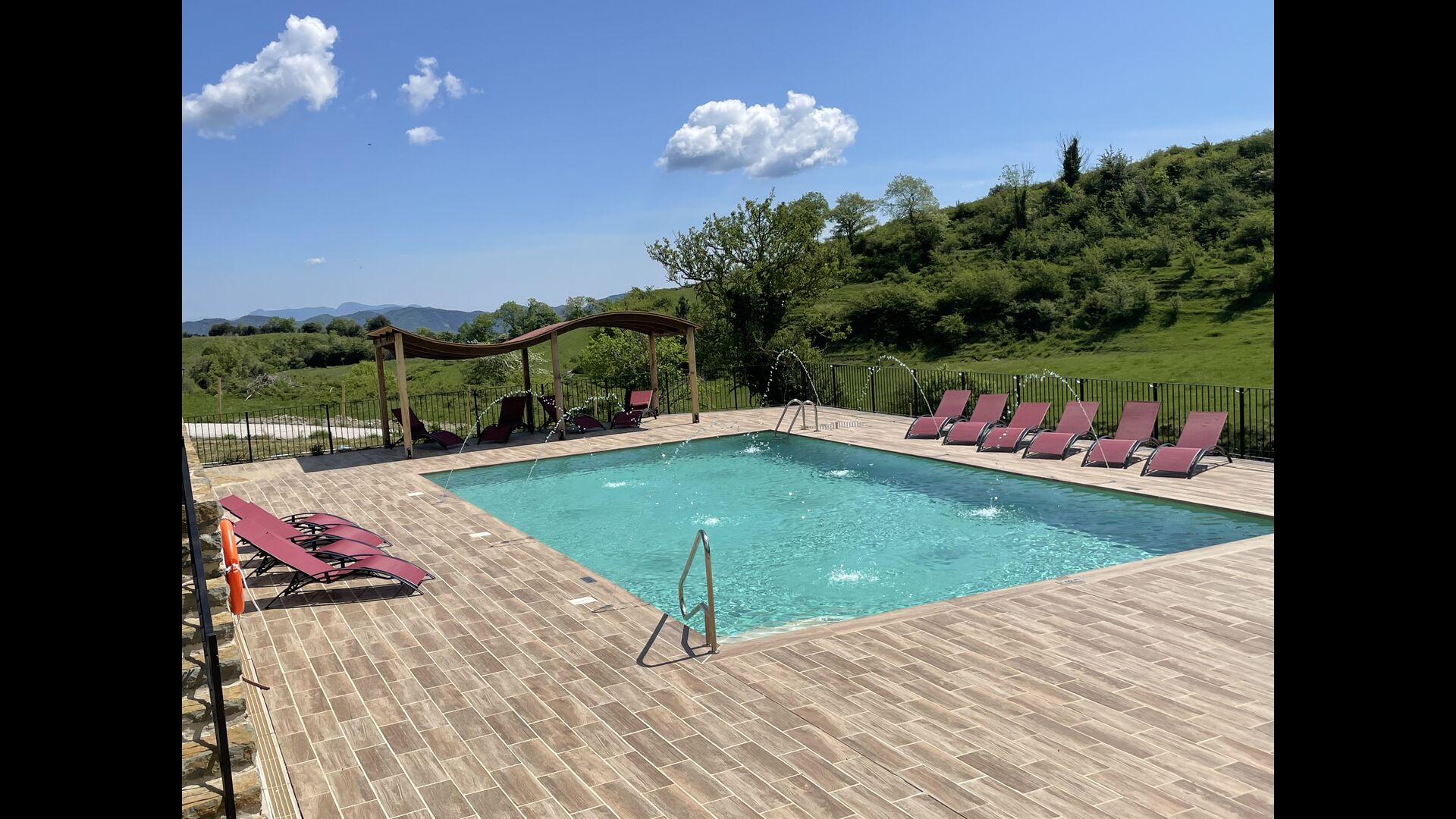 Le grand espace piscine est le point naturel de détente. Il y a beaucoup de transats, et s'il fait trop chaud, vous pouvez simplement vous baigner dans la grande piscine de 12 x 7 mètres, ou vous pouvez profiter de l'ombre sous la pergola au bout de la piscine.