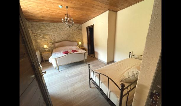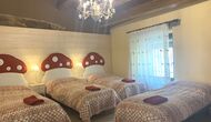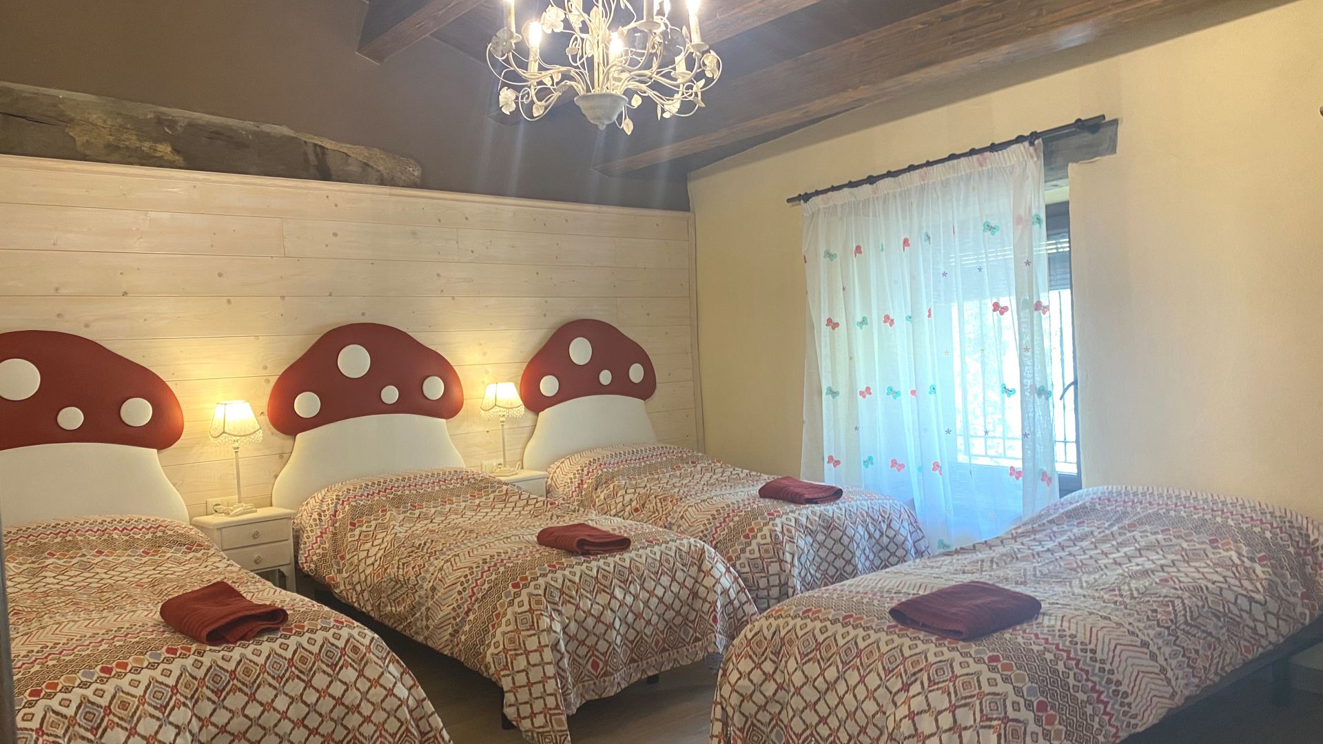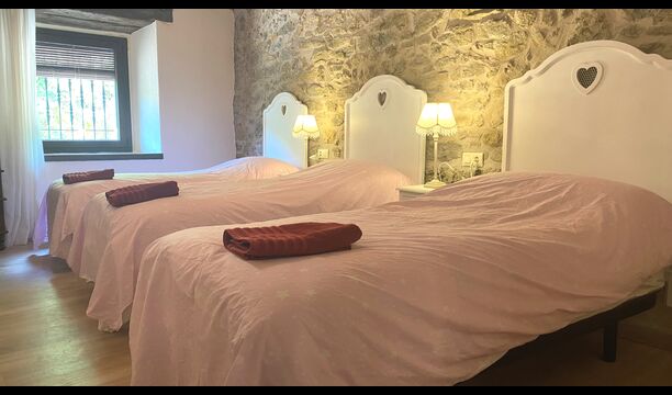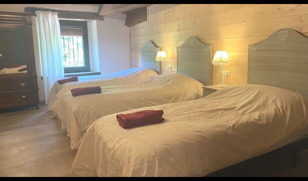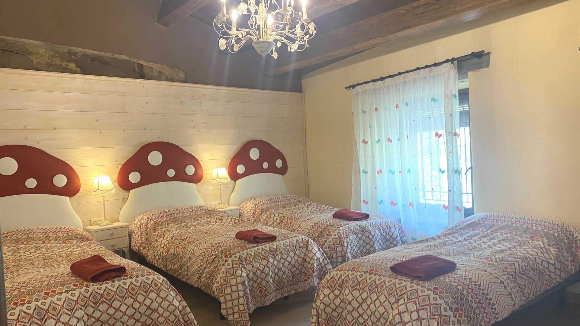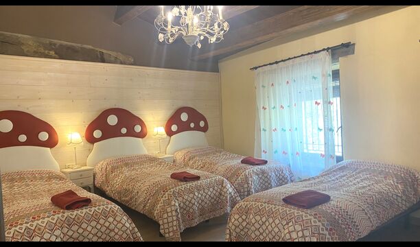 En plus des cinq chambres au premier étage, il y a sept autres chambres au deuxième étage. Comme au premier étage, il y a un grand espace commun avec canapé pour 15+ personnes et une télévision. Pour les plus jeunes, l'une des chambres a été décorée dans un esprit “conte de fées” et avec une salle de bain assortie. Cette chambre dispose de quatre lits. De plus, vous trouverez 1 triple avec 3 lits simples, 2 triples avec lit double et lit simple et 3 chambres doubles avec lits doubles.