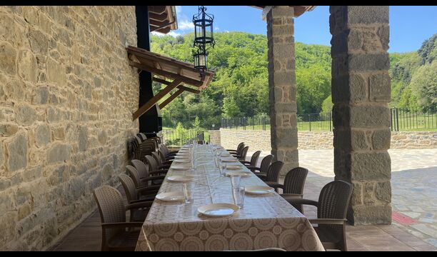 Contre supplément, vous pouvez louer la salle pour les fêtes, qui est également équipée d'une cuisine de restauration complète et d'une salle de congélation. Can de Batiña est idéal pour les célébrations, car Eva peut également proposer un hébergement supplémentaire dans son autre maison de vacances Cal Frexadeñas et dans ses appartements à Coromina. Pour les mariages, l'entrée qui ressemble un peu à une chapelle est idéale pour cela aussi.