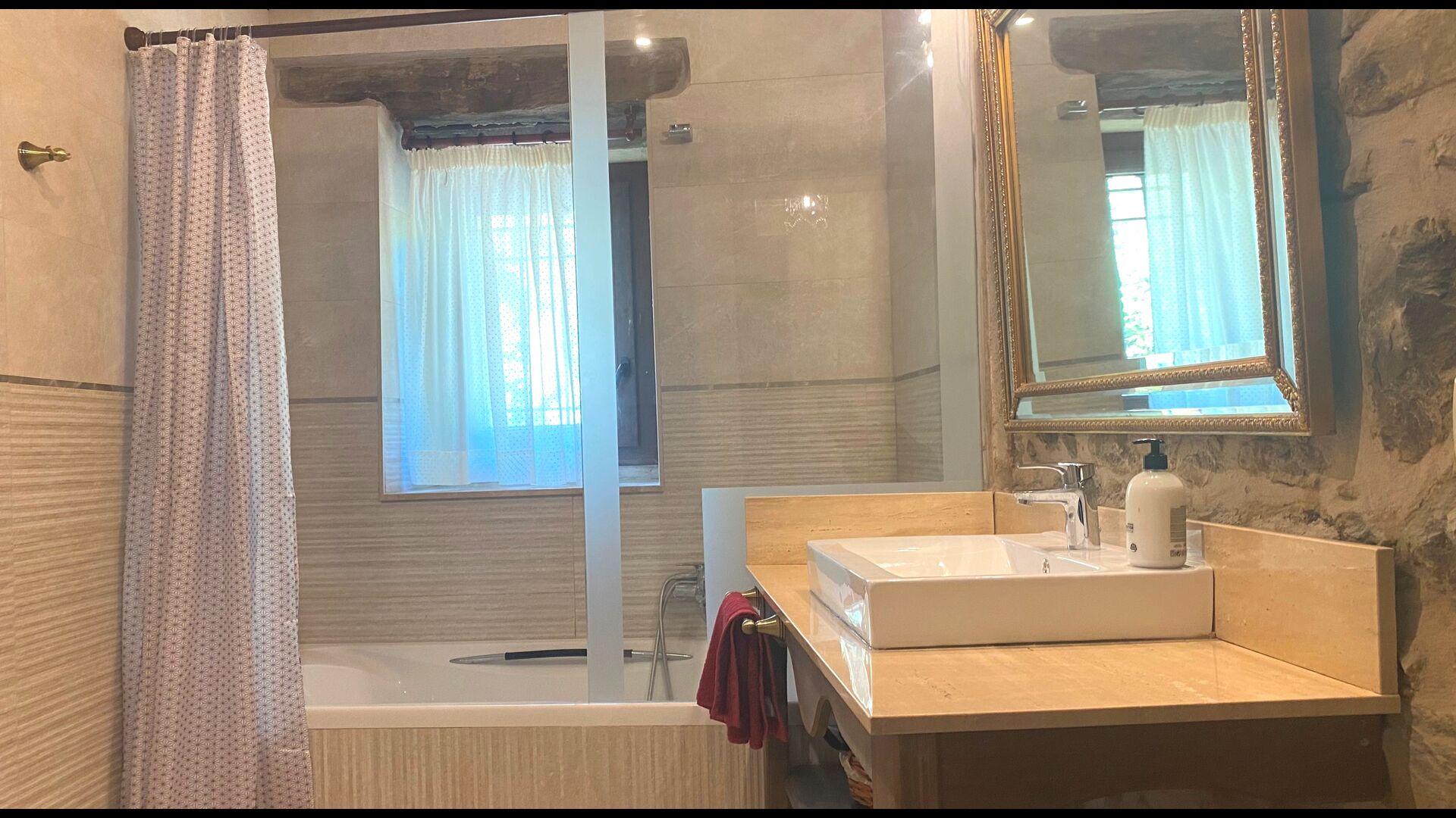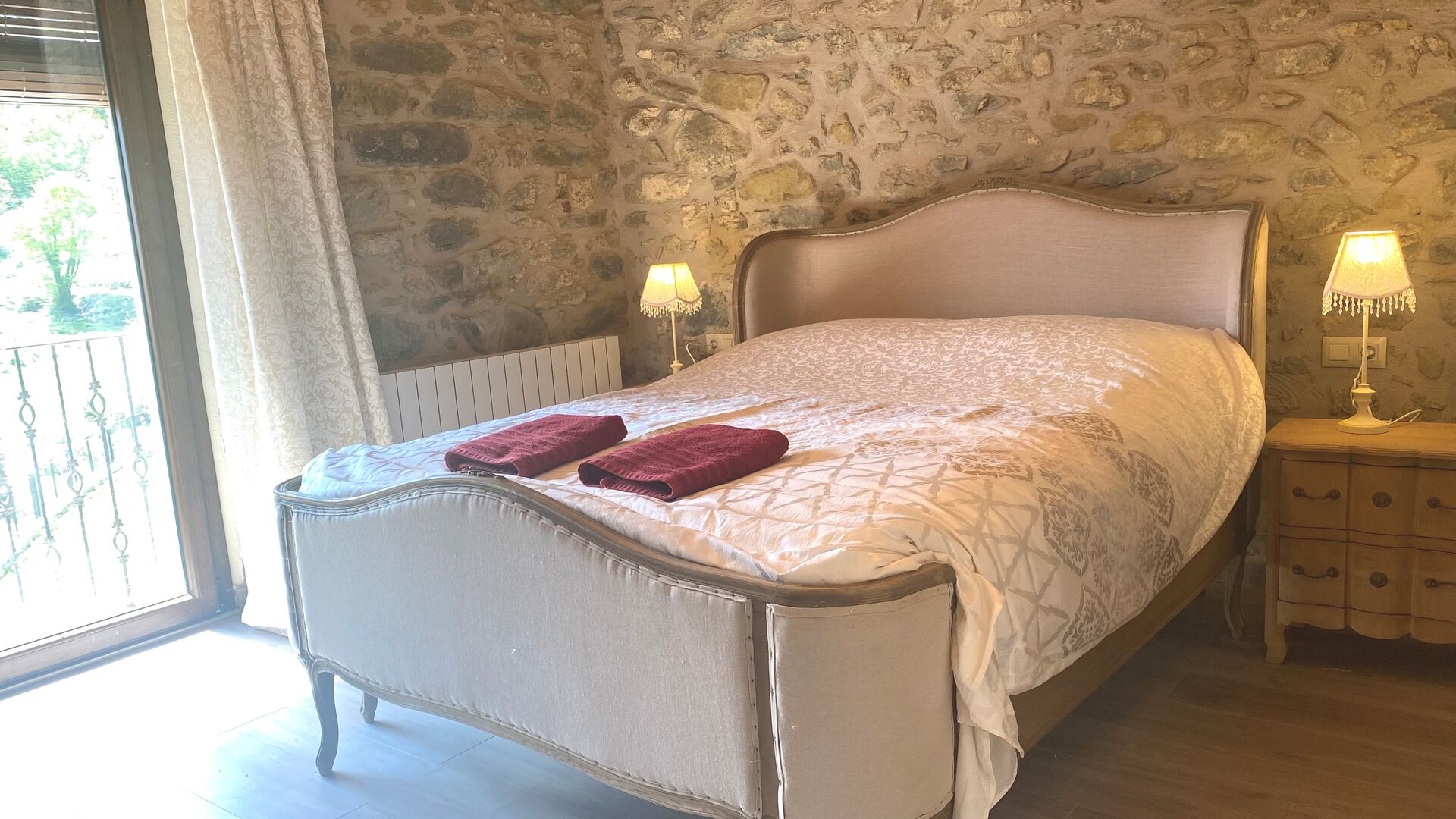 Gâtez vos sens et profitez de la vue imprenable sur les montagnes jusqu'à fin mai même quelques sommets encore enneigés, accompagnés du sifflement silencieux du petit ruisseau passant en contrebas la maison, les oiseaux et les abeilles, et au loin les cloches douillettes des vaches d'Eva plus haut sur la colline. Tout cela, tandis que le chaud soleil catalan et la brise de montagne rendent la vie pleine de confort.