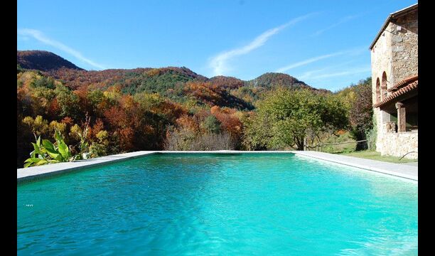 Outside, the beautiful swimming pool tempts you to have a dip, especially in the warm Catalan summer. Afterwards, relaxation in a sun lounger with a book or simply enjoying the scenery is a perfect way to gain new energy.