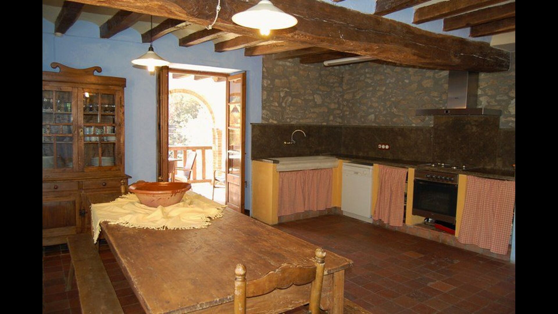From the entrance door you enter the very spacious and cosy country kitchen, which is preserved in original style and with the long wooden table and the rustic cabinet only adding to this impression. For the comfort modern conveniences such as stove, dishwasher, fridge with freezer, coffeemaker etc. has been added.