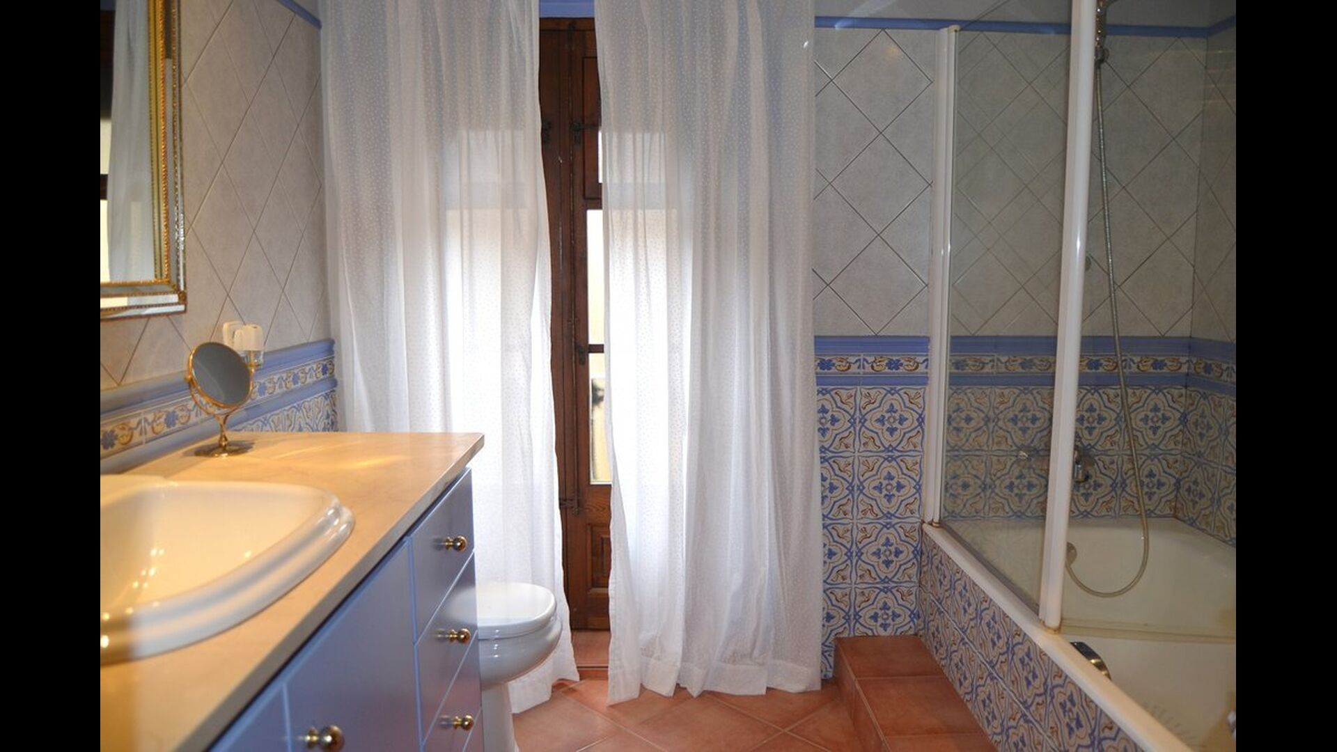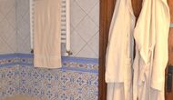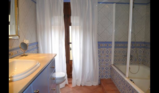 On the next floor in this beautifully decorated house with an authentic atmosphere, you find the three double bedrooms, two of them with French balconies. Two of the rooms have double beds, and one is equipped with two big single beds. Additionally, there is space for 1-2 beds if necessary. On this floor, you also find the second bathroom of the house.