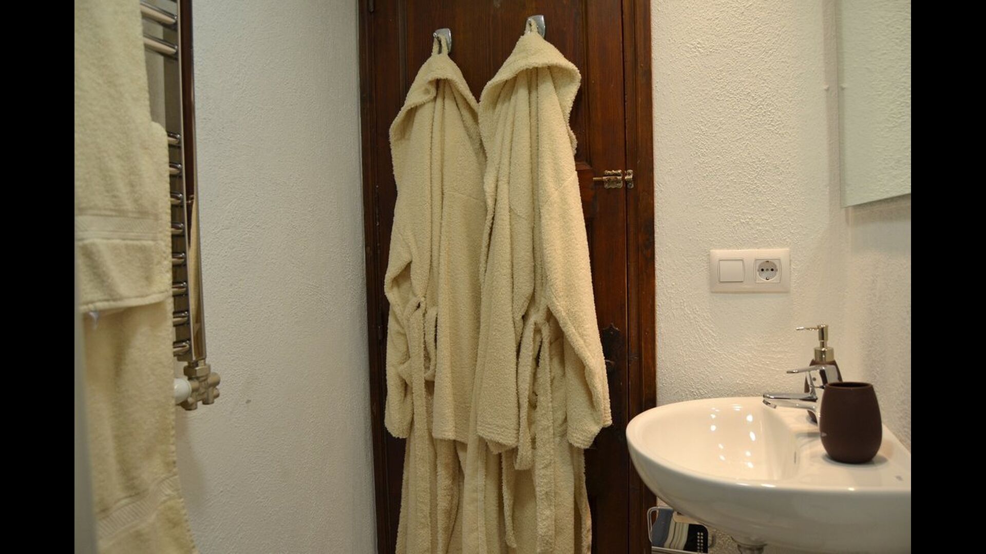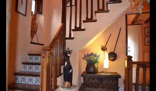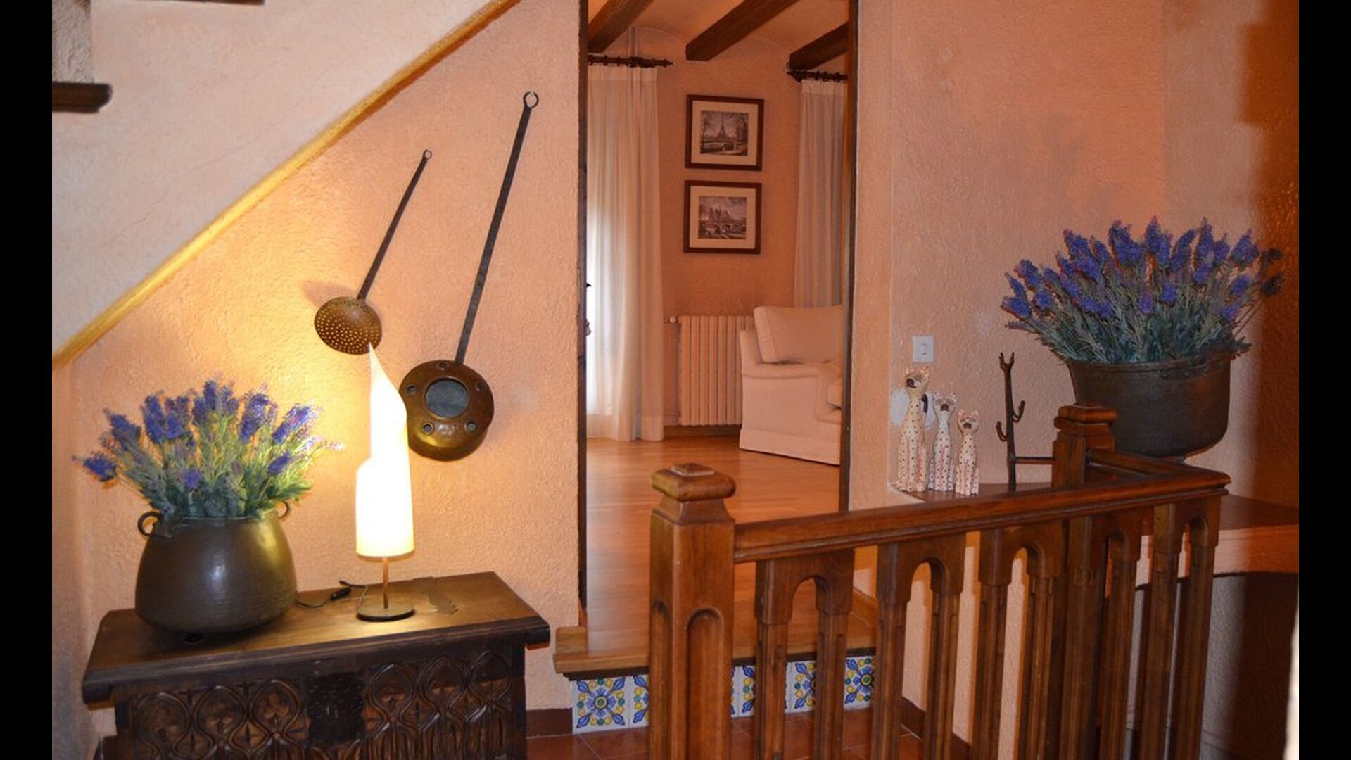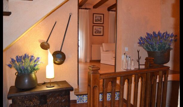 The top floor is the pearl of the house. Inside, there is a spacious living room with sofas and TV, decorated with historical pieces from the area and from the double doors, you have access to the very big roof terrace, where you have the most stunning view over this beautiful part of the Costa Brava area, with the small medieval villages on each hill top inland, and the coastal area with beach resorts and cliffs. Watching the sunset over the landscape while having meat on the barbecue, or just a glass of red wine or a cup of coffee, is a true stress-killer.