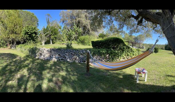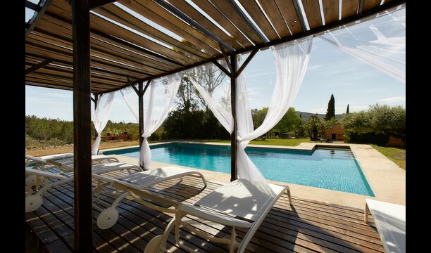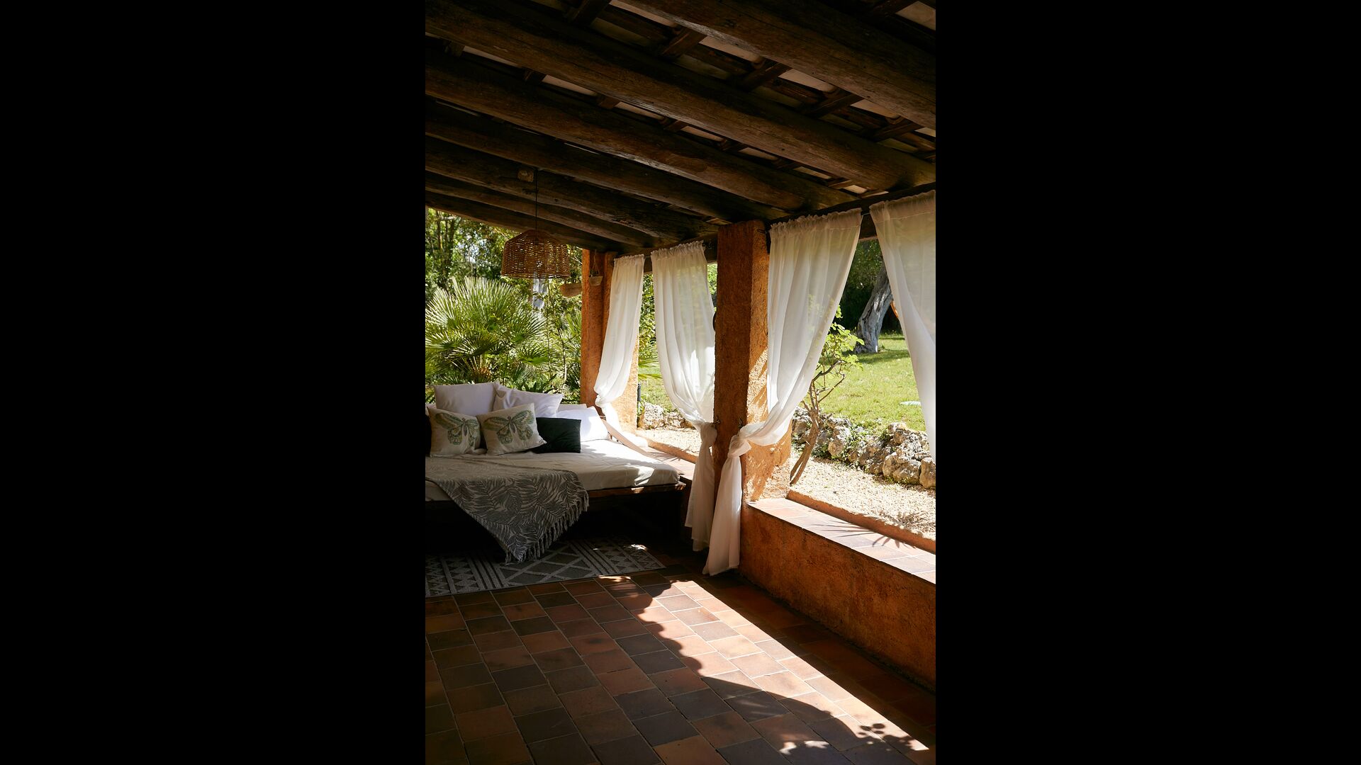 Les installations extérieures sont également splendides. Can Miña propose un patio romantique, une piscine avec transats, des espaces détente, un espace barbecue avec salle à manger extérieure couverte et même une jolie cabane dans les arbres pour les enfants.