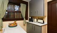 Dans la cour classique se trouve une petite maison d'hôtes confortable (parfaite pour les adolescents ou les grands-parents), qui dispose d'un lit double king size et d'une salle de bain privée avec douche et WC. Plus bas dans le jardin se trouve uneautre maison d'hôtes, qui a été décorée comme un charmant petit appartement séparé. L'appartement dispose de deux chambres (1 king size et 1 chambre avec 2 lits simples), d'une salle de bain commune, d'une petite cuisine et d'un petit patio. Les deux maisons d'hôtes séparées sont parfaites pour les grands groupes, car une famille avec de jeunes enfants peut y trouver le silence le soir ou les plus âgés du groupe peuvent vouloir avoir un peu d'espace pour eux-mêmes.