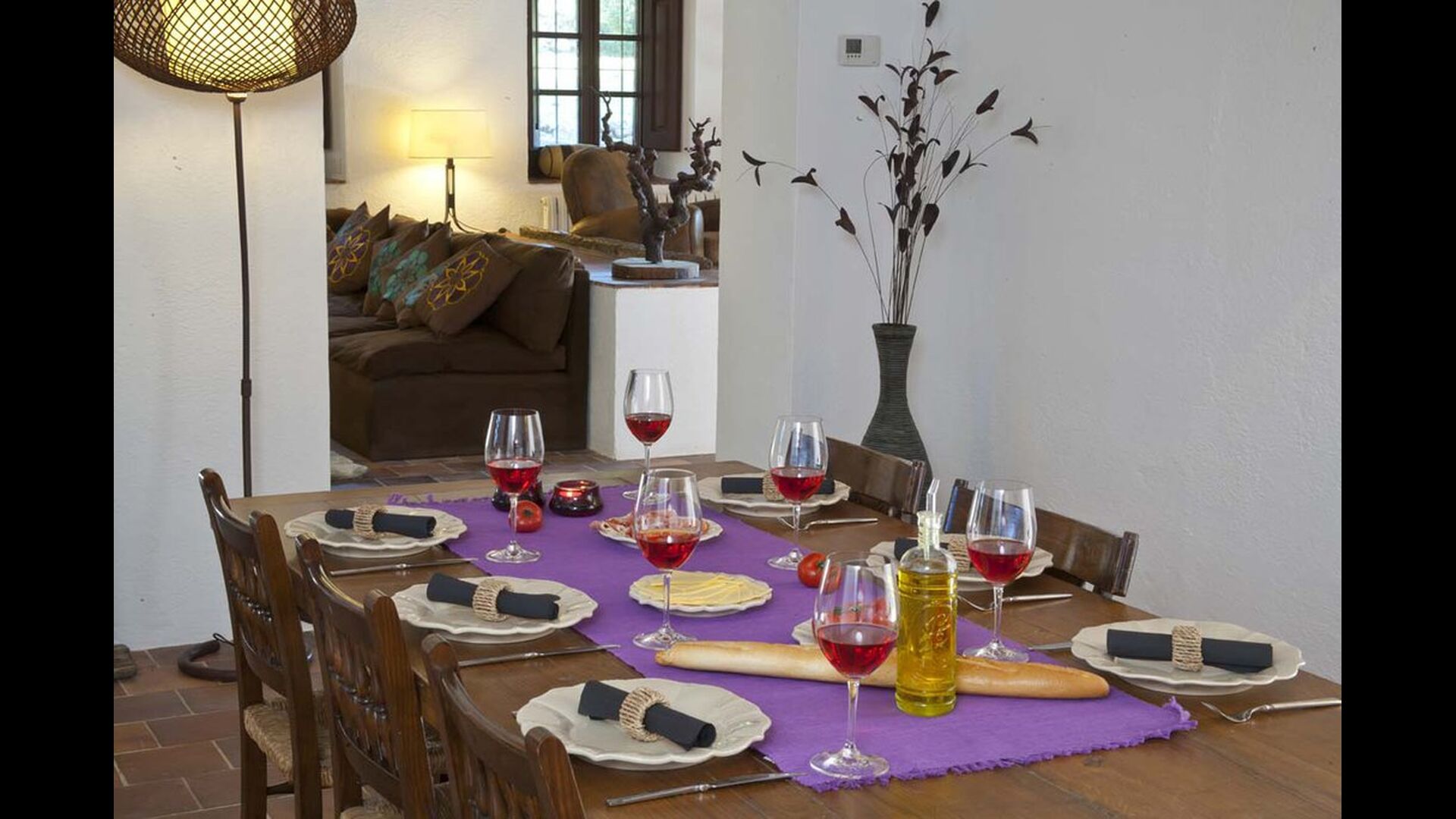 La maison offre également de jolis espaces communs tels qu'un fantastique salon avec cheminée, une belle salle à manger et une cuisine moderne et entièrement équipée avec débarras. Il y a TV, écran plat, DVD et Internet ainsi qu'une cave à vin exclusive avec des vins locaux.
