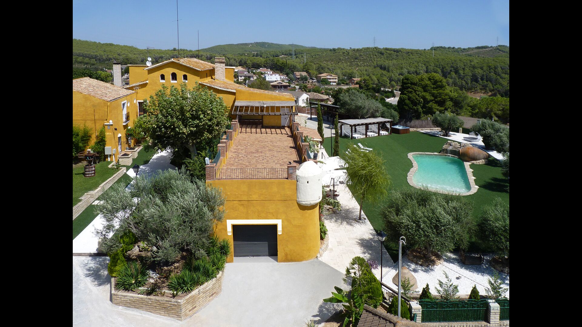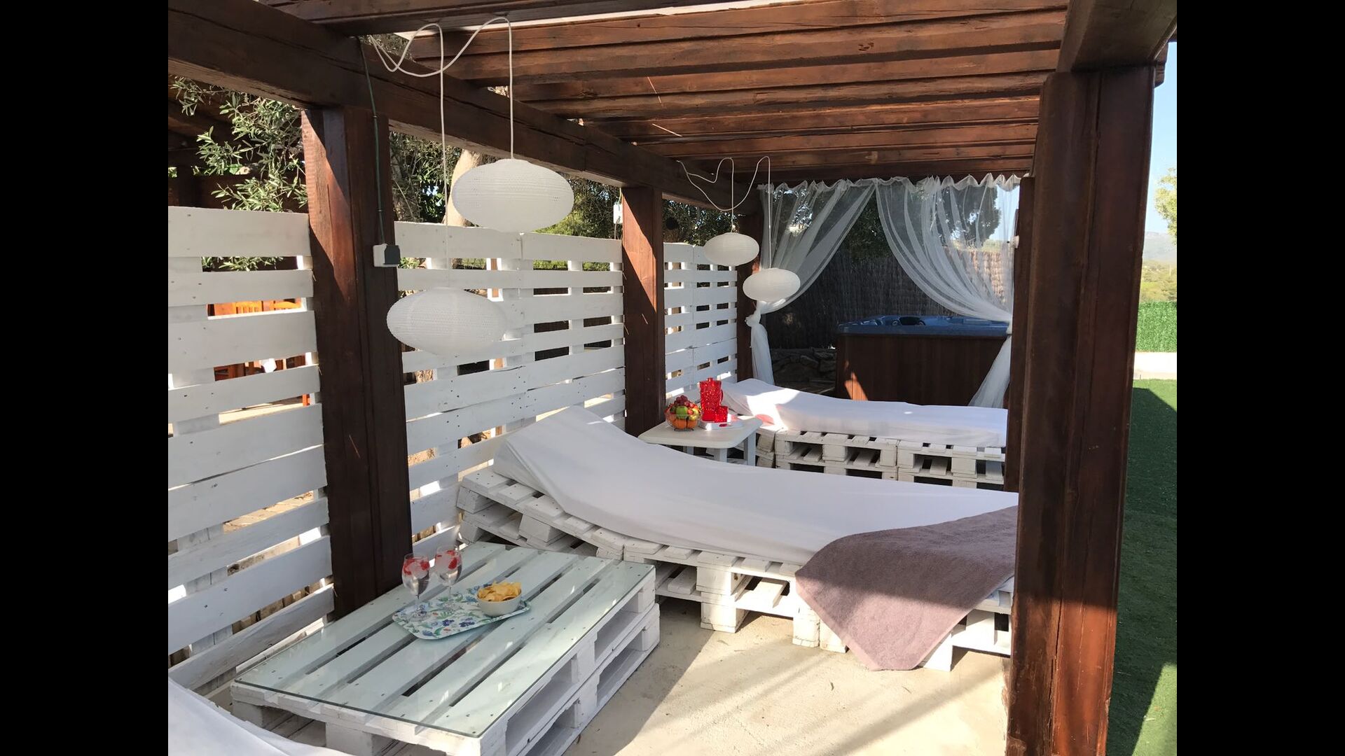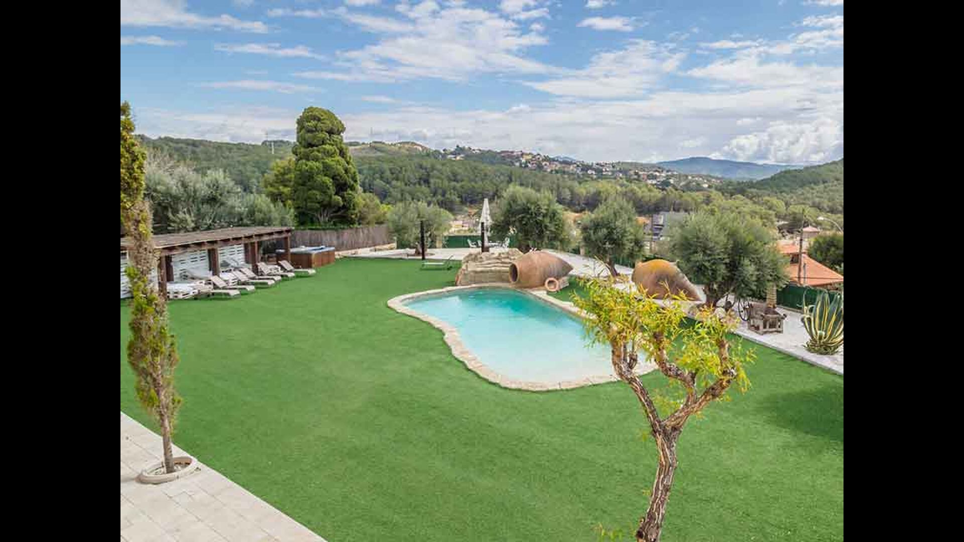 The holiday home’s outdoor area is made up of more than 4000 square meters and includes a rooftop terrace of 120 square meters. The rooftop terrace has a stunning panoramic view of the area, with the Garraf mountain range peeking in the far background. It is the perfect place to enjoy the warm evenings with a glass of local wine. You will also find the cozy outdoor chill-out area, located just by the pool. The area has shaded sunbeds and tables, where you can lie and relax in the warm weather. There is also a wooden porch with a jacuzzi with room enough for up to 4 adults! We imagine that you will spend plenty of your time here.