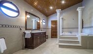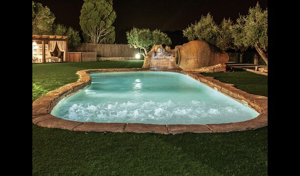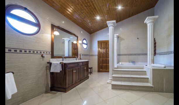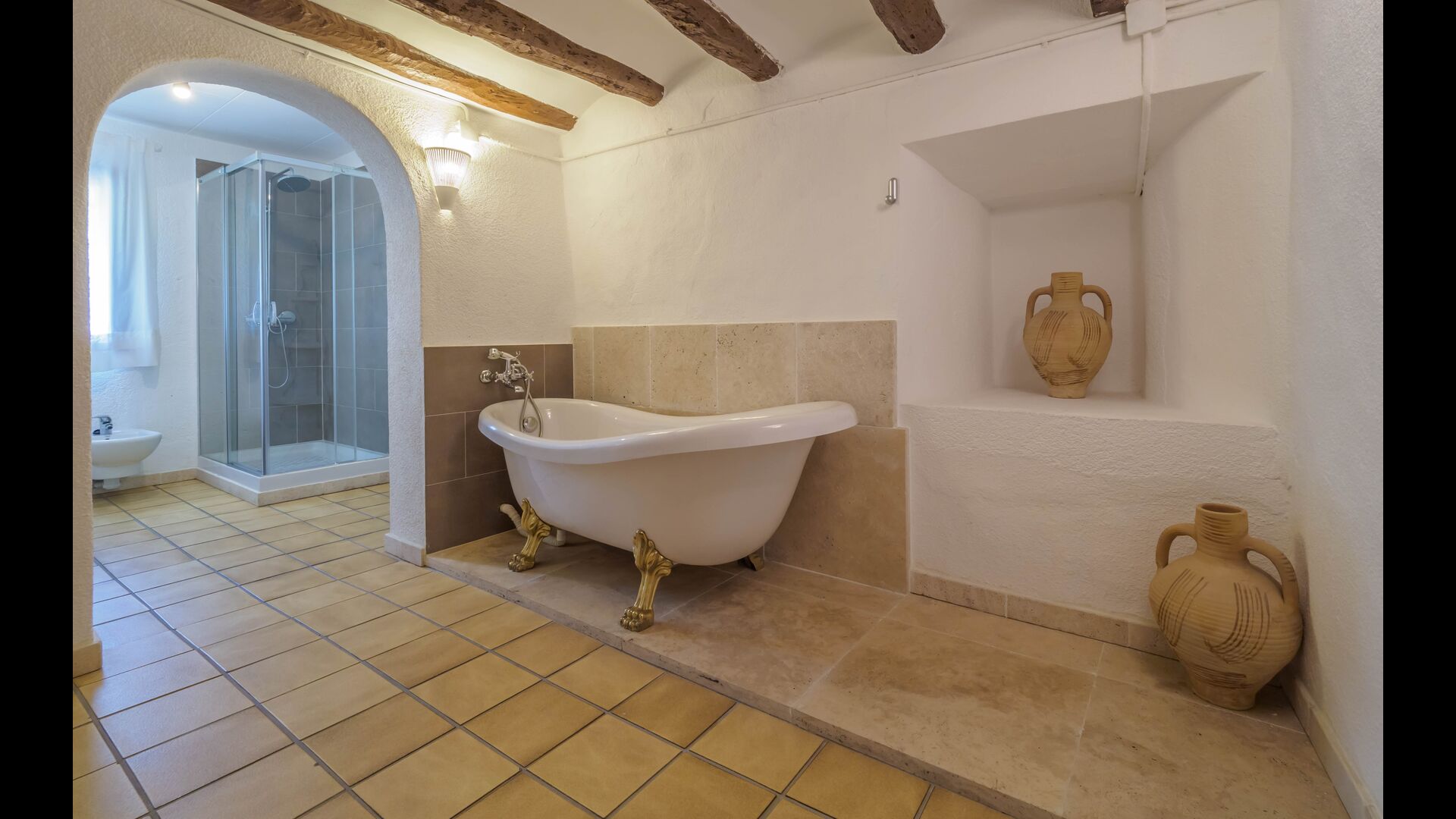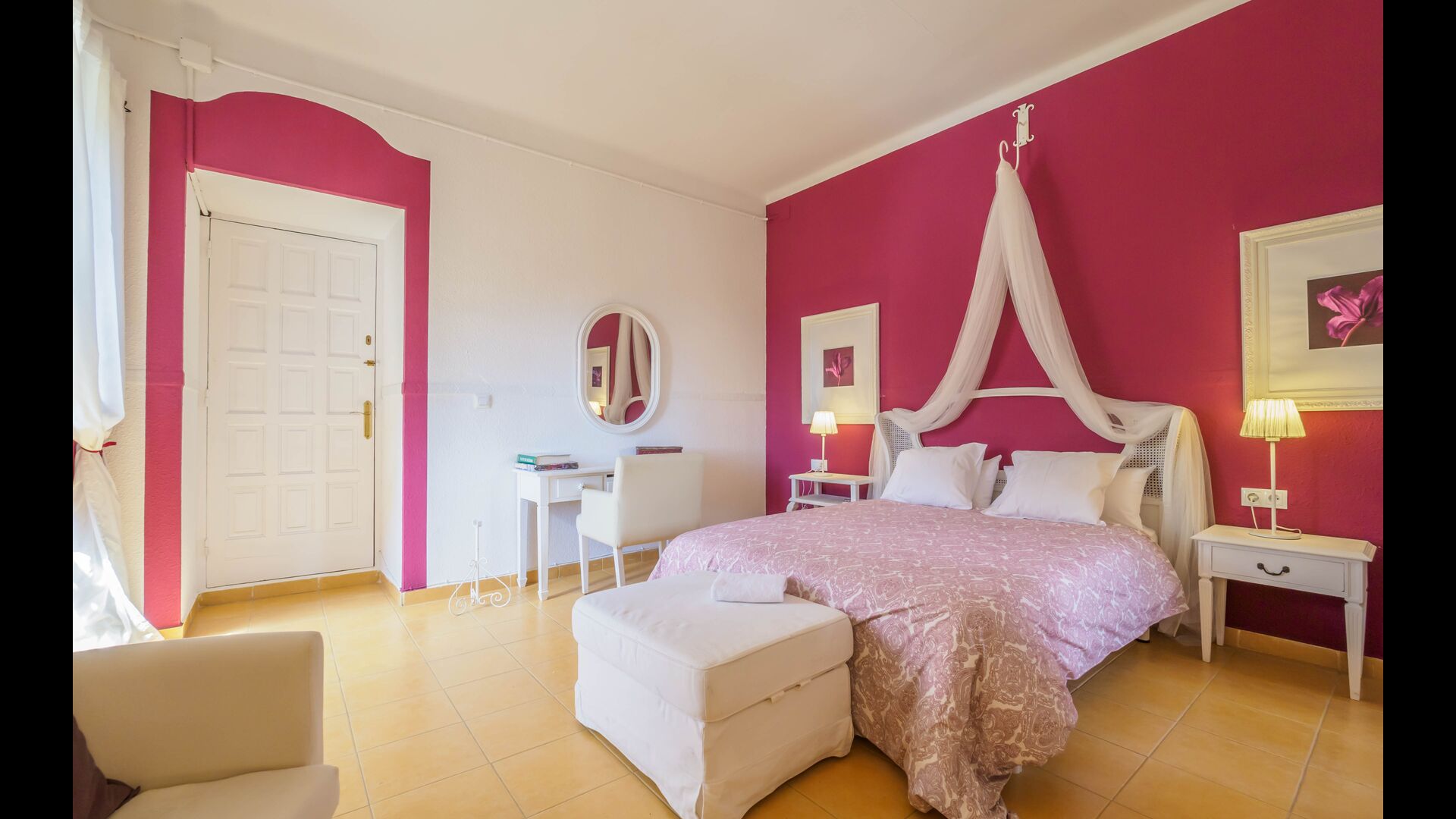 The holiday home’s outdoor area is made up of more than 4000 square meters and includes a rooftop terrace of 120 square meters. The rooftop terrace has a stunning panoramic view of the area, with the Garraf mountain range peeking in the far background. It is the perfect place to enjoy the warm evenings with a glass of local wine. You will also find the cozy outdoor chill-out area, located just by the pool. The area has shaded sunbeds and tables, where you can lie and relax in the warm weather. There is also a wooden porch with a jacuzzi with room enough for up to 4 adults! We imagine that you will spend plenty of your time here.