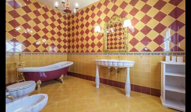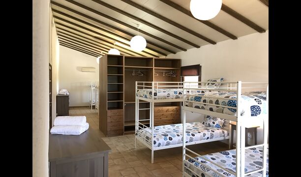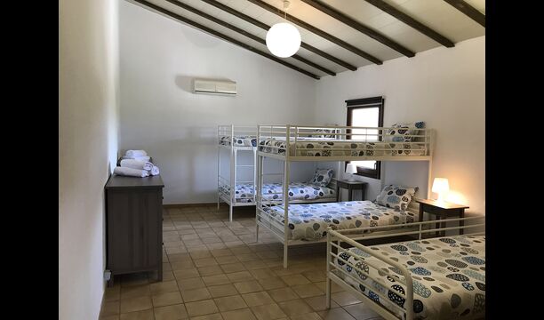 The house has a charming living room, with lounges and a television and even an original fireplace. The living room is connected to the dining room which has a large table with space for 26 people. There is a charming and fully equipped kitchen, which even has an extra fridge and freezer for large groups so that all supplies can be stored. The house has a total of 9 bedrooms, with 8 of the bedrooms being double rooms, and last but not least the childrens room located in the attic. This bedroom has 4 bunk beds and 2 single beds, and is the perfect room for children. Right outside this room you will find the amazing game room, which is the perfect place for hanging out and having some fun with the family. The room is set up for darts, pool, cards, and board games.
