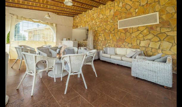The large BBQ area is another great feature of the outdoor area, where you can enjoy outdoor cooking. Right by the BBQ area there is a covered outdoor porch with a long table and seats all 26 guests - the perfect place to enjoy your home cooked meals with the entire group. There is also a second porch, which can be fully covered for shade. Here you will find plenty of sofas and lounge chairs, where you can really get comfortable and relax.
