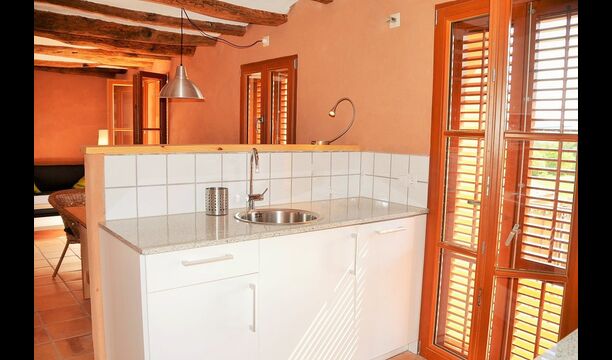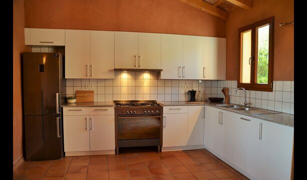 The natural centre for your holiday is the big common room for cooking and eating next to the swimming pool, with a big dining table, kitchen and direct access to the swimming pool and the outdoor terrace.