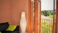 This apartment is on the first floor and is called "Salvie". There are two double rooms designed in a Nordic style: one of them has a double bed and the other one has two single beds, making the apartment perfect for a family on vacation. The house is on a hill, and this unit's terrace is located directly on the rock..