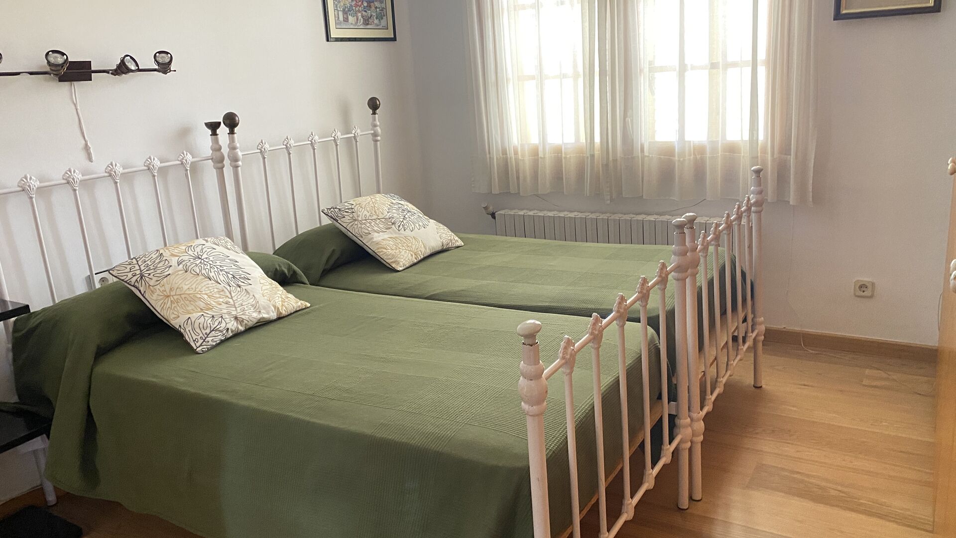 A l'étage au premier étage, il y a 5 chambres toutes avec leur propre terrasse ou balcon et 3 salles de bains. Trois des chambres sont des chambres doubles avec lits doubles, une chambre est une chambre double avec lits simples et la dernière chambre est une chambre triple avec lits simples.
