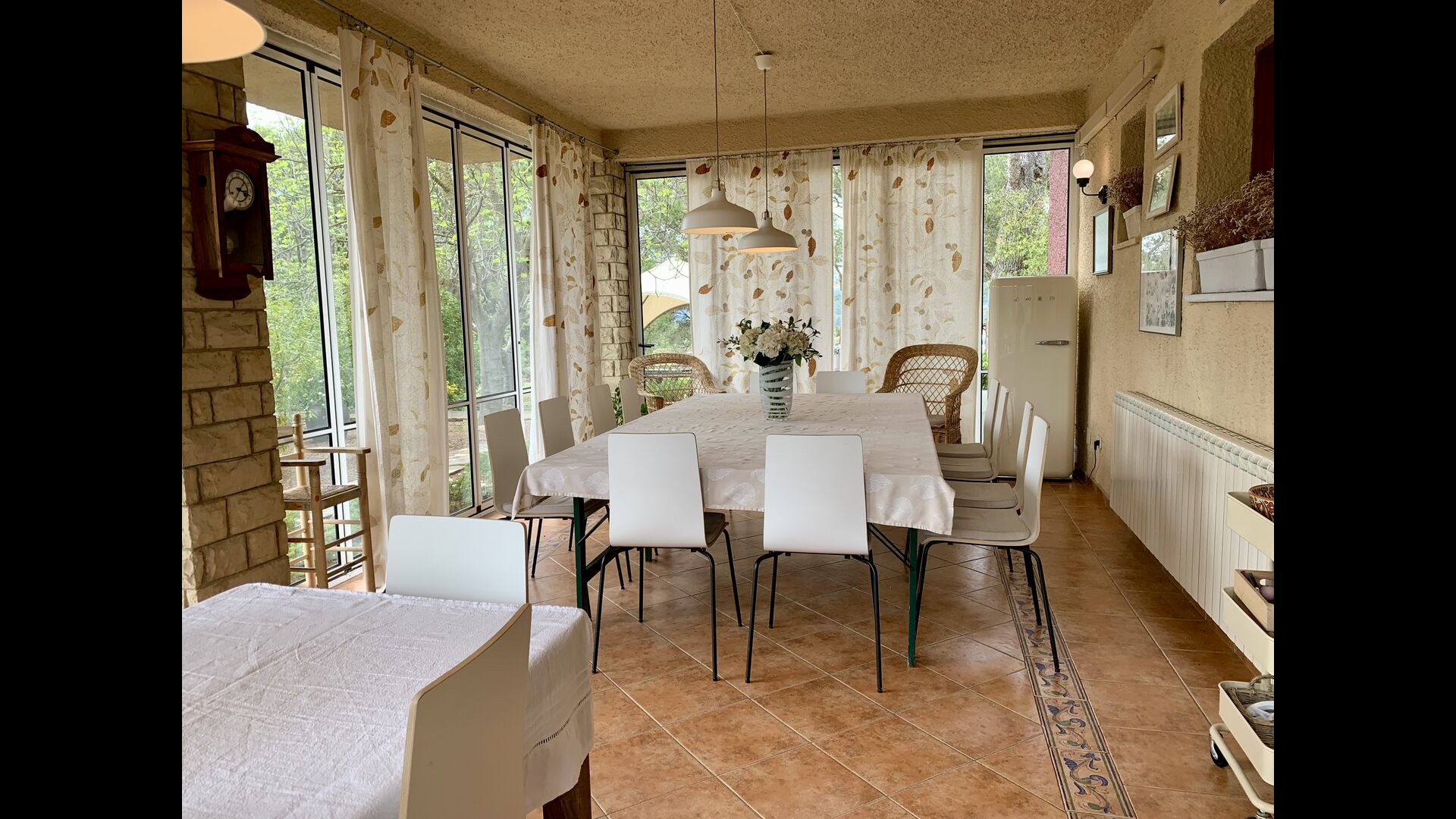 Au rez-de-chaussée, vous trouverez la cuisine bien équipée, deux salles à manger différentes, un salon avec TV et des toilettes. Il y a un accès direct à la terrasse avec barbecue et bien sûr à la grande piscine, idéale pour se rafraîchir pendant les chauds étés catalans.