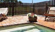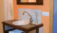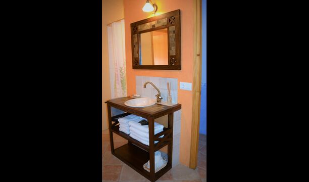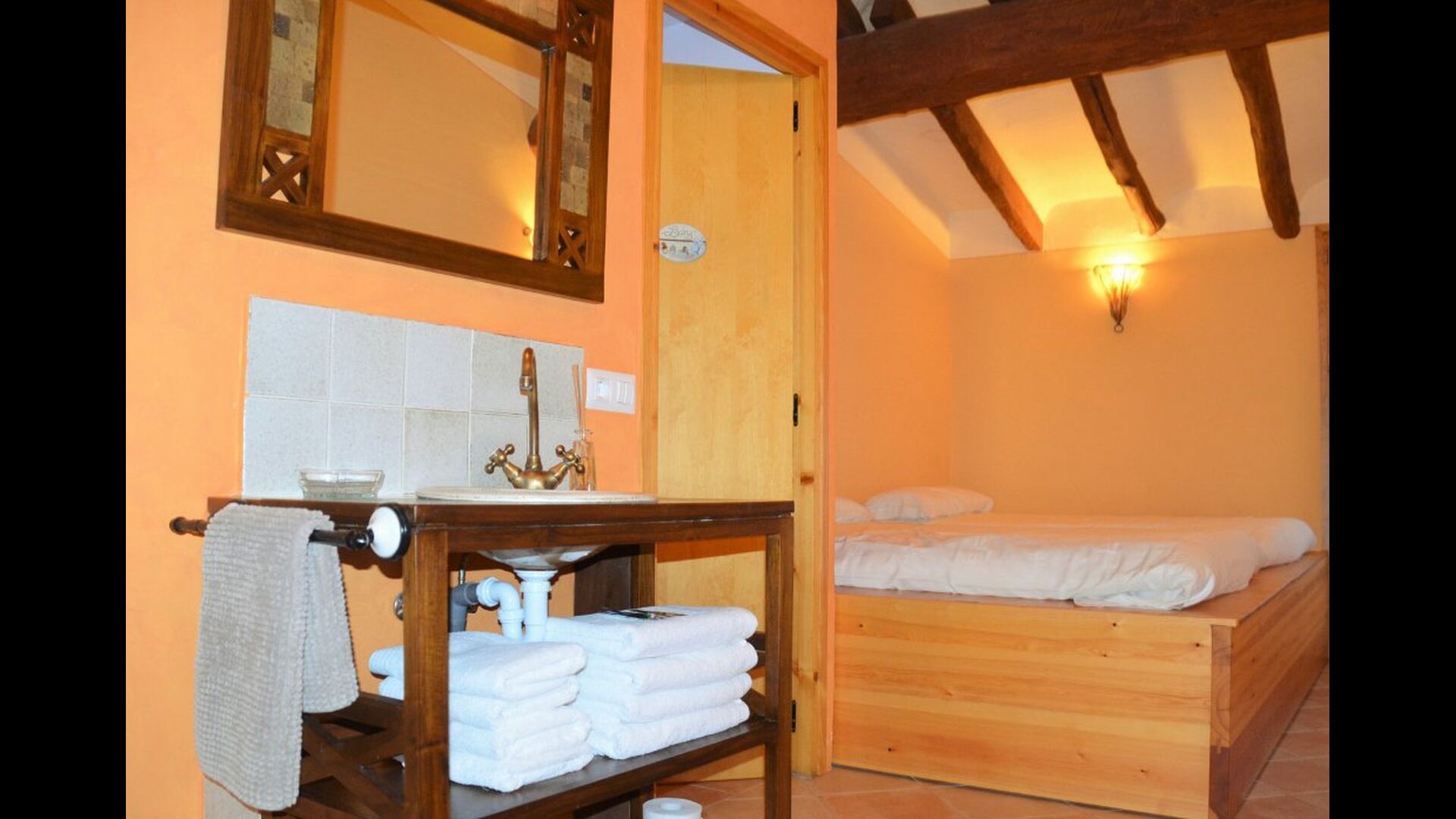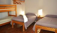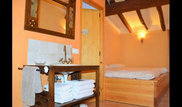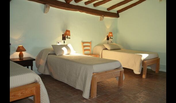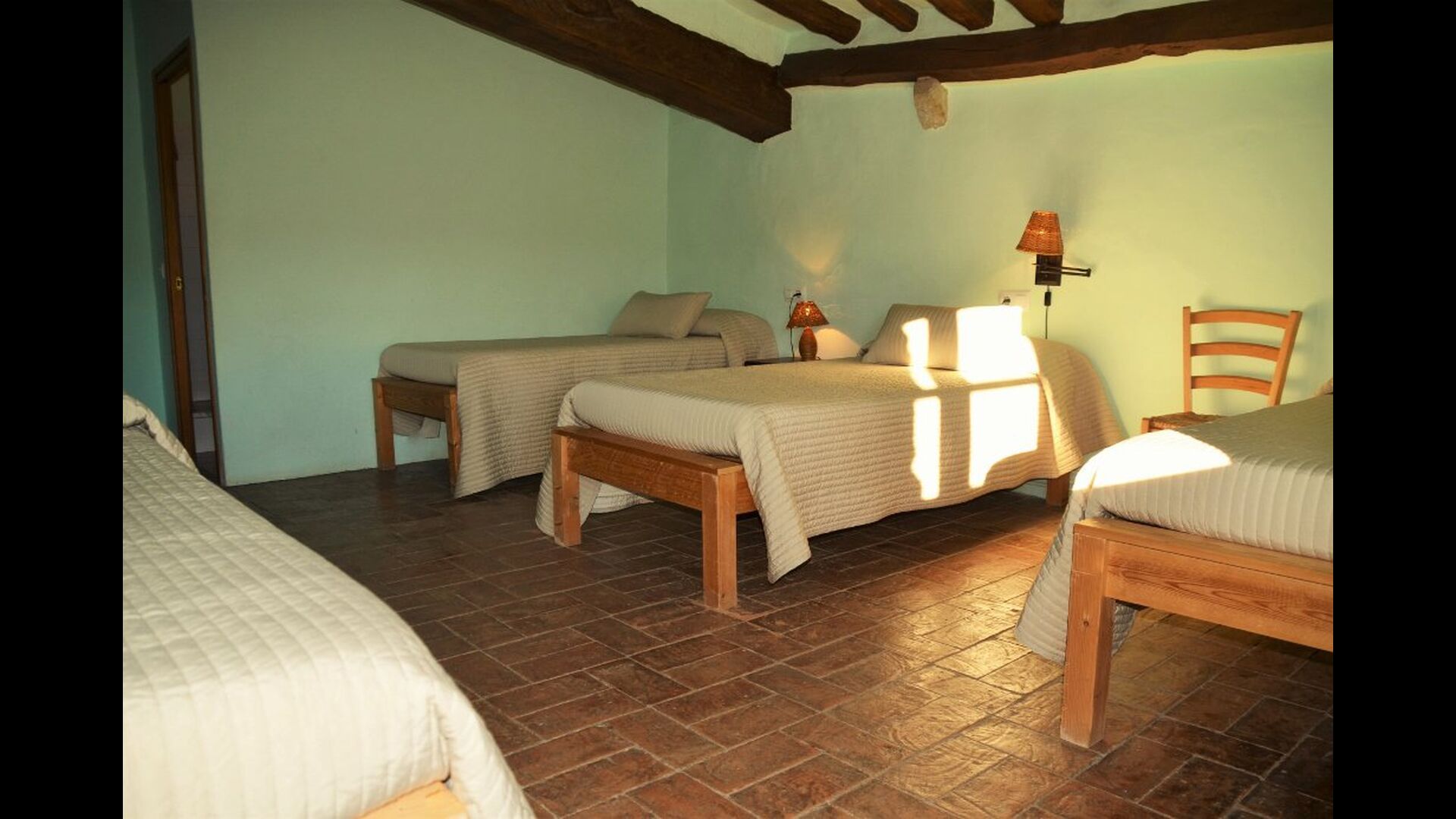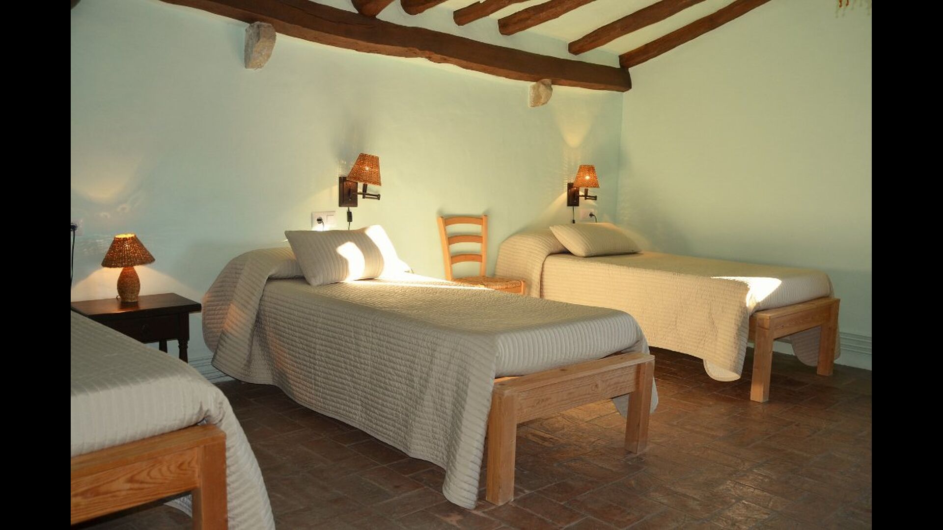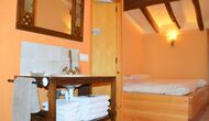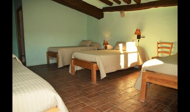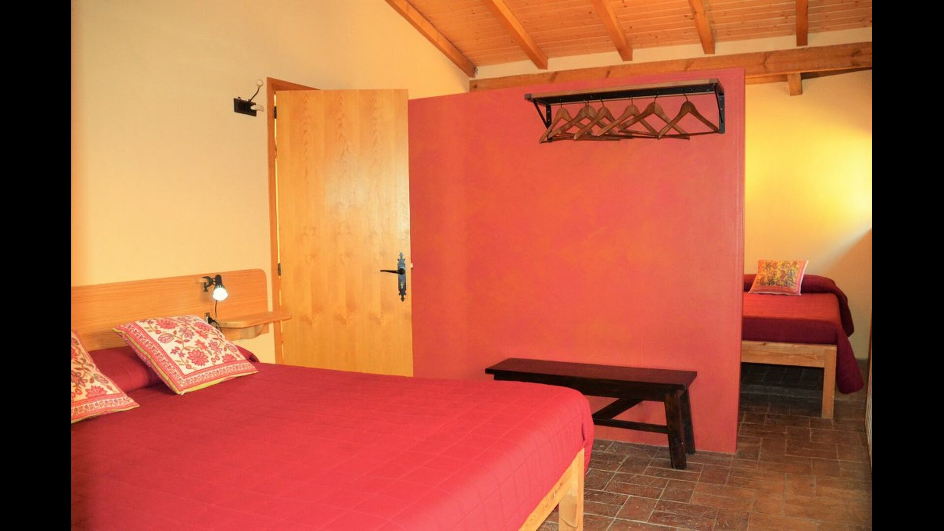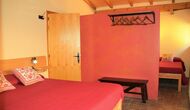 Au premier étage, vous trouvez les chambres. Tout d'abord, il y a une chambre avec deux lits simples (qui peuvent être rapprochés) et un lit superposé. Ensuite, il y a une chambre avec quatre lits simples, idéale pour les enfants d'un groupe de vacances, et enfin une chambre double (avec possibilité de lits supplémentaires) avec salle de bains privative et accès direct à une terrasse. Les deux autres chambres doubles sont connectées et situées dans une petite maison séparée dans le jardin. Voici, bien sûr, aussi une salle de bain avec douche.