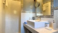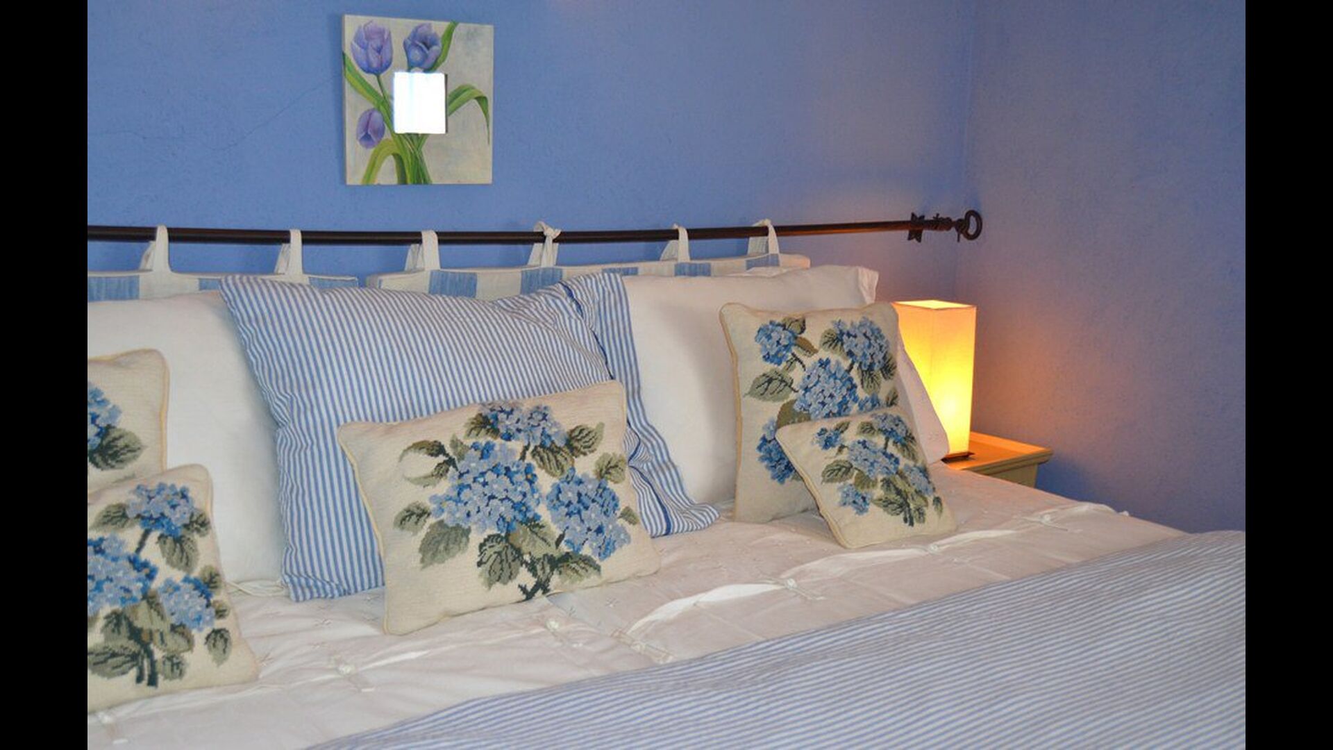 The villa is lovingly decorated and it has 5 bedrooms, which are all decorated with extraordinary materials and they have really gone the extra mile to make the rooms cozy. All 5 bedrooms have TV and as there are 5 bathrooms each room has their own. One of the bedrooms is a very nice suite with a smaller corresponding lounge area. Each room is decorated in a unique color, making each room very personal and each room has its very own charm.