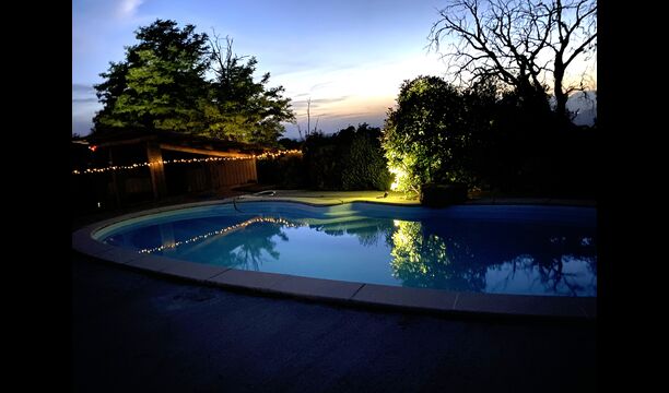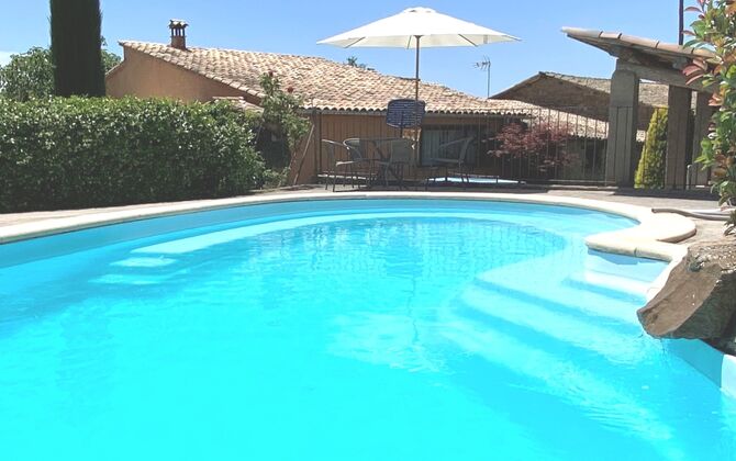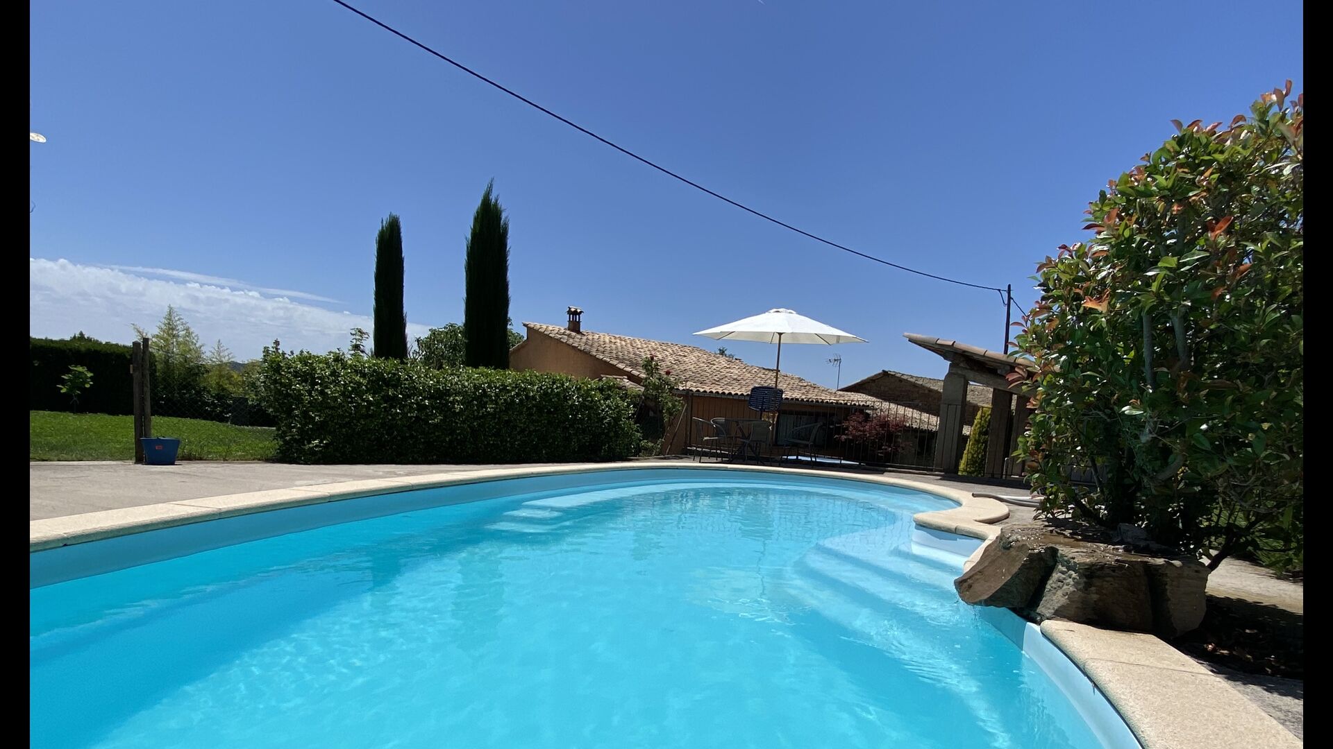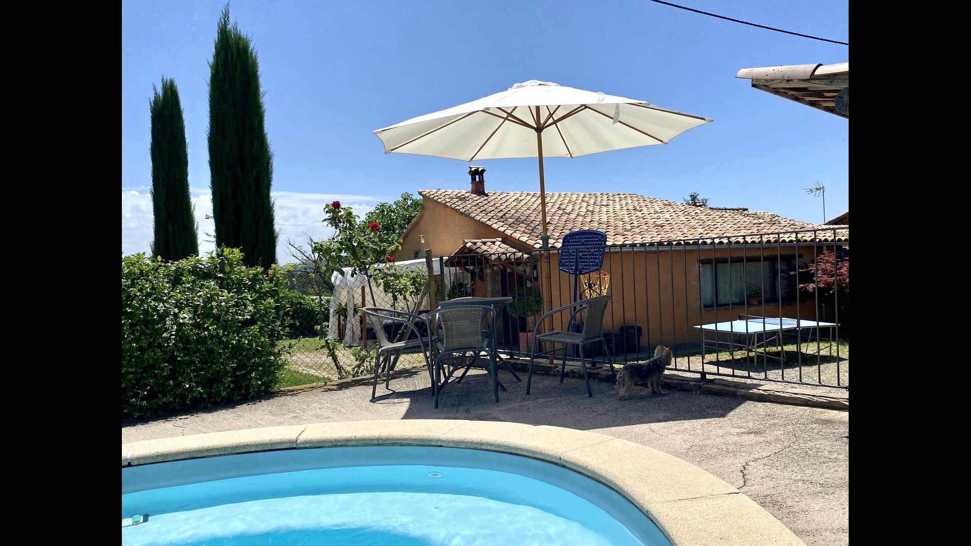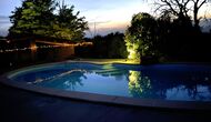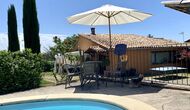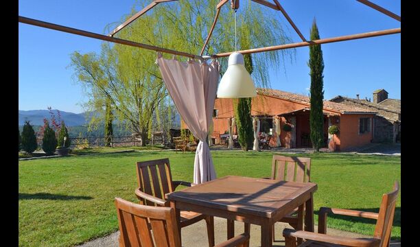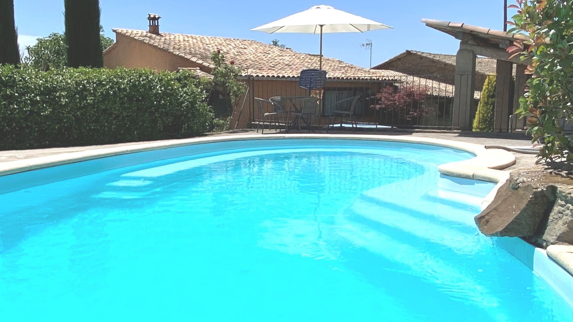 In the garden there is a fenced, private swimming pool (each of the two houses has its own pool) and at the end of the swimming pool is a covered terrace with BBQ and outdoor kitchen. There is also a small terrace in front of the house and on the lawn is set up a small pavilion, where you also can find shade on hot summer days.