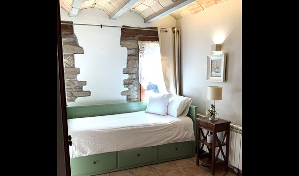 Can Salvatore was originally a gigantic main house (In Spanish a Casa Pairal), where it ,in old days, had a myriad of related houses out in the neighboring countryside. On Sunday up to 40 farm workers went to the main house, where they went to church and Sunday dinner was served. Today, there are arranged two holiday homes on the site and the three rear houses (not visible from the cottages) inhabited by the friendly catalan owners and their adult children. At a nearby piece of land, two cows, which is neither dairy or meat cattle, but bought for the holiday group's children, so they can enjoy themselves by visiting them.
