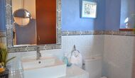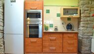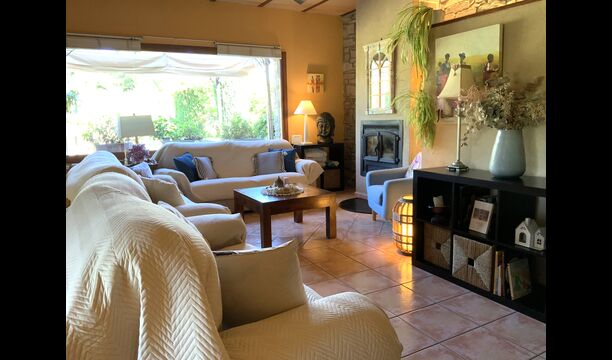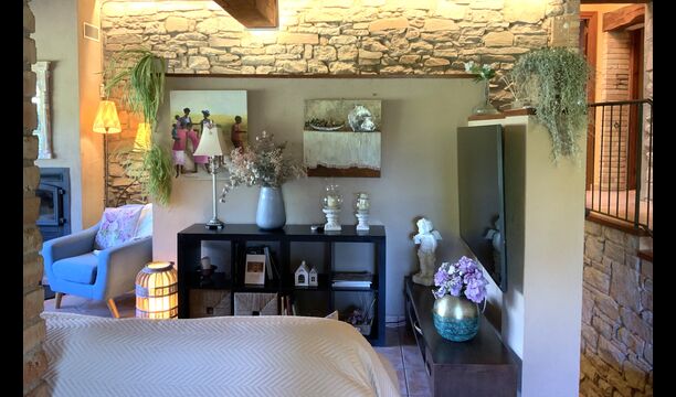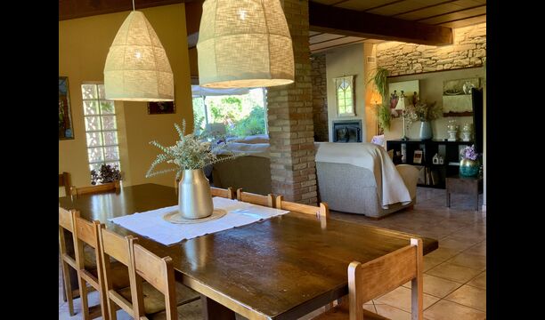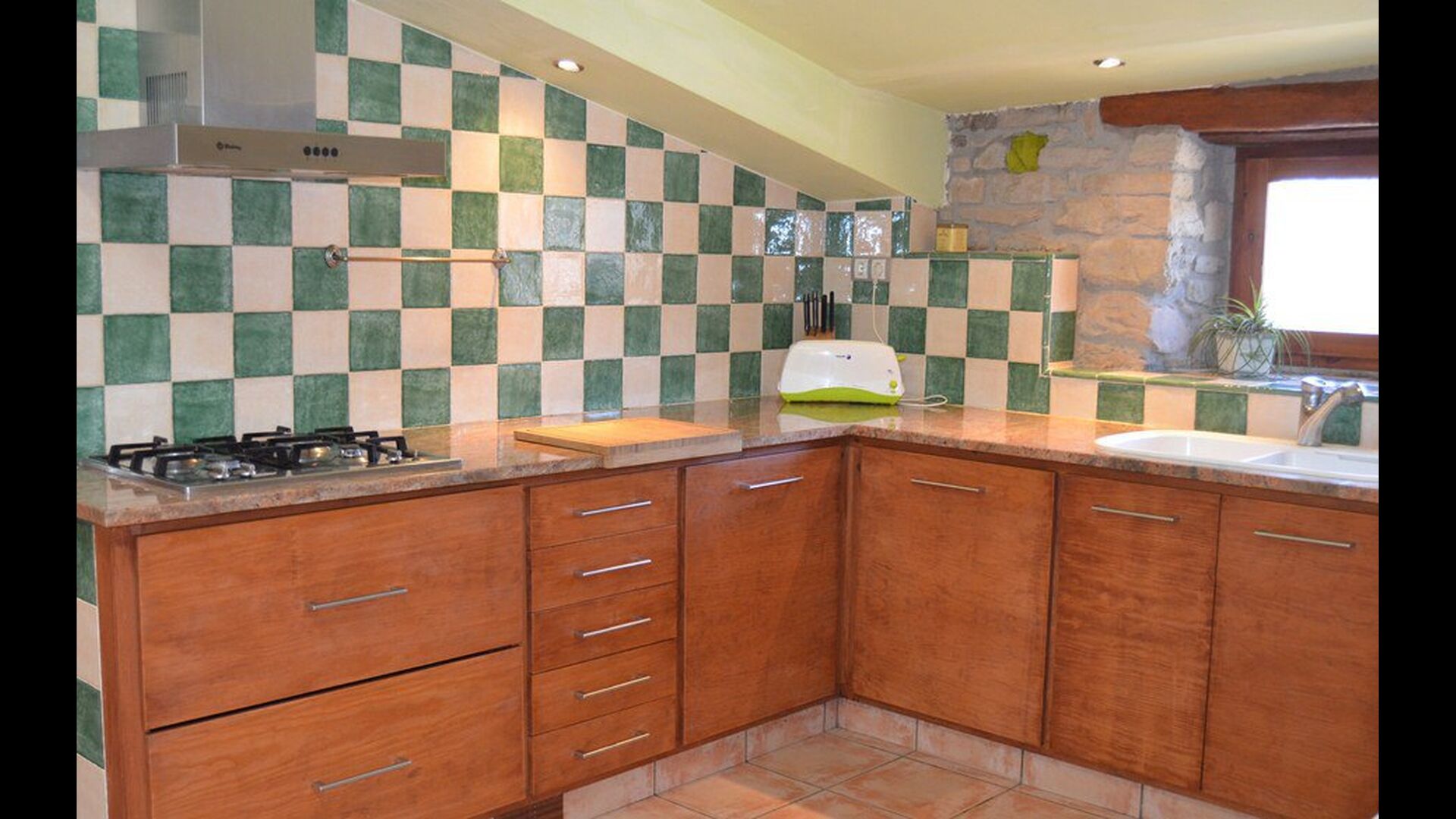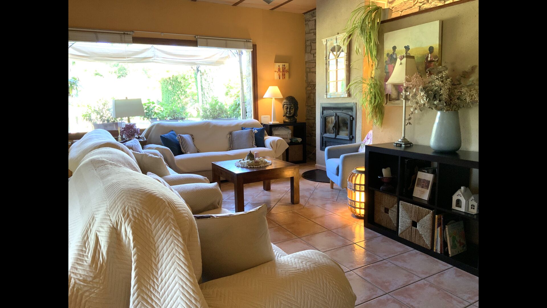 The beautiful living room with sofas and a fireplace is an extension of the house dining area that is decorated with the good traditional Spanish dining table. The kitchen is large and has plenty of space for the large holiday group. The kitchen has all modern amenities. These include refrigerator, freezer, good large oven, microwave, dishwasher, espresso and gas stove. The house has fast WI-FI, DVD and music system.