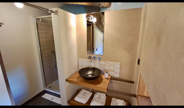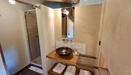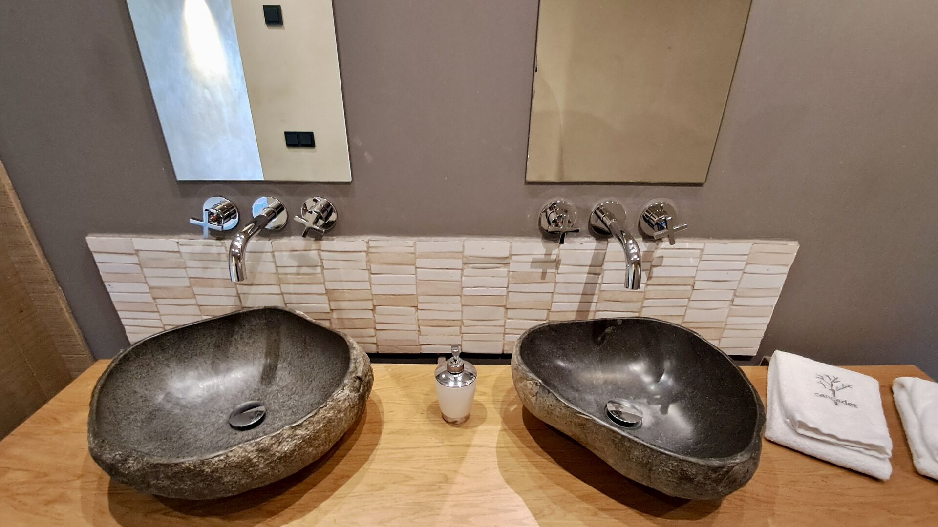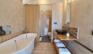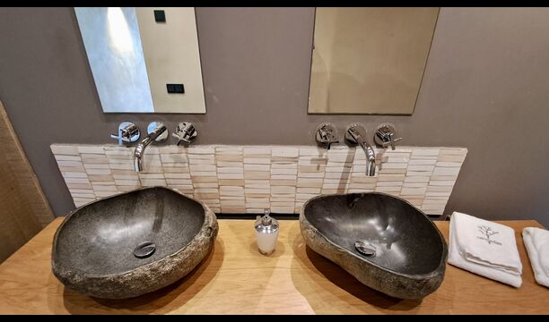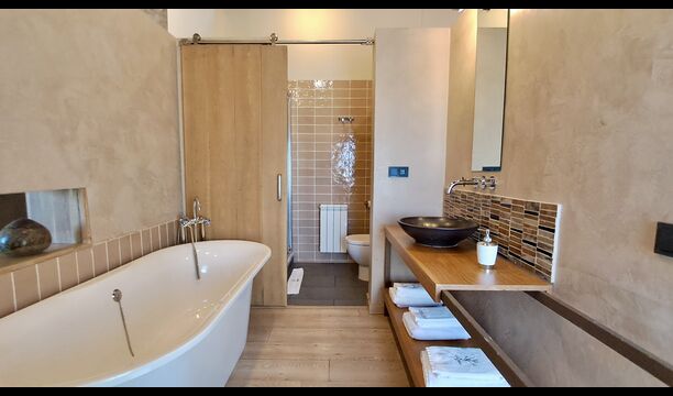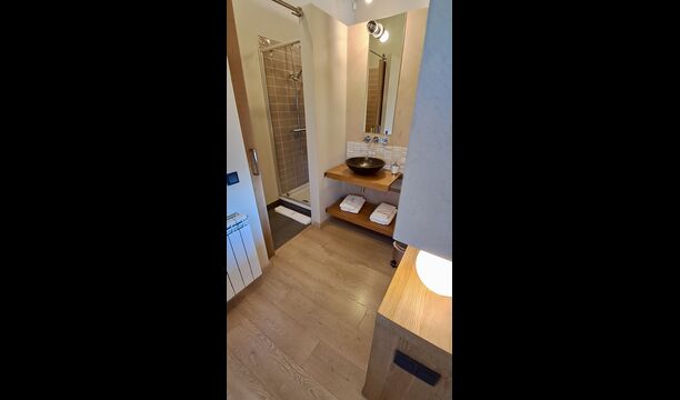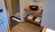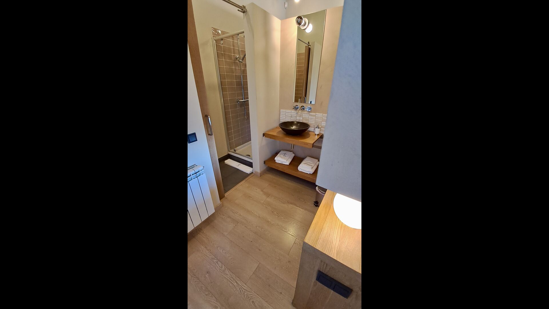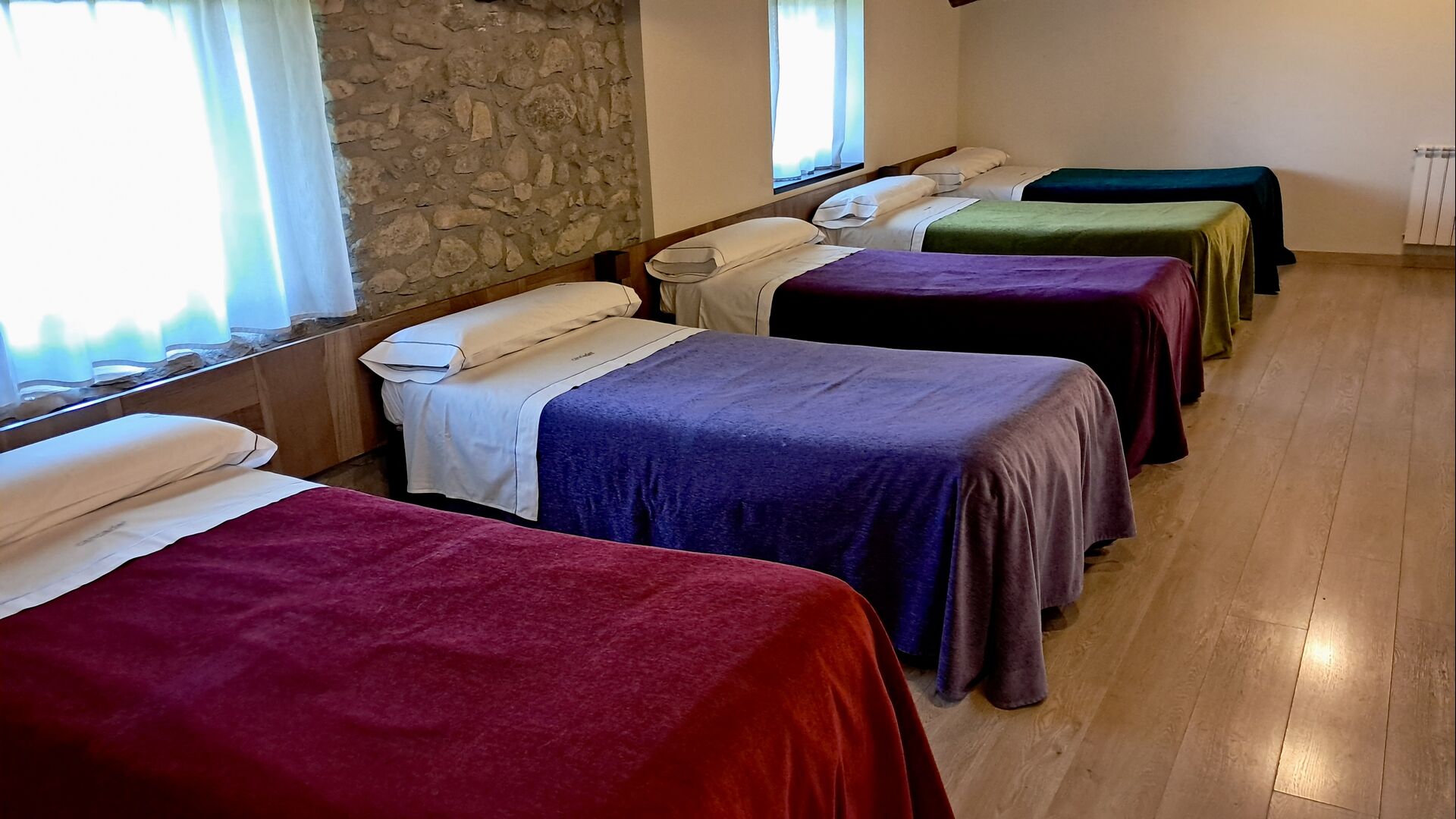 Au troisième et dernier étage se trouvent 4 autres chambres - comme toutes les autres, il y a une salle de bain pour chacune. En outre, vous trouverez un espace spa extrêmement délicieux avec un jacuzzi et des chaises longues. C'est l'endroit idéal pour se détendre. Sur les 9 chambres, il y a 4 chambres doubles (avec lits doubles), 3 chambres triples (avec lits simples) et 2 très grandes chambres avec 4 lits simples, ce qui est parfait pour les enfants ou les adolescents.